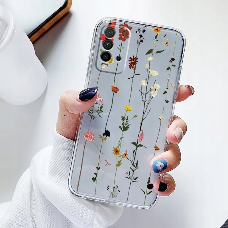ETUI DO XIAOMI REDMI 9T Przezroczyste KWIATY SILIKON CASE SLIM + SZKŁO