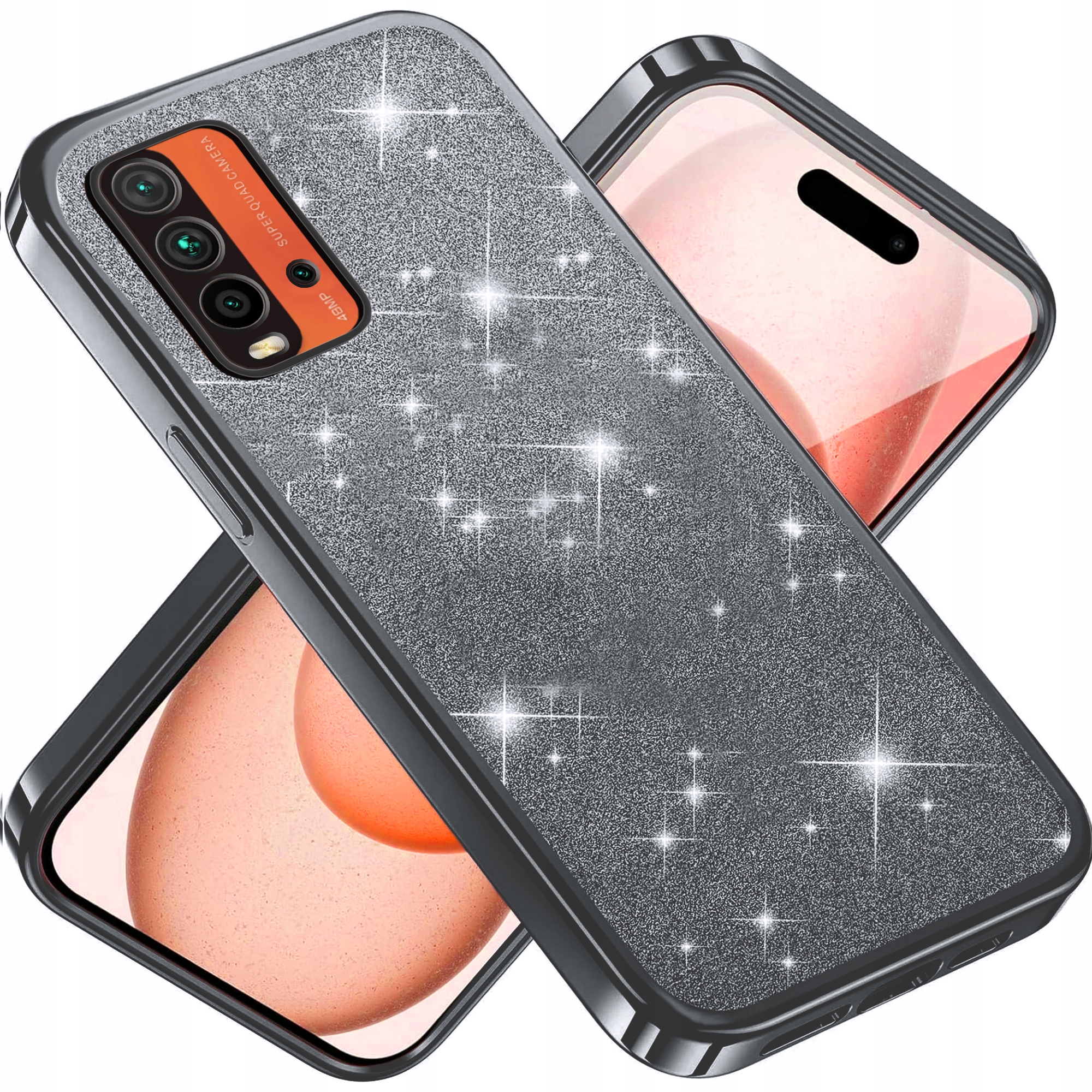 ETUI DO XIAOMI REDMI 9T SILIKONOWE BROKATOWE 2W1 CLEAR SLIM CASE + SZKŁO