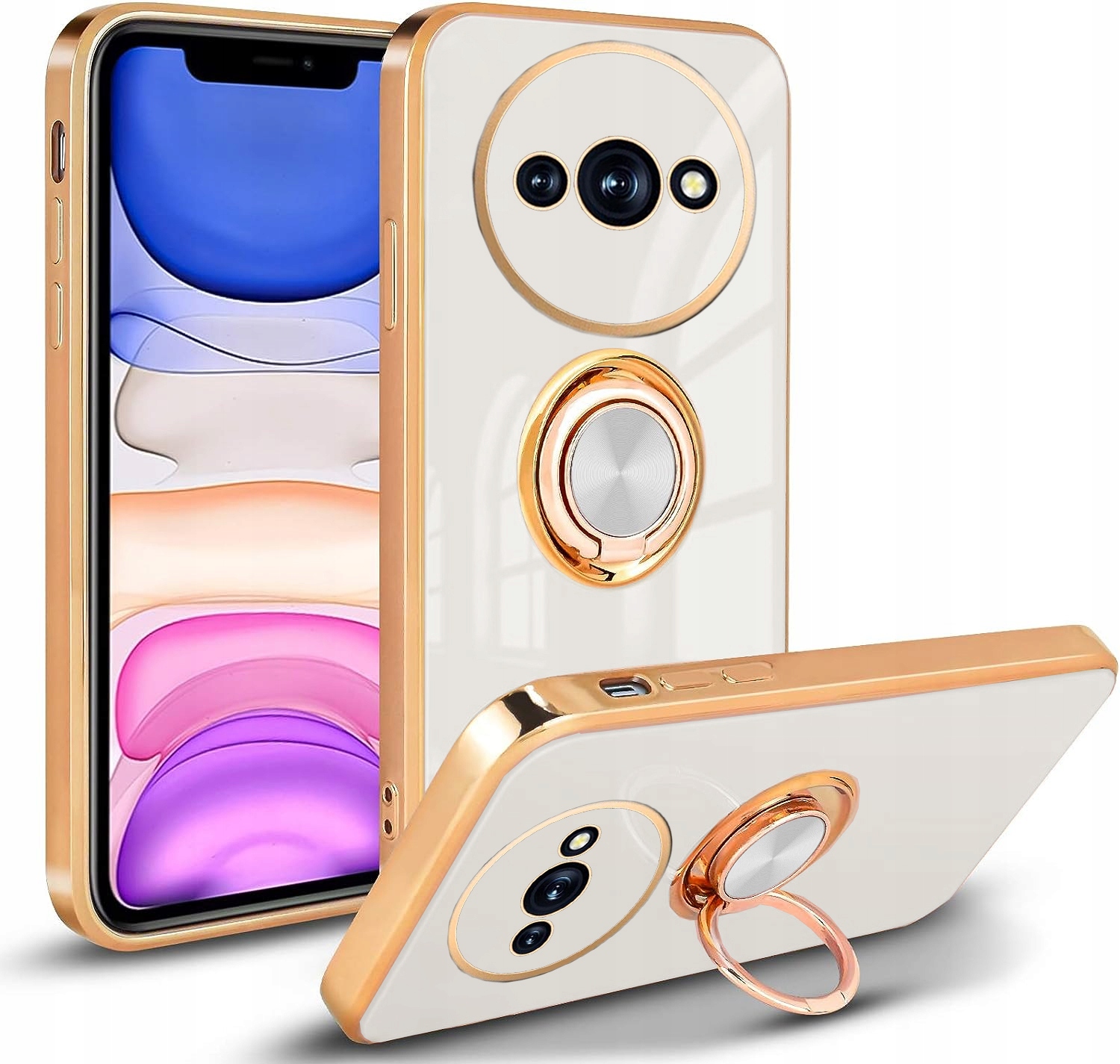 Luksusowe błyszczące etui złotą ramką i złotym ringiem na palec. Jest to model wyjątkowo uniwersalny – pasuje każdemu i świetnie sprawdzi się w każdej sytuacji!