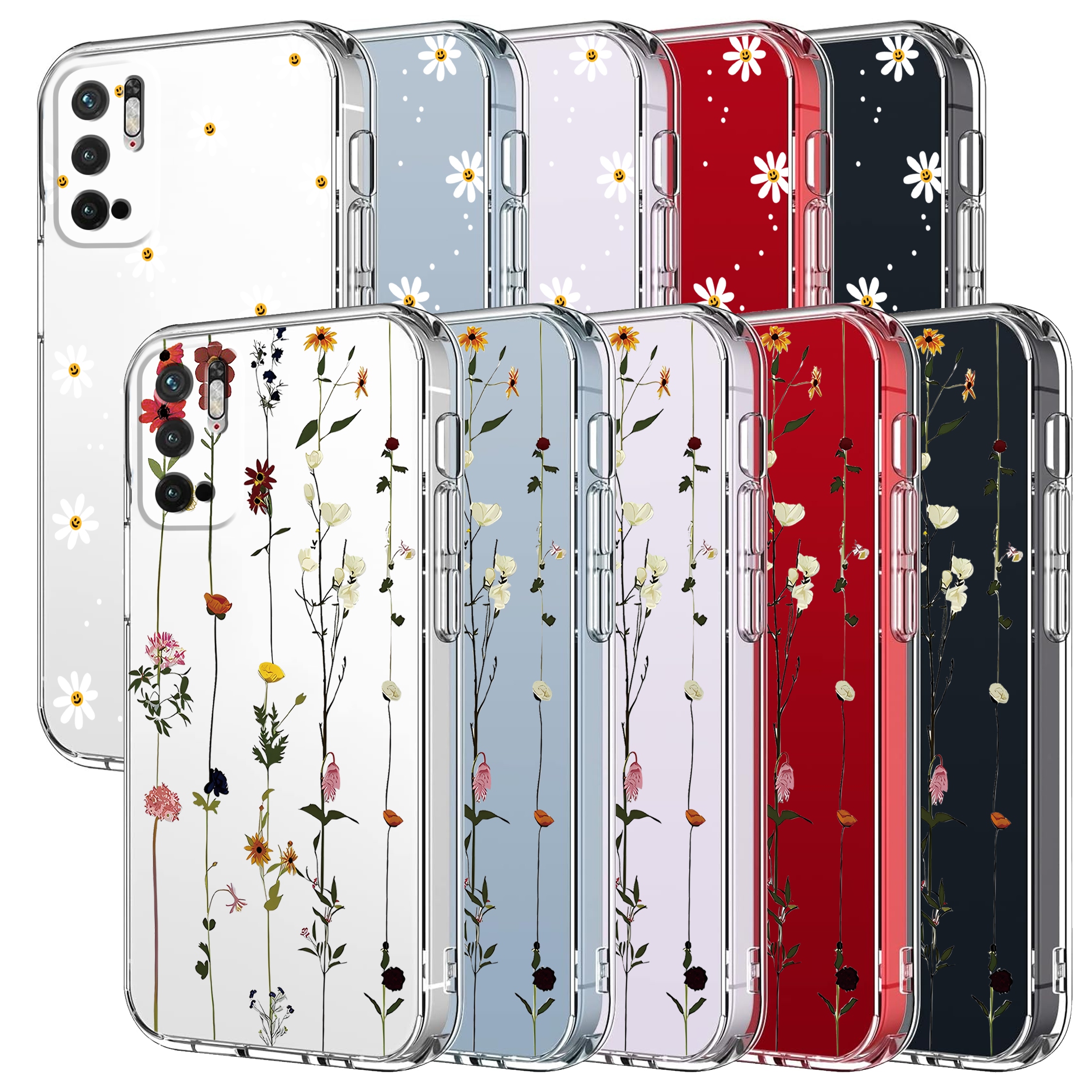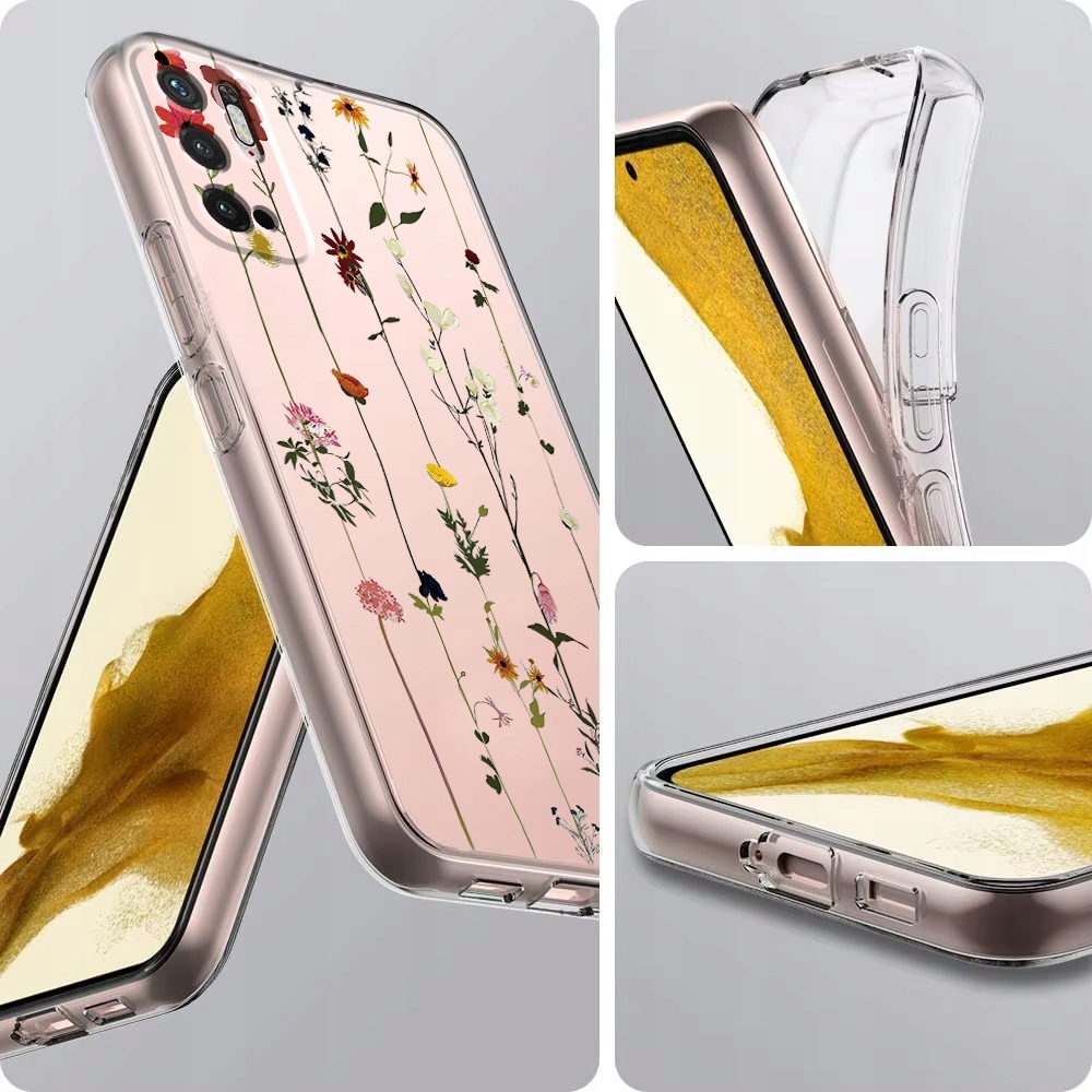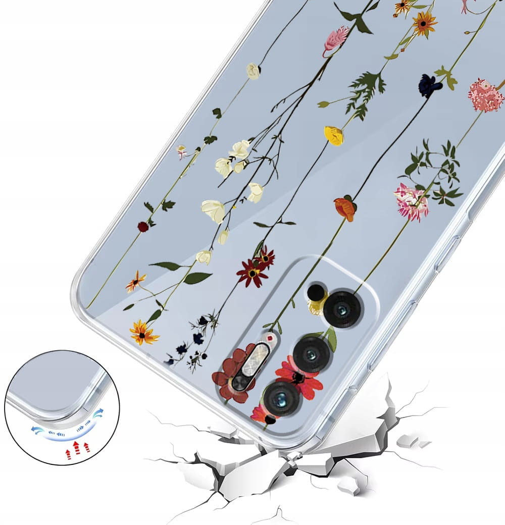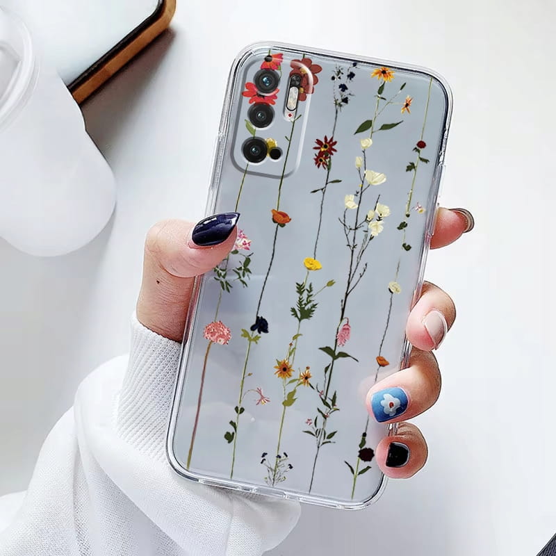 ETUI DO XIAOMI REDMI NOTE 10 5G Przezroczyste KWIATY SILIKON CASE + SZKŁO