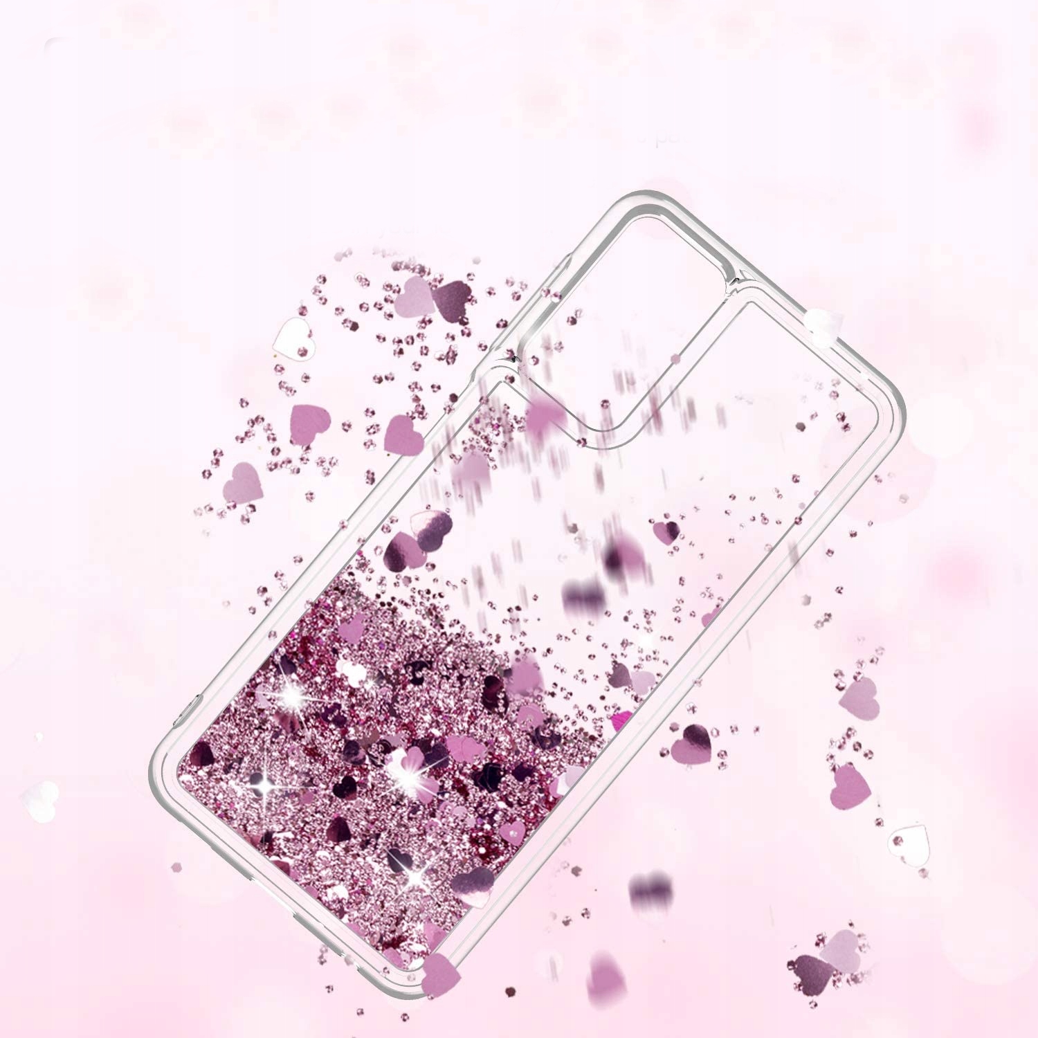 Płynny brokat zmienia swoje położenie w zależności od kąta pod którym znajduje się telefon.