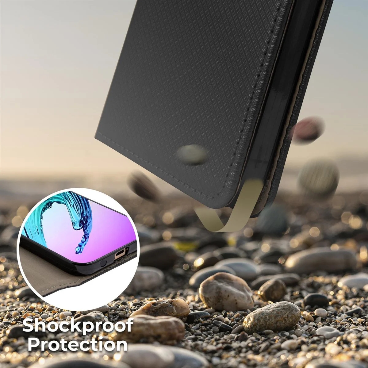 Silikonowe obramowanie nie pozwala Twojemu telefonowi wypaść z etui, a wyświetlacz jest chroniony przez klapkę.
