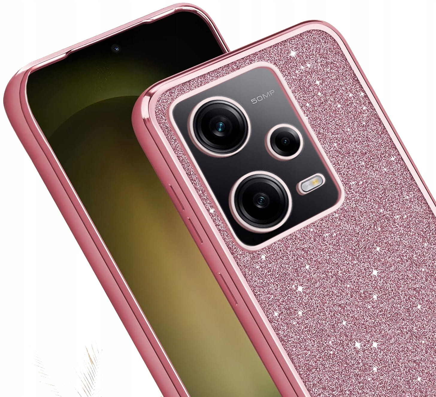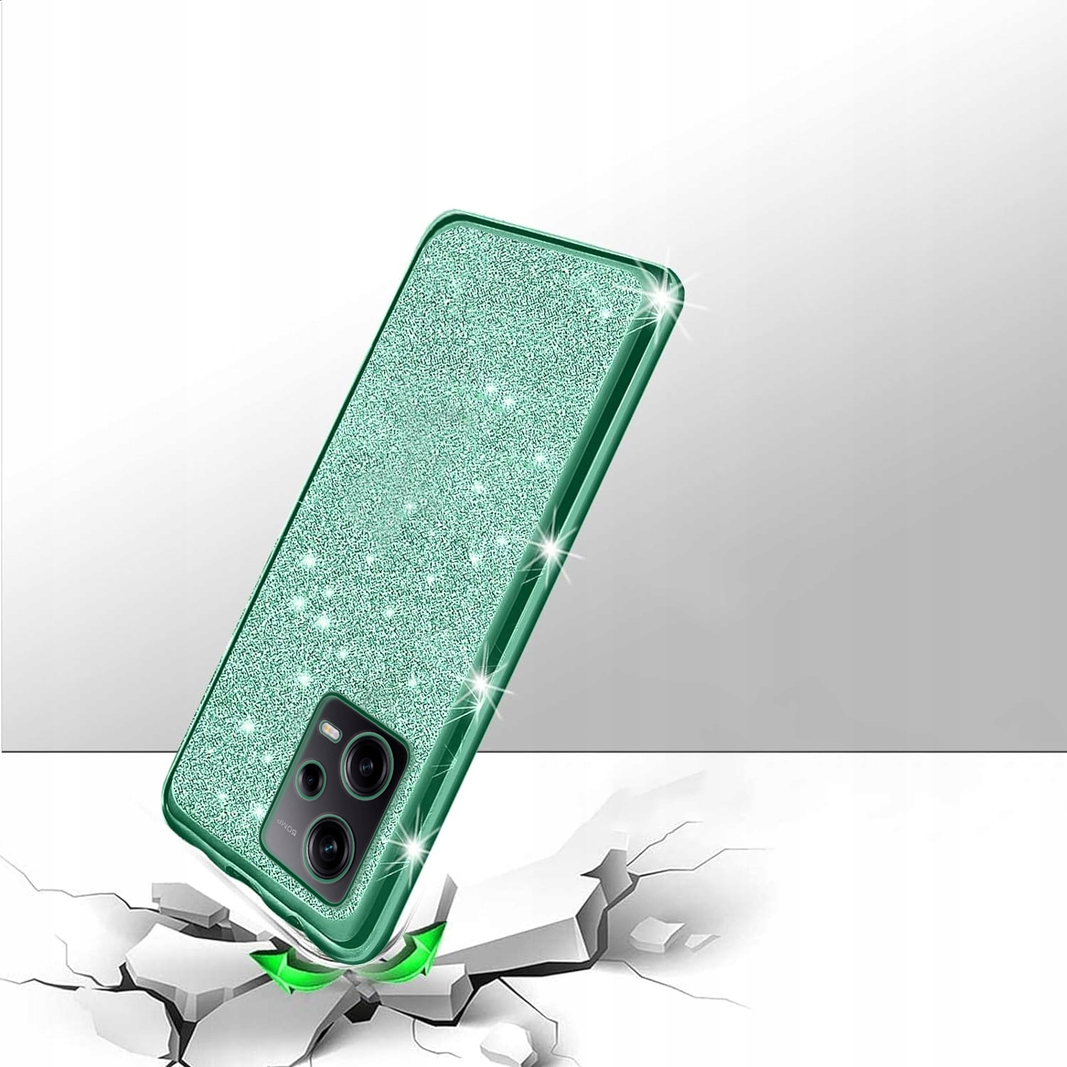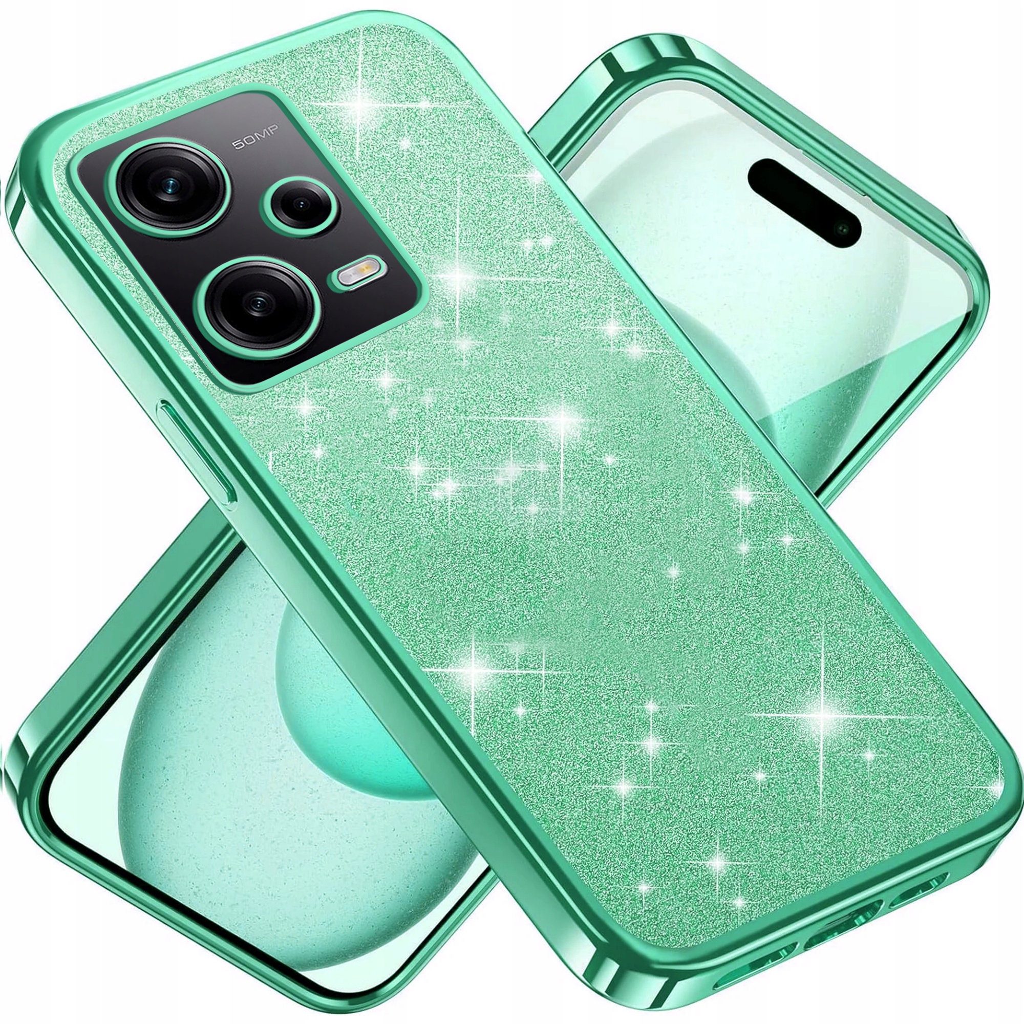 Silikonowe etui wykonane z elastycznej ramki TPU w kolorze i trwałego, krystalicznie przezroczystego tyłu PC, z dodatkową brokatową wkładką!