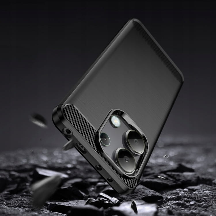 Etui jest eleganckie i nowoczesne, dzięki czarnemu kolorowi i karbonowej fakturze. Silikonowa obudowa jest wykonana z elastycznego materiału TPU , zapewnia skuteczną ochronę dzięki antypoślizgowej fakturze i wzmocnionym narożnikom.