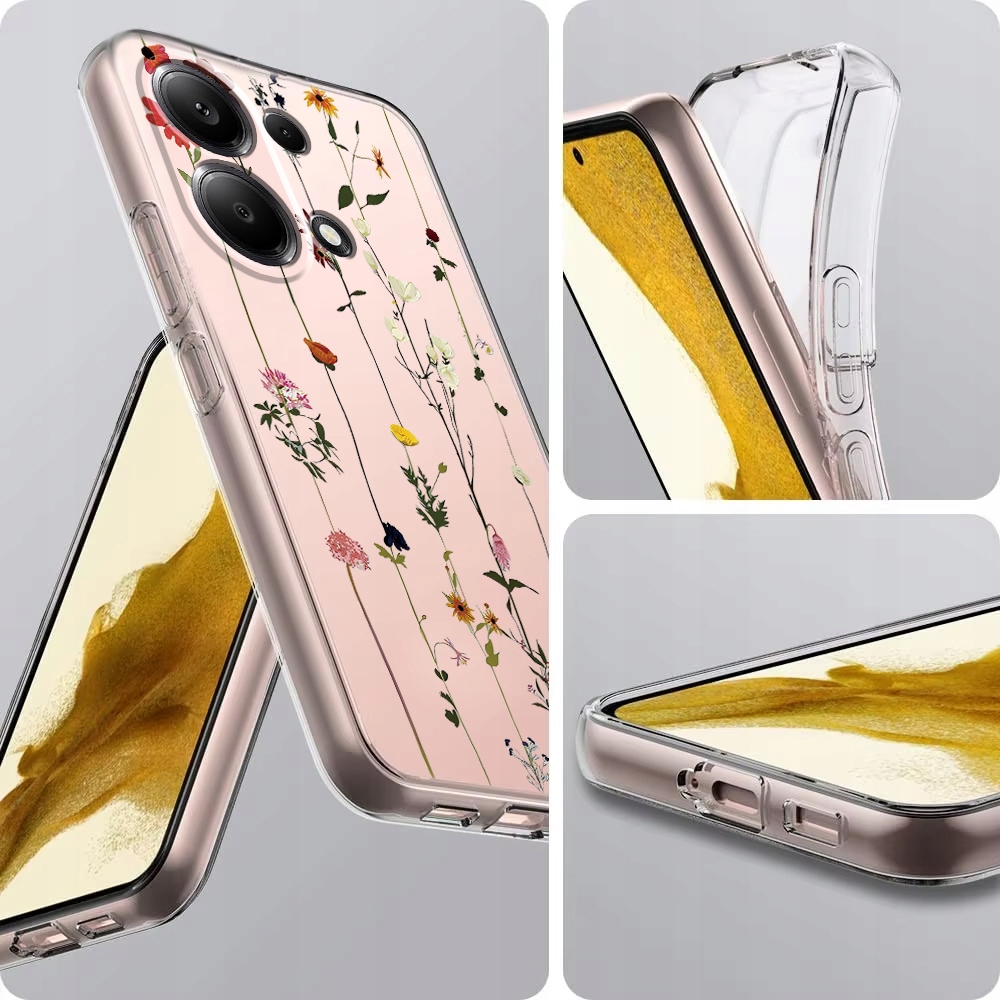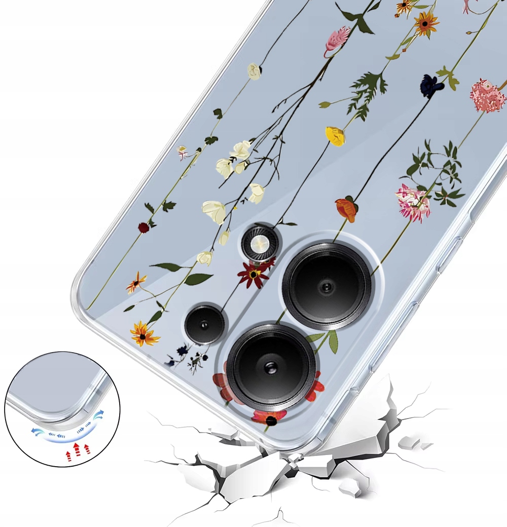 ETUI DO XIAOMI REDMI NOTE 13 PRO 4G / POCO M6 PRO 4G KWIATY SILIKON + SZKŁO