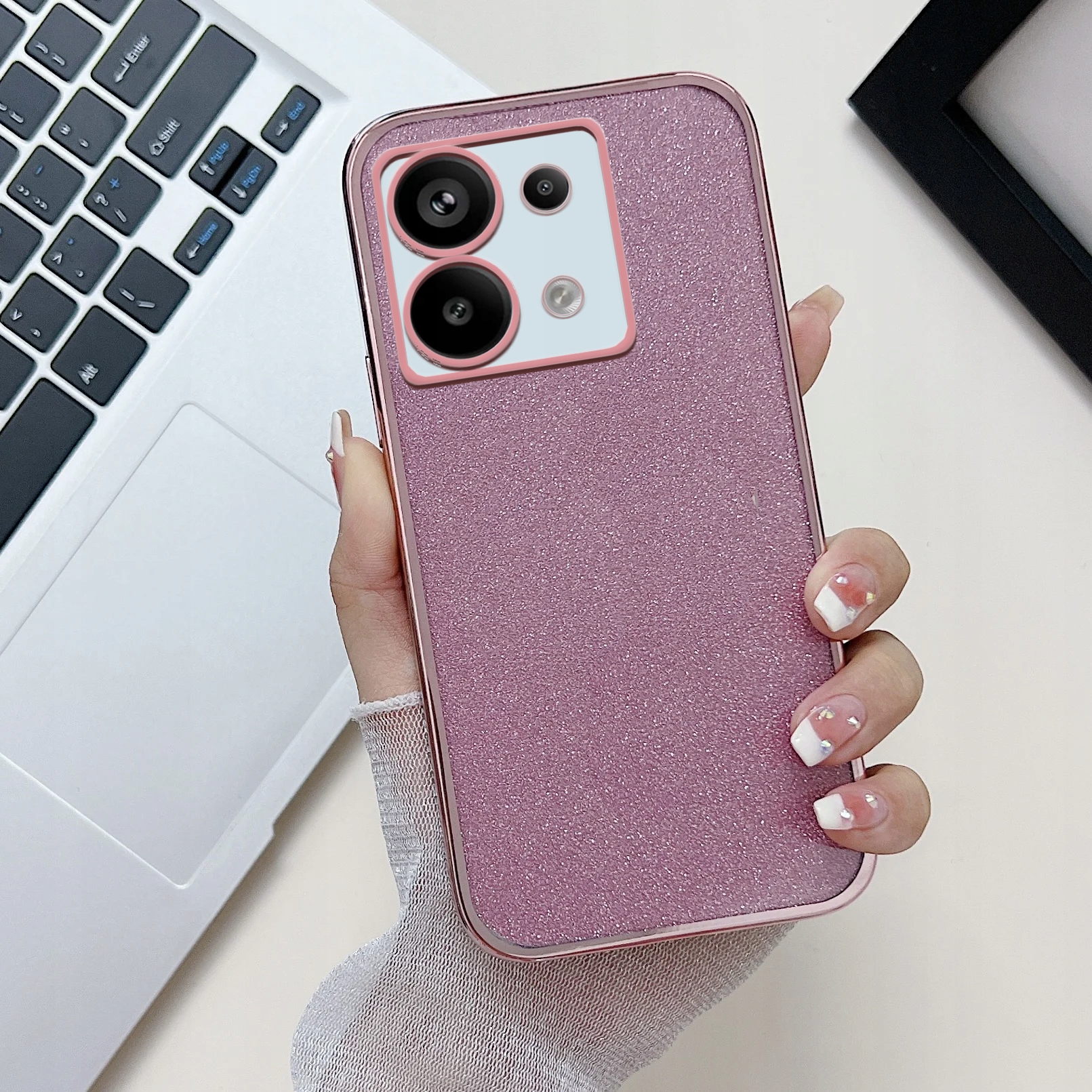 ⭐ Miękka obudowa zewnętrzna z TPU + warstwa folii z brokatem