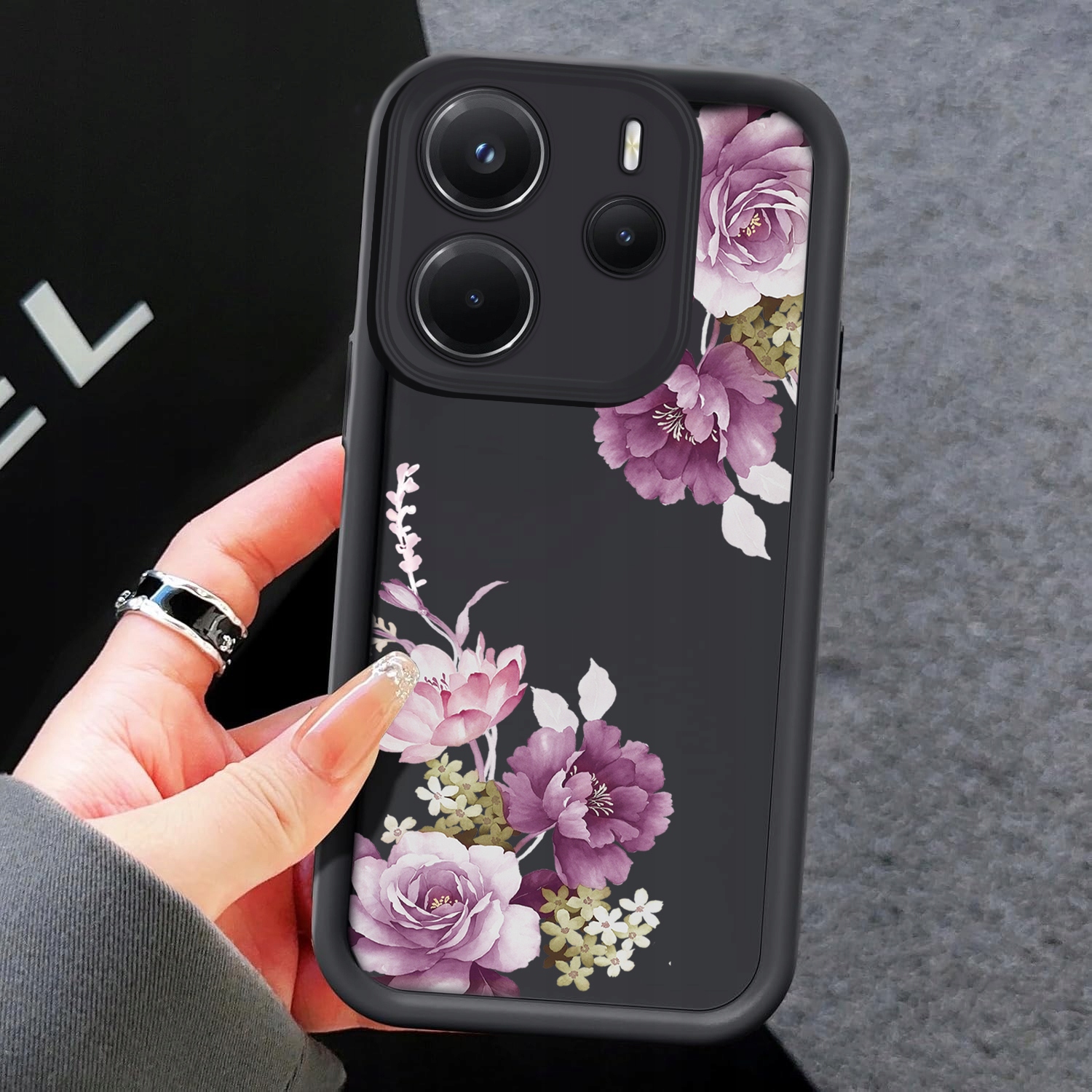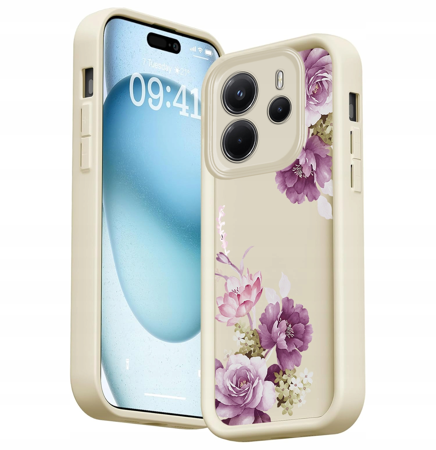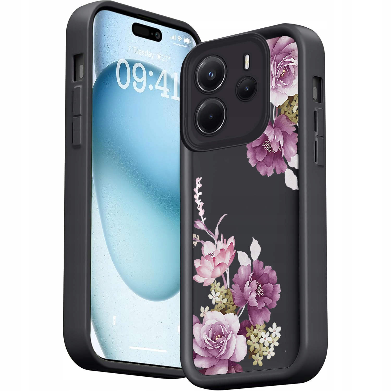 ETUI DO XIAOMI REDMI NOTE 14 / 14 4G SILIKON MATT OCHRONA KWIATY 3D + SZKŁO