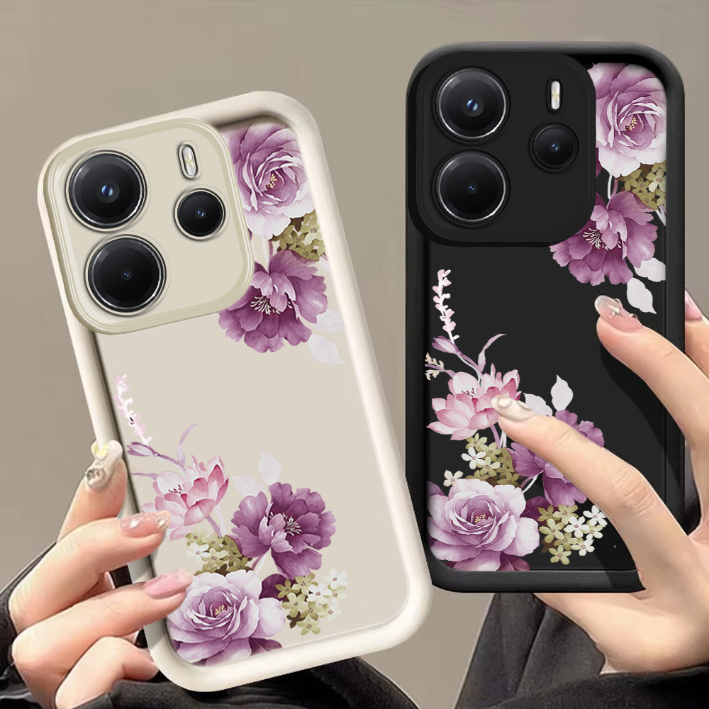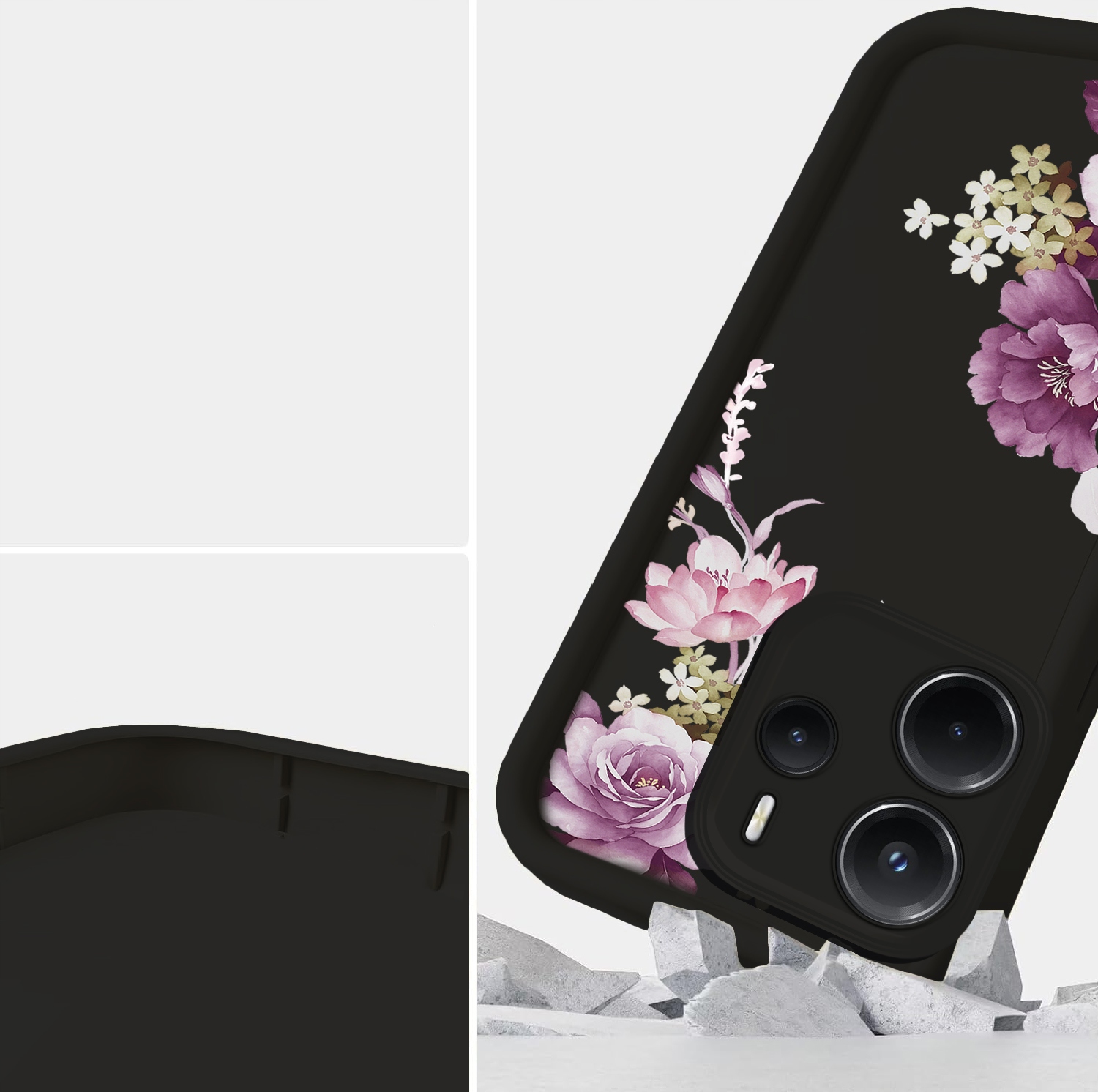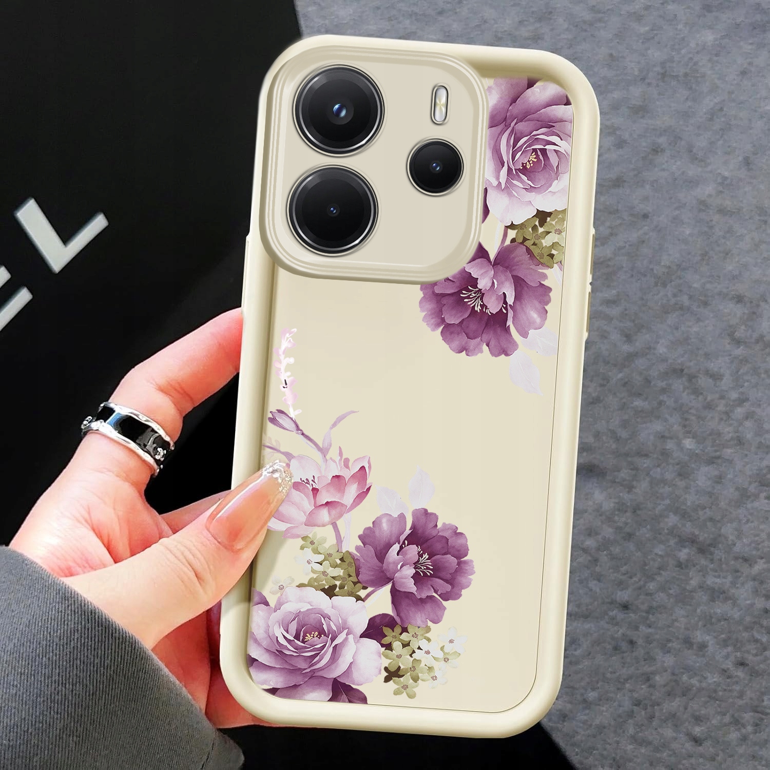 ETUI DO XIAOMI REDMI NOTE 14 / 14 4G SILIKON MATT OCHRONA KWIATY 3D + SZKŁO