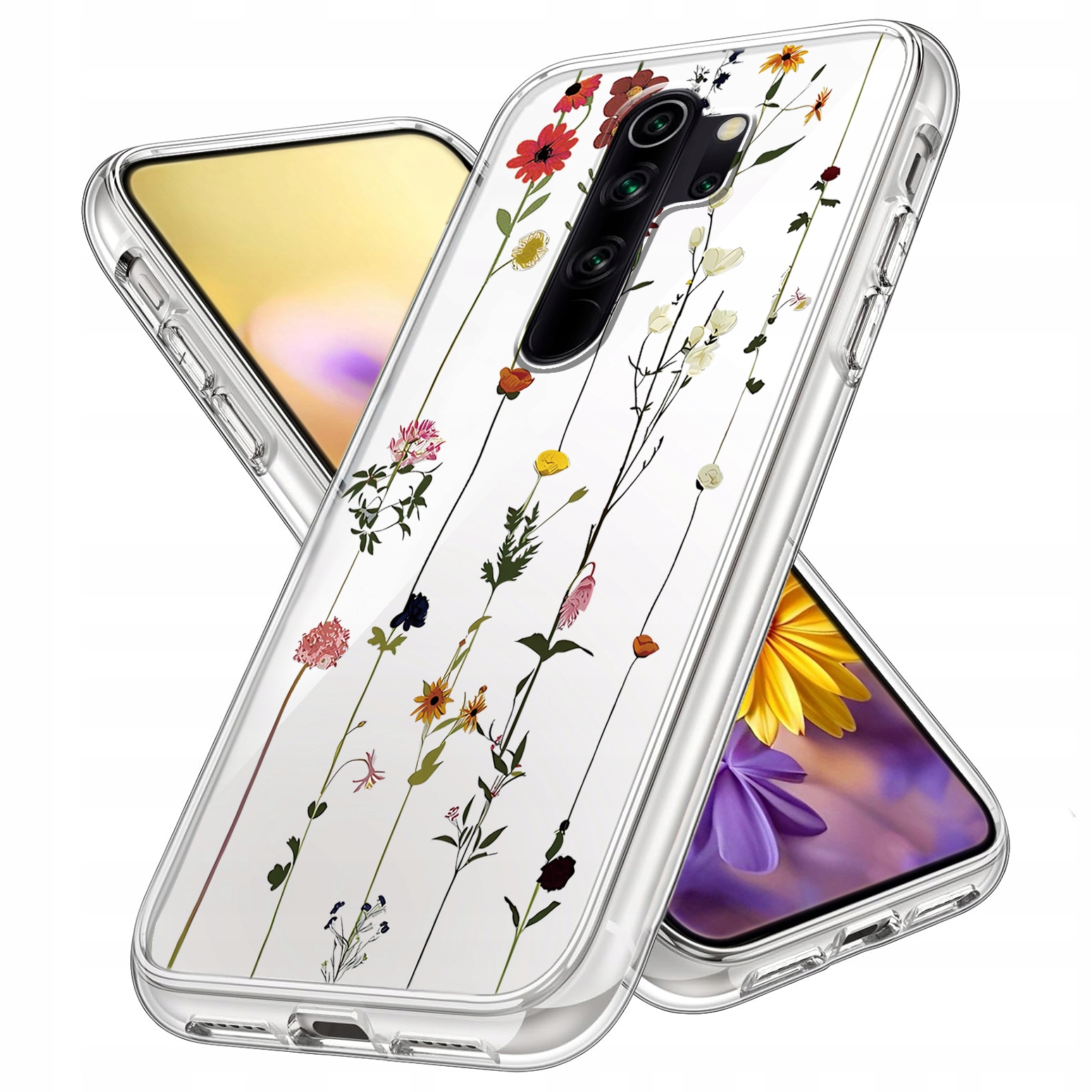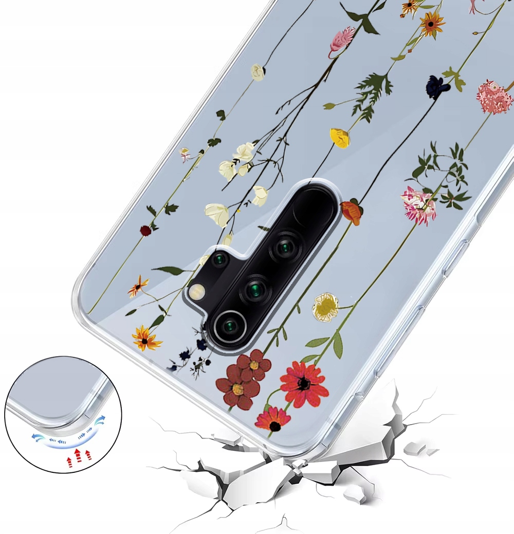 ETUI DO XIAOMI REDMI NOTE 8 PRO Przezroczyste KWIATY SILIKON CASE + SZKŁO