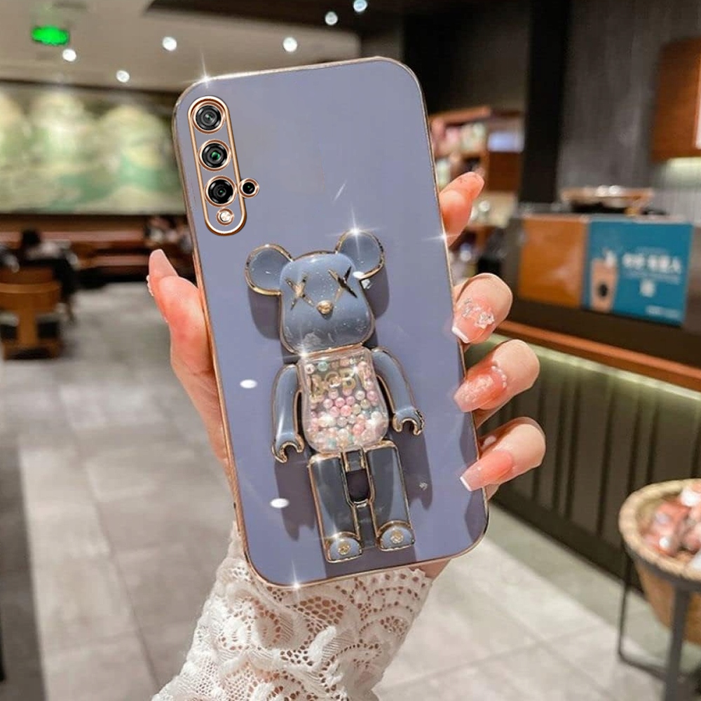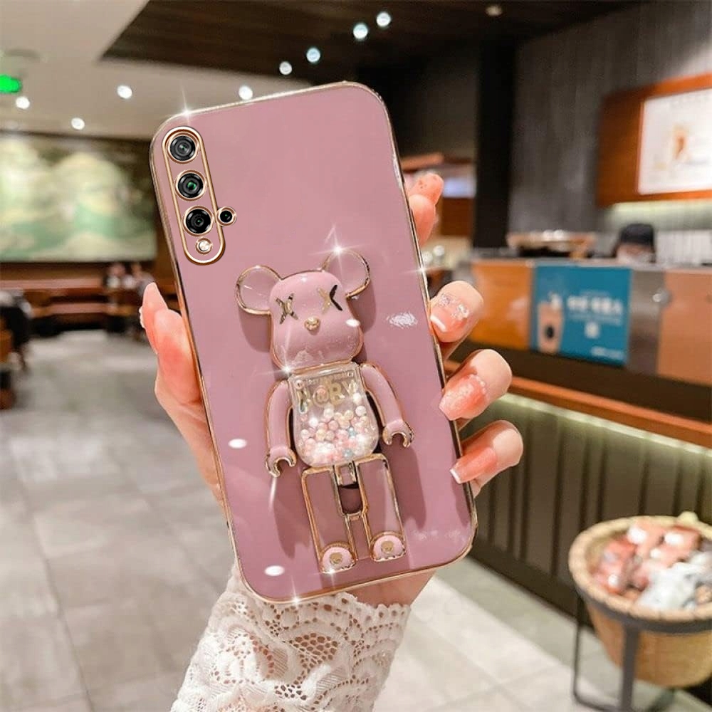 ETUI GLAMOUR DO HUAWEI NOVA 5T / HONOR 20 BEAR UCHWYT MIŚ SILIKON + SZKŁO