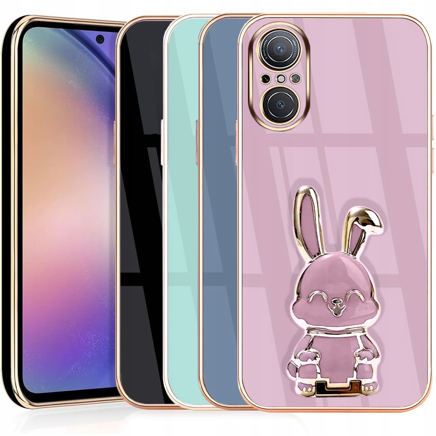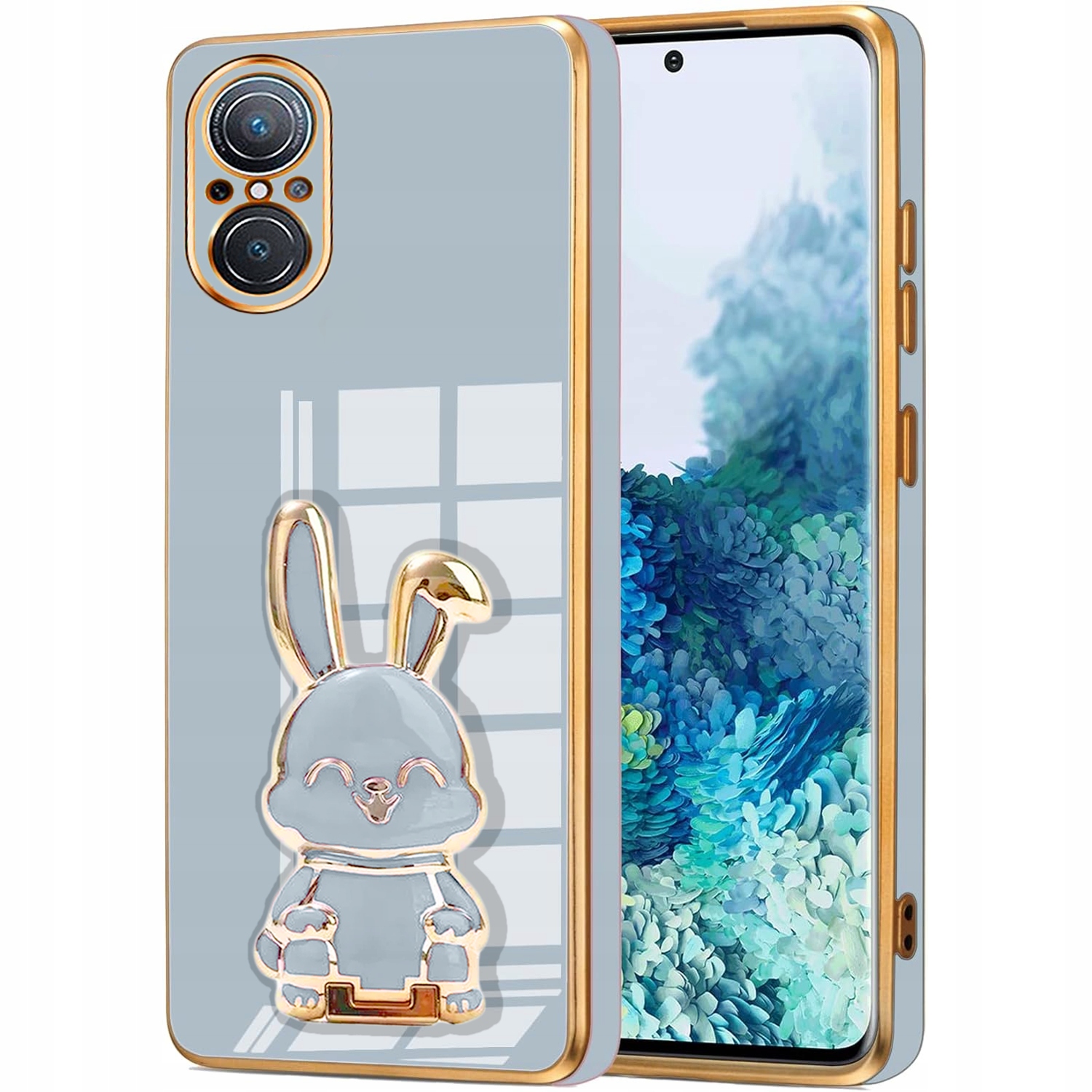 ETUI GLAMOUR DO HUAWEI NOVA 9 SE KRÓLIK UCHWYT PODSTAWKA SILIKON 6D + SZKŁO