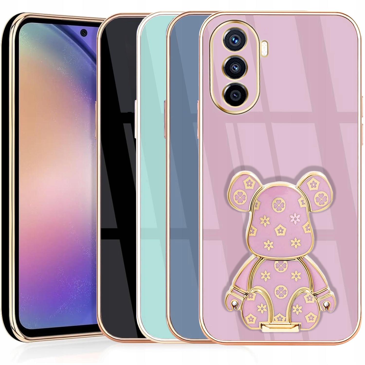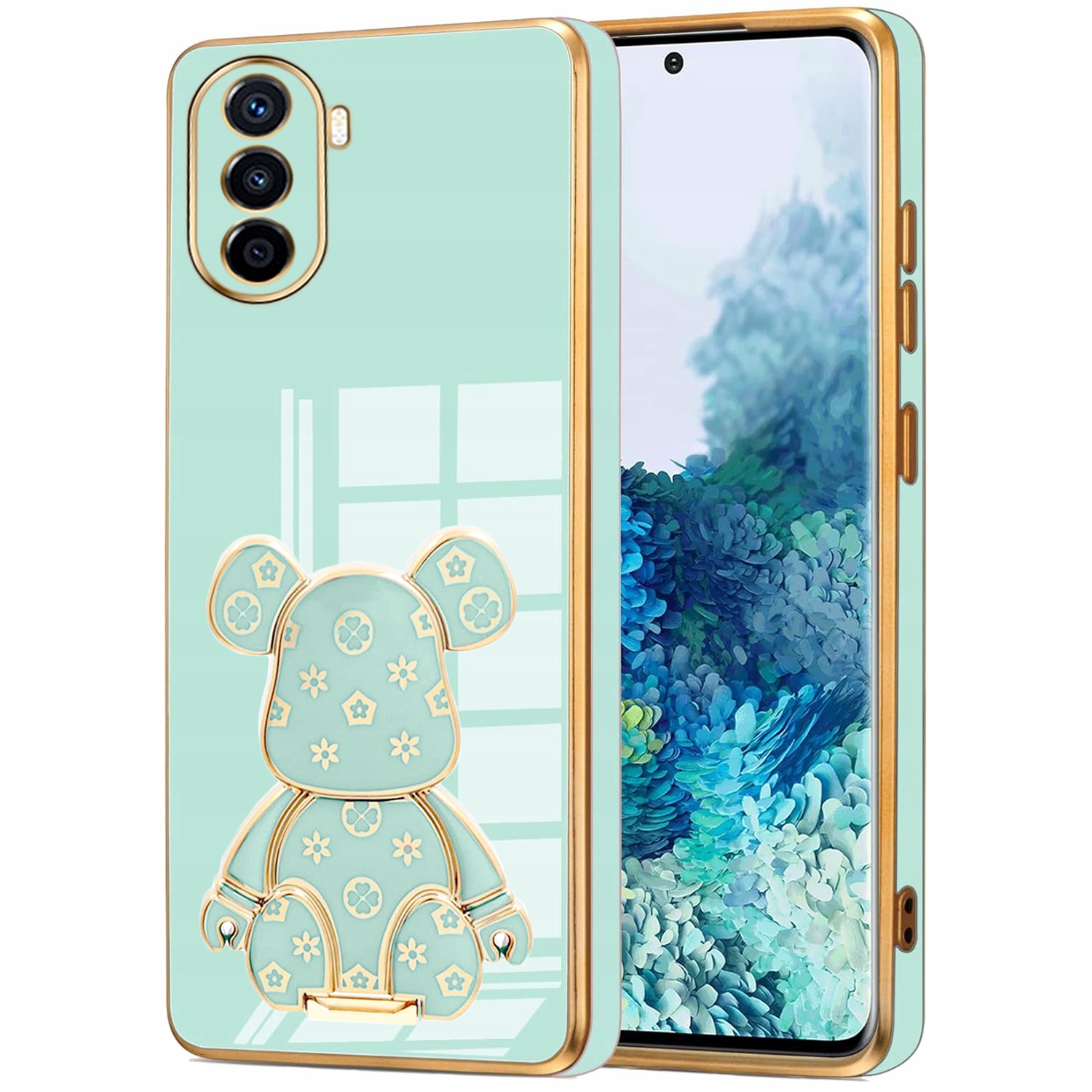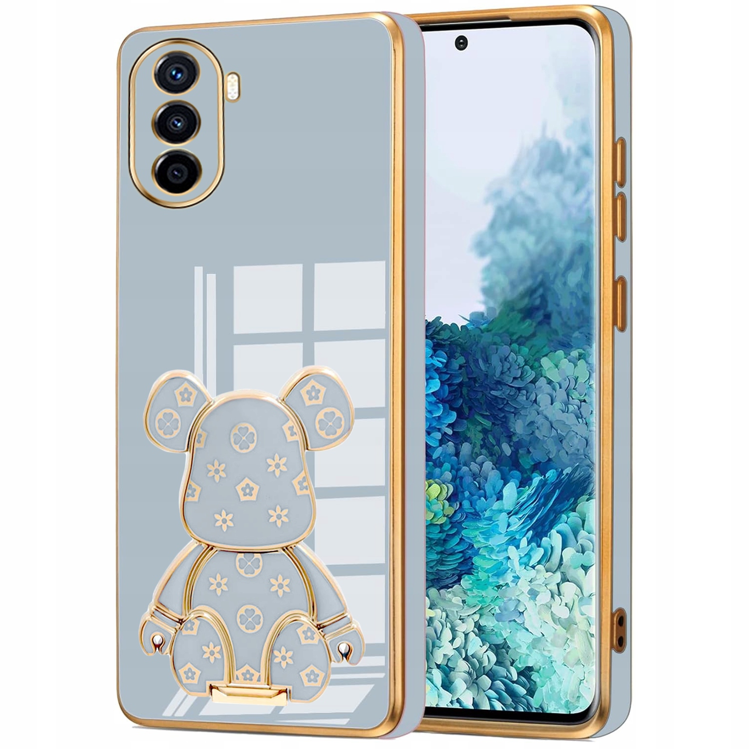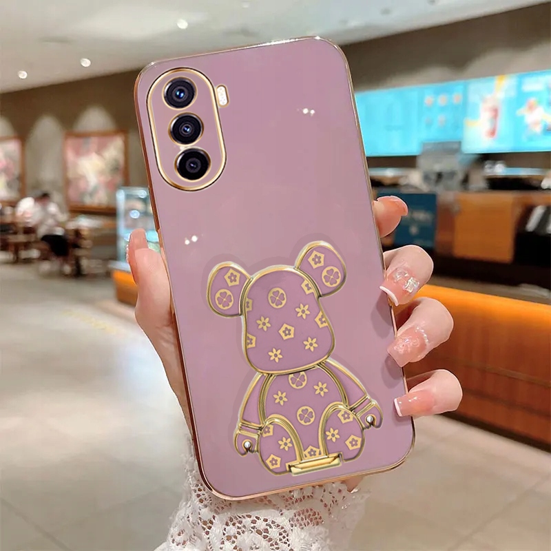 ETUI GLAMOUR DO HUAWEI NOVA Y70 MIŚ UCHWYT PODSTAWKA BEAR SILIKON + SZKŁO