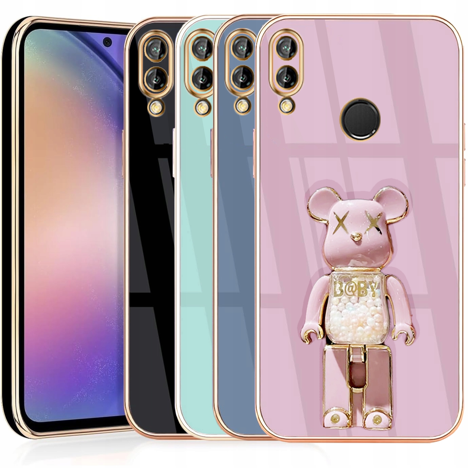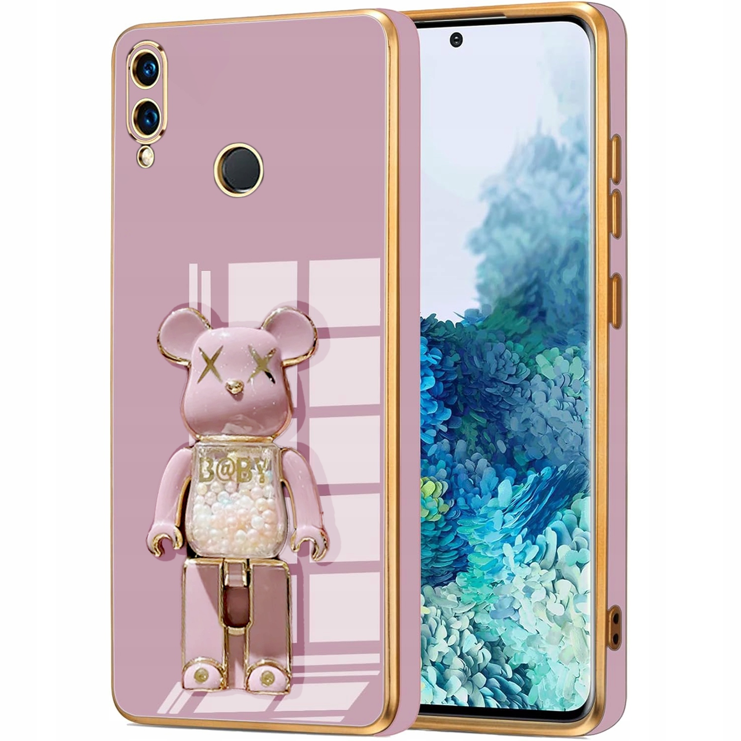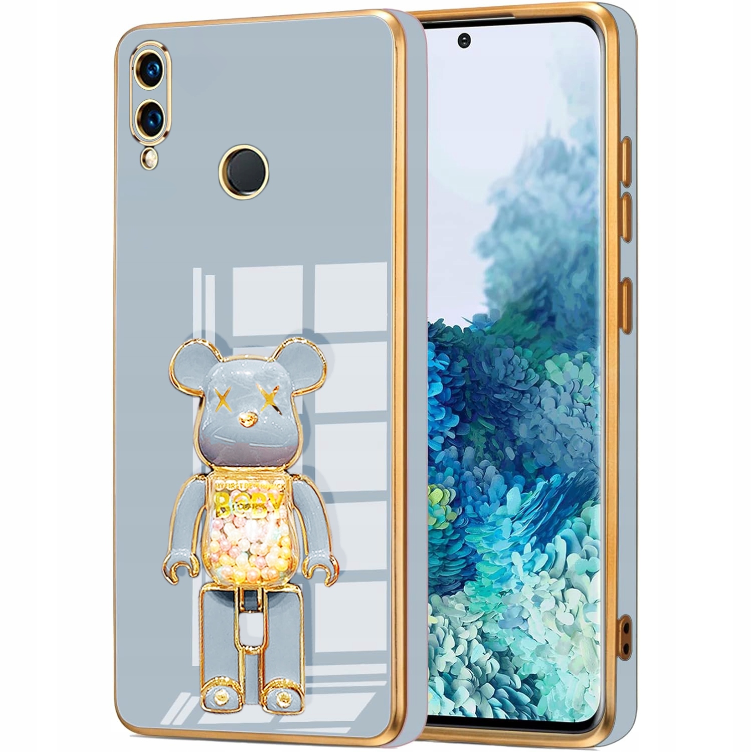 ETUI GLAMOUR DO HUAWEI P SMART 2019 BEAR UCHWYT MIŚ SILIKON CASE 6D + SZKŁO