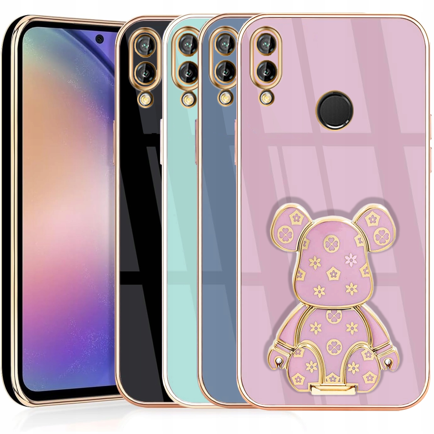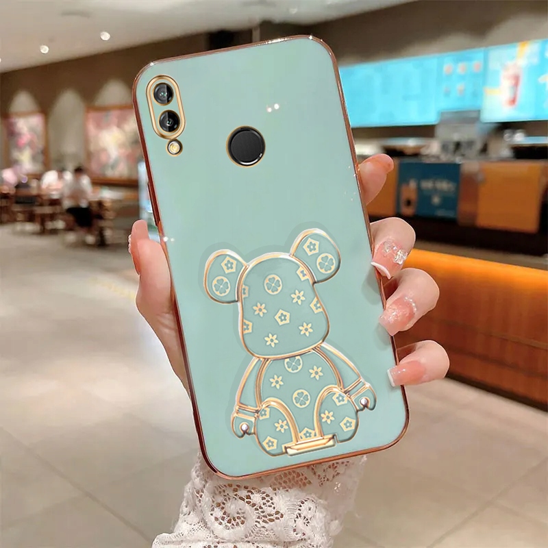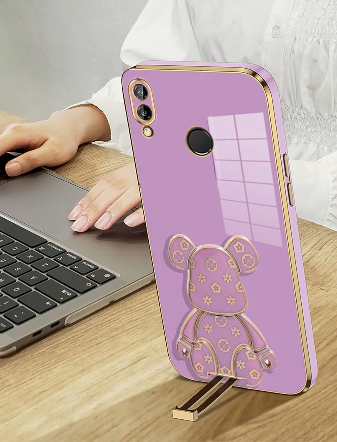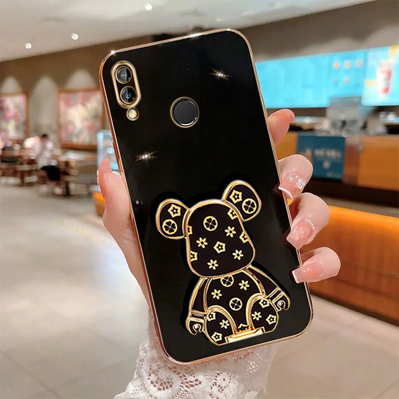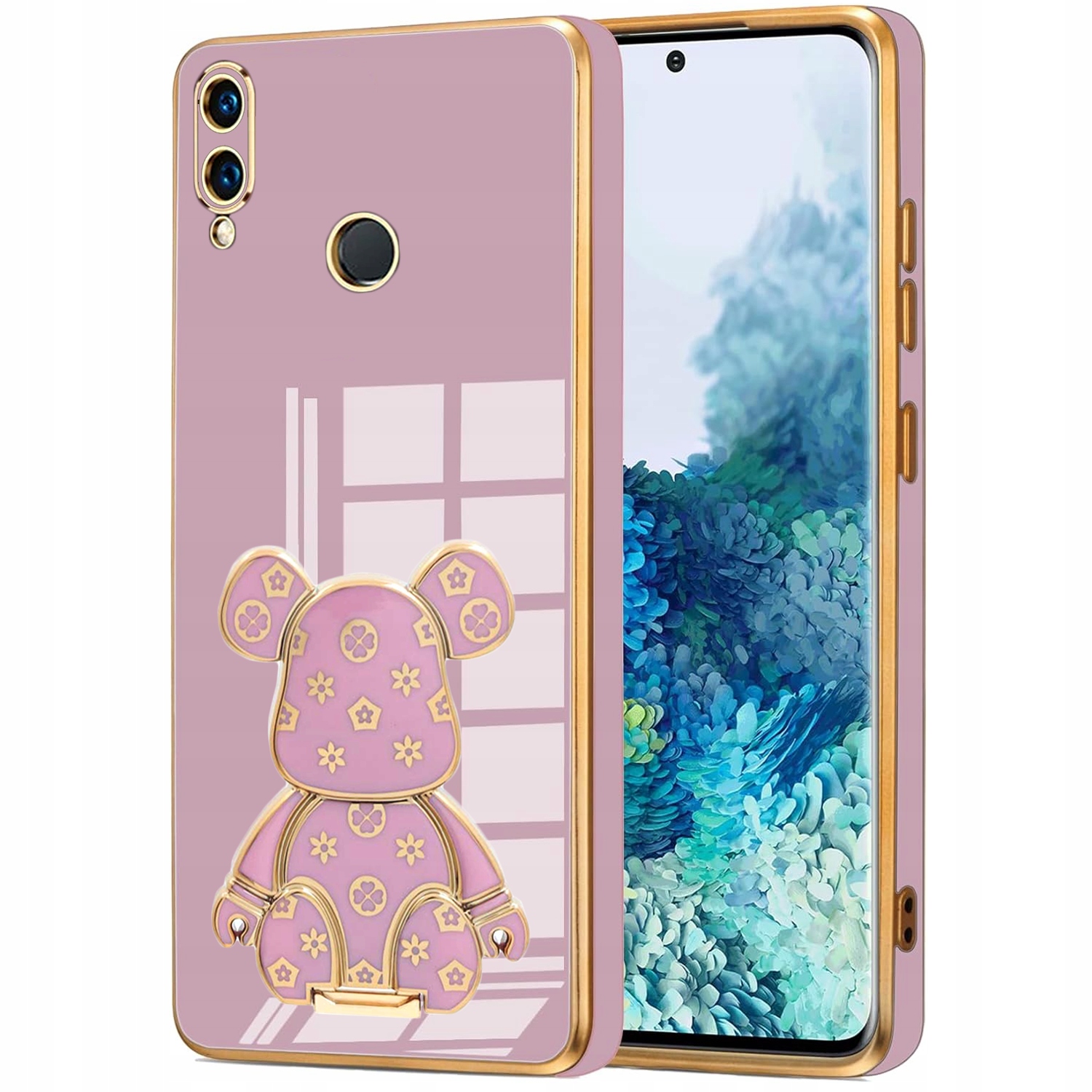 ETUI GLAMOUR DO HUAWEI P20 LITE MIŚ UCHWYT PODSTAWKA BEAR SILIKON + SZKŁO
