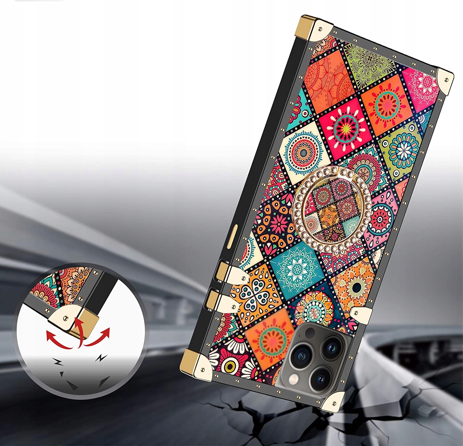 ETUI GLAMOUR DO IPHONE 13 PRO RING CASE + SZKŁO