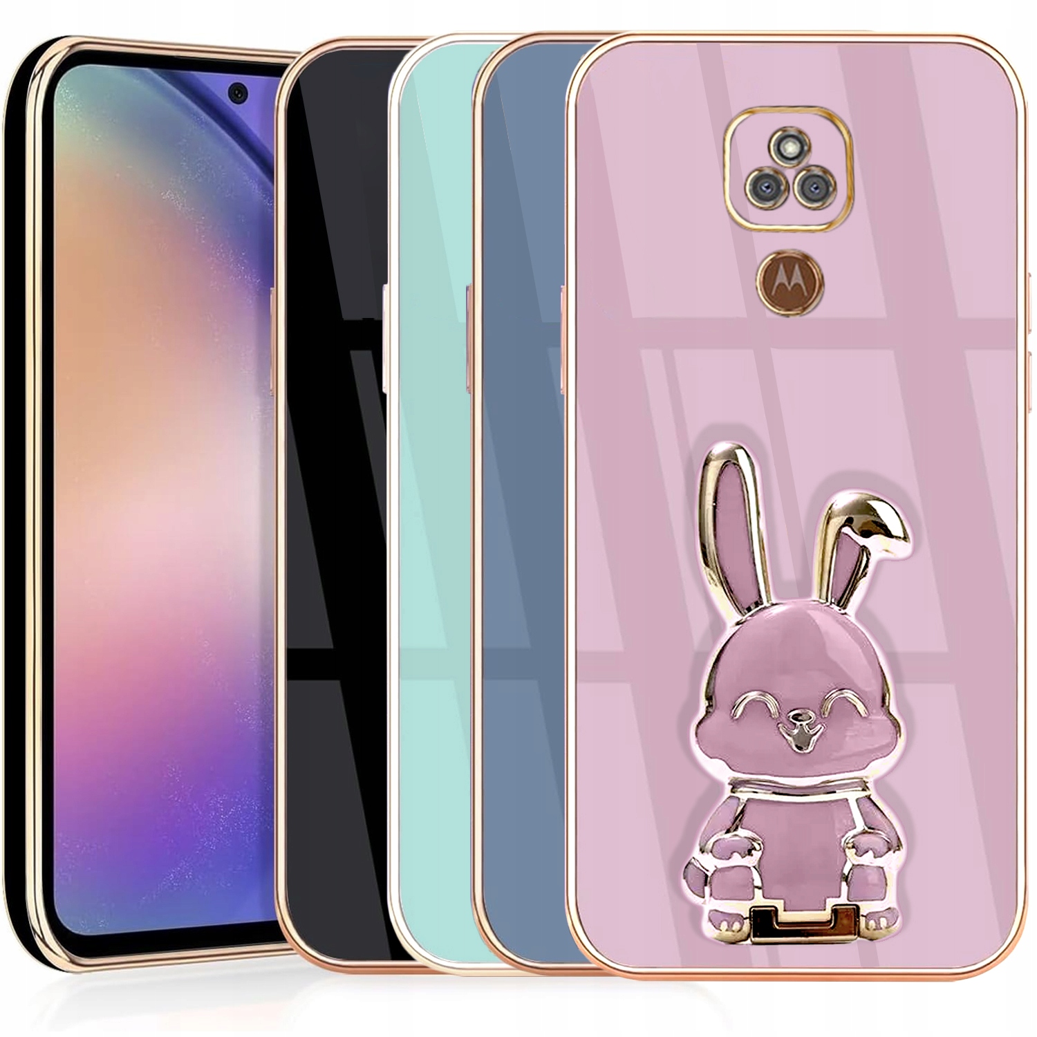 ETUI GLAMOUR DO MOTO E7 PLUS KRÓLIK UCHWYT PODSTAWKA SILIKON CASE + SZKŁO