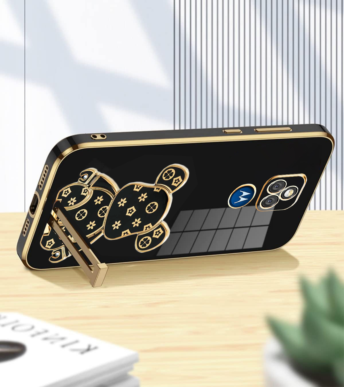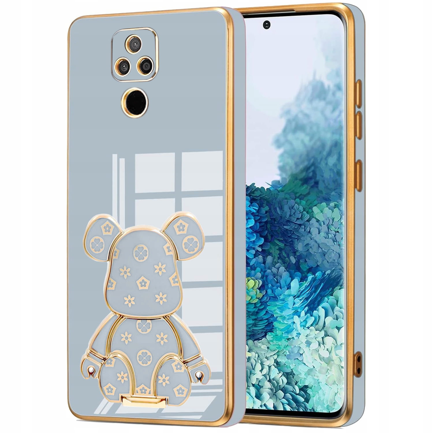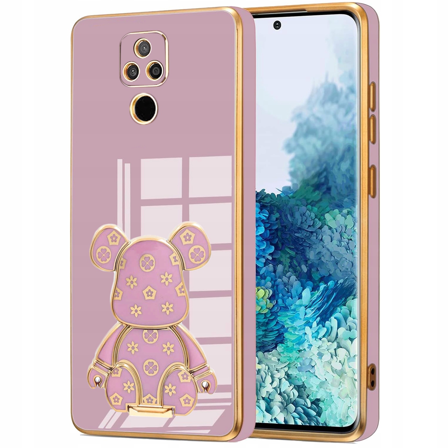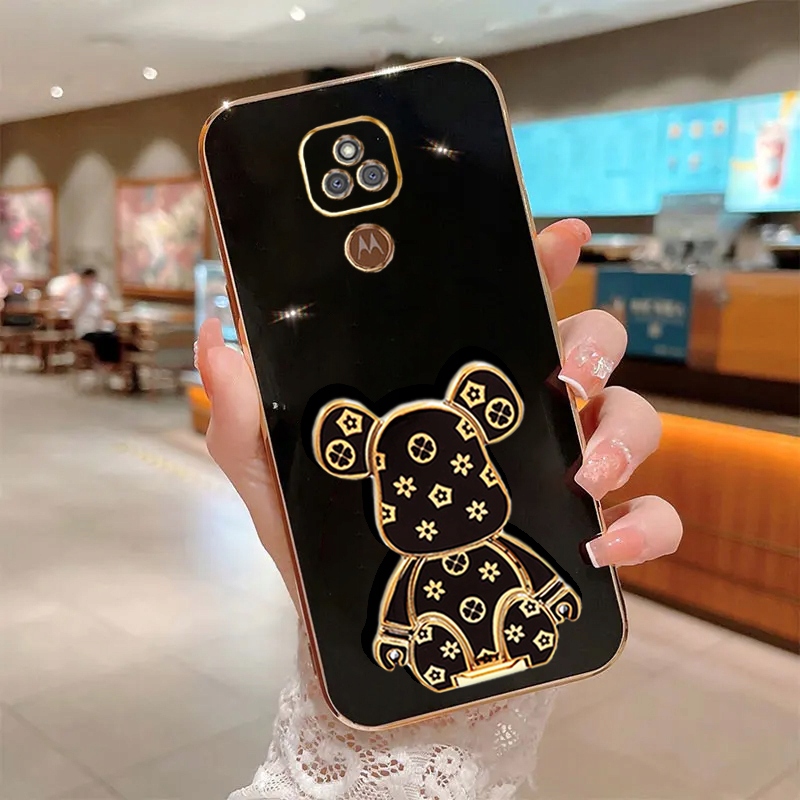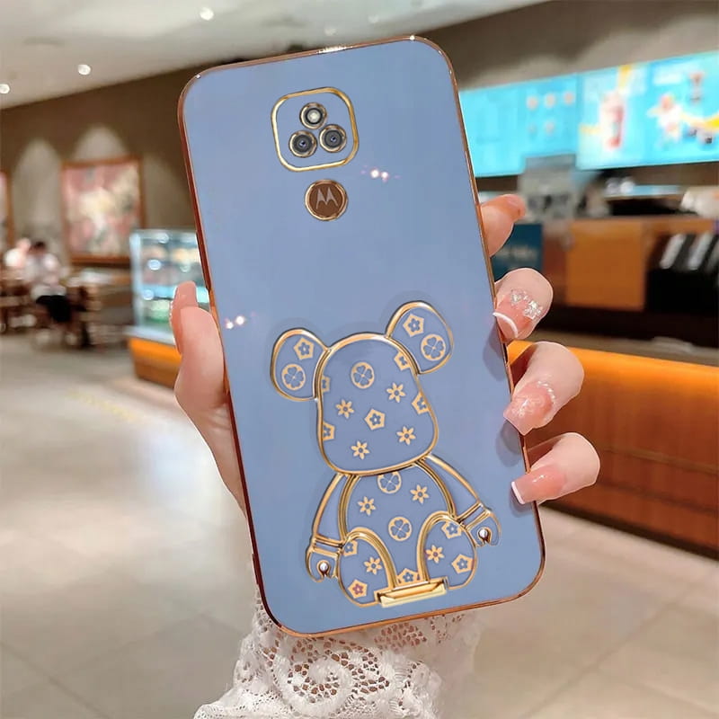 ETUI GLAMOUR DO MOTO E7 PLUS MIŚ BEAR UCHWYT PODSTAWKA SILIKON CASE + SZKŁO