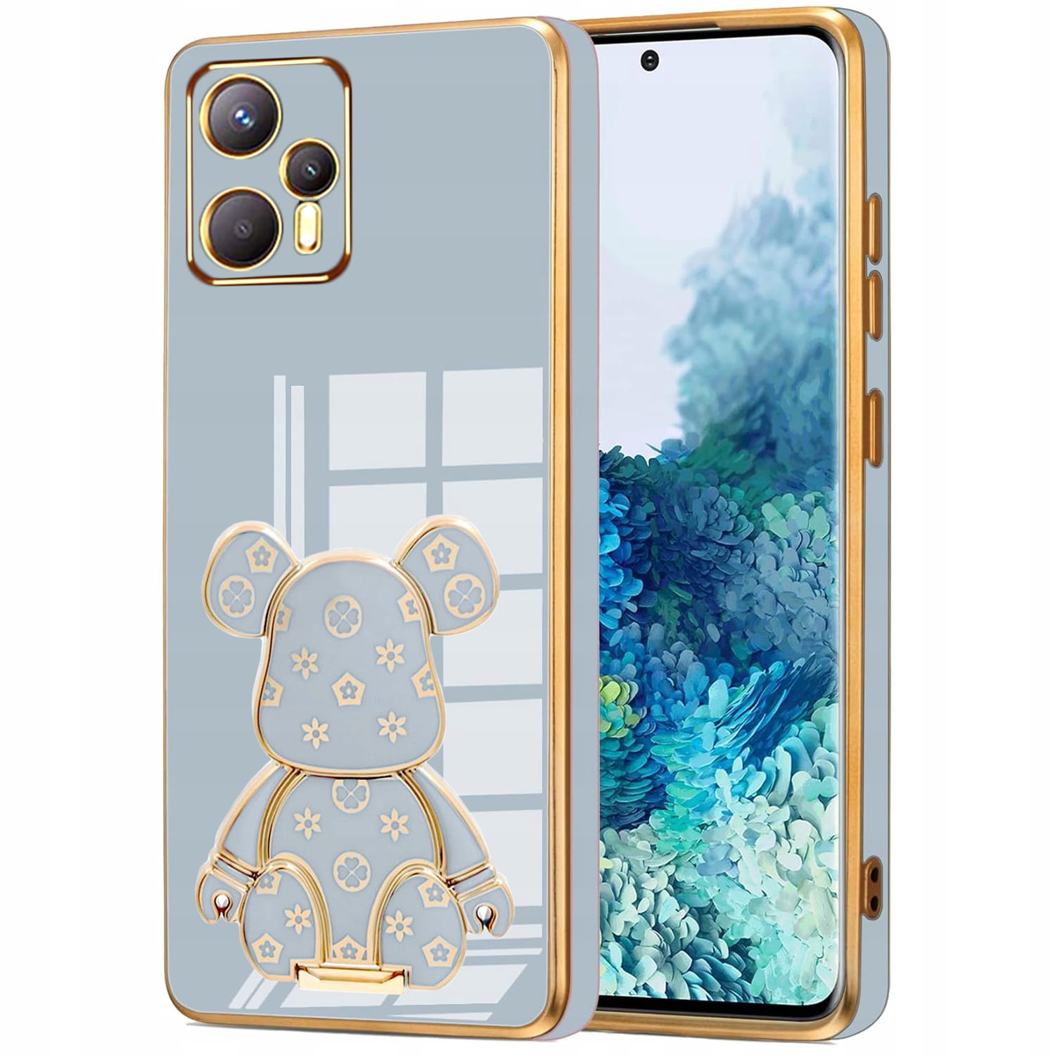 ETUI GLAMOUR DO MOTO G13 / G23 MIŚ BEAR UCHWYT PODSTAWKA SILIKON + SZKŁO