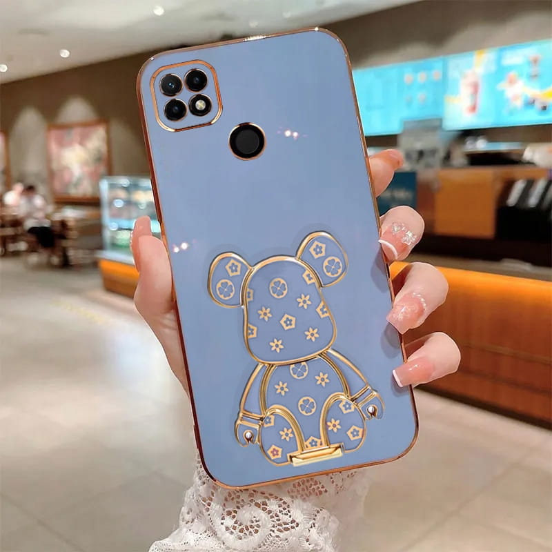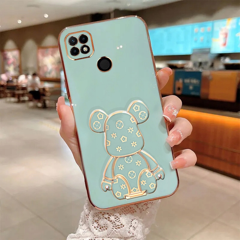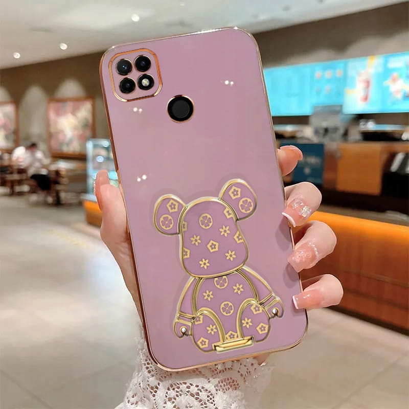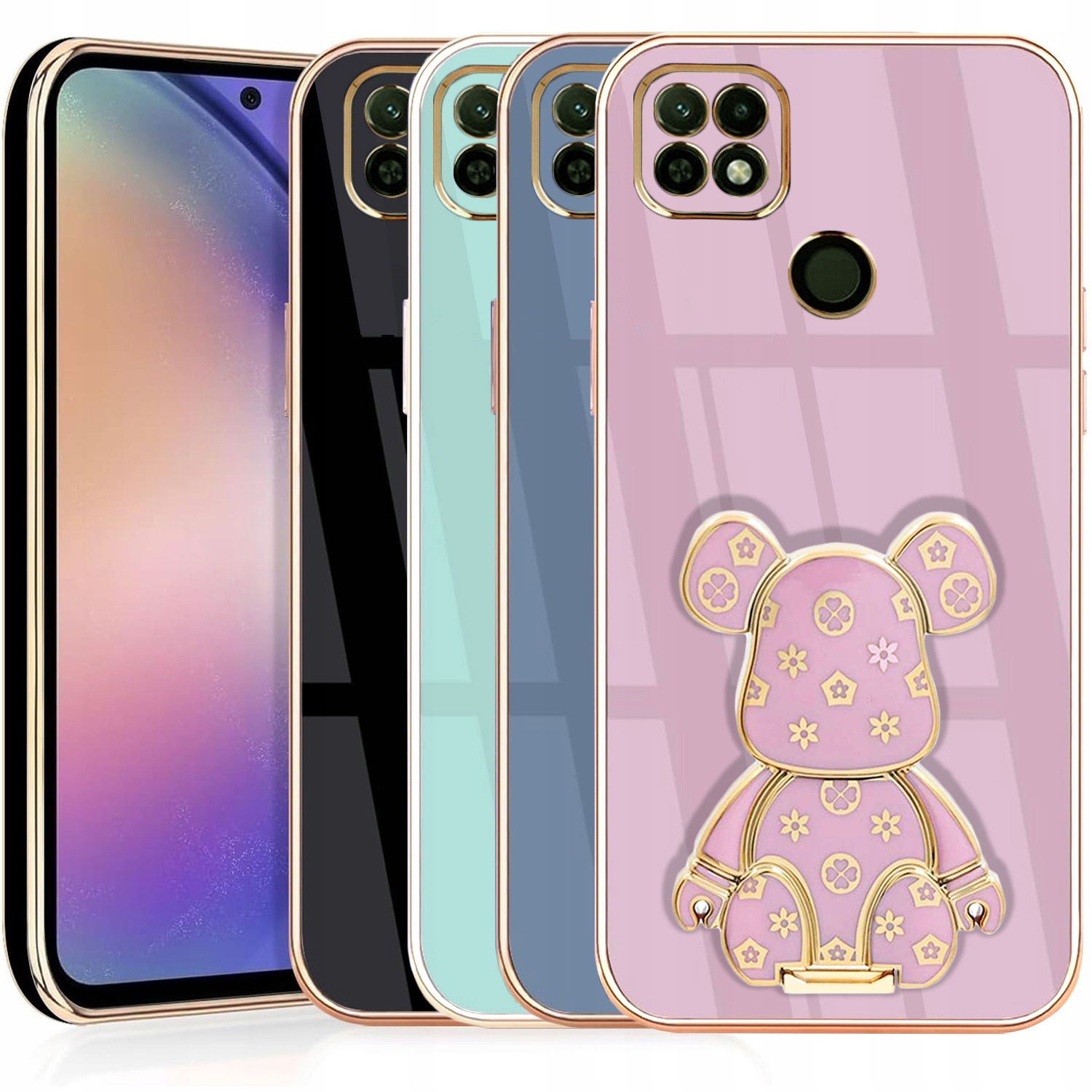 ETUI GLAMOUR DO OPPO A15 / A15s MIŚ UCHWYT PODSTAWKA BEAR SILIKON + SZKŁO