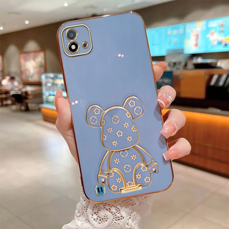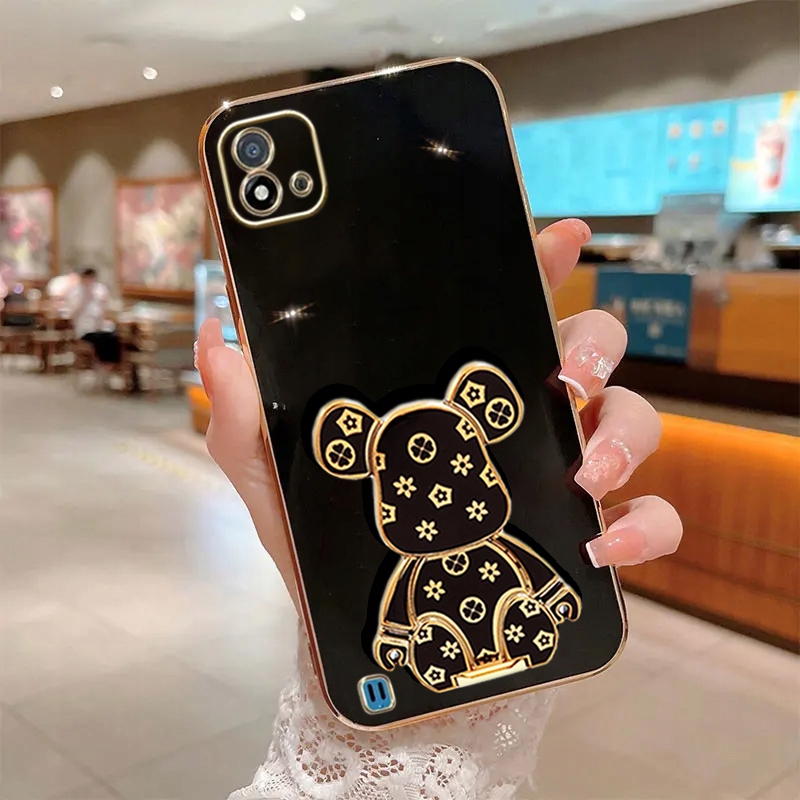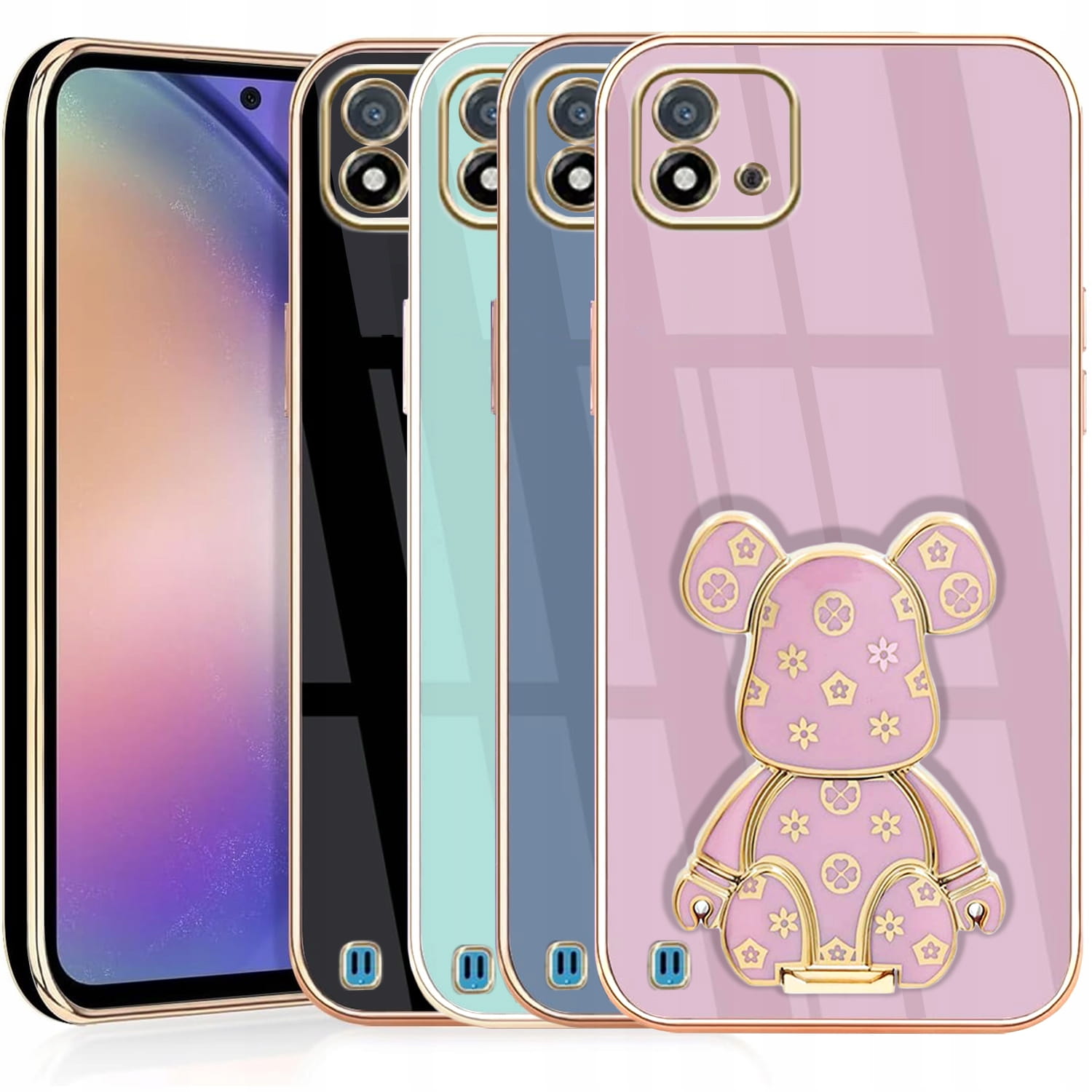 ETUI GLAMOUR DO REALME C11 2021 / C20 MIŚ BEAR UCHWYT SILIKON CASE + SZKŁO