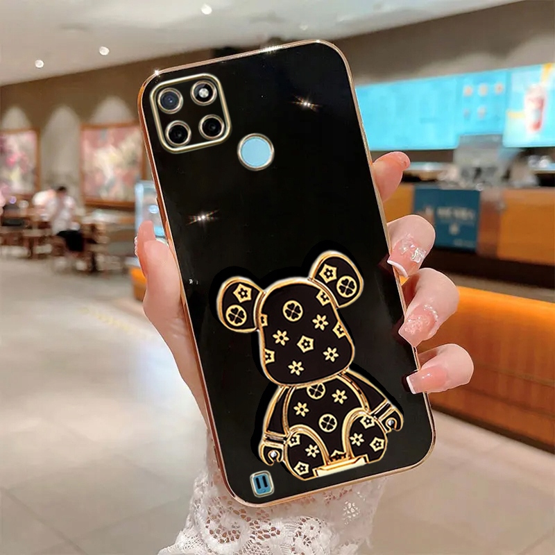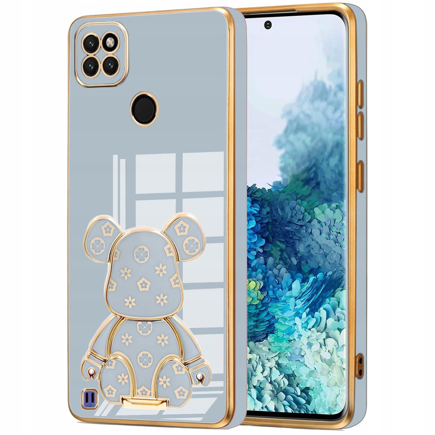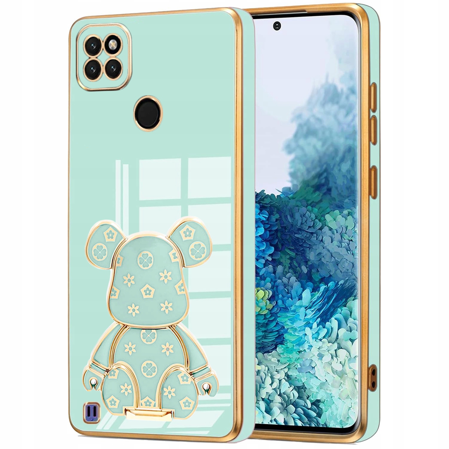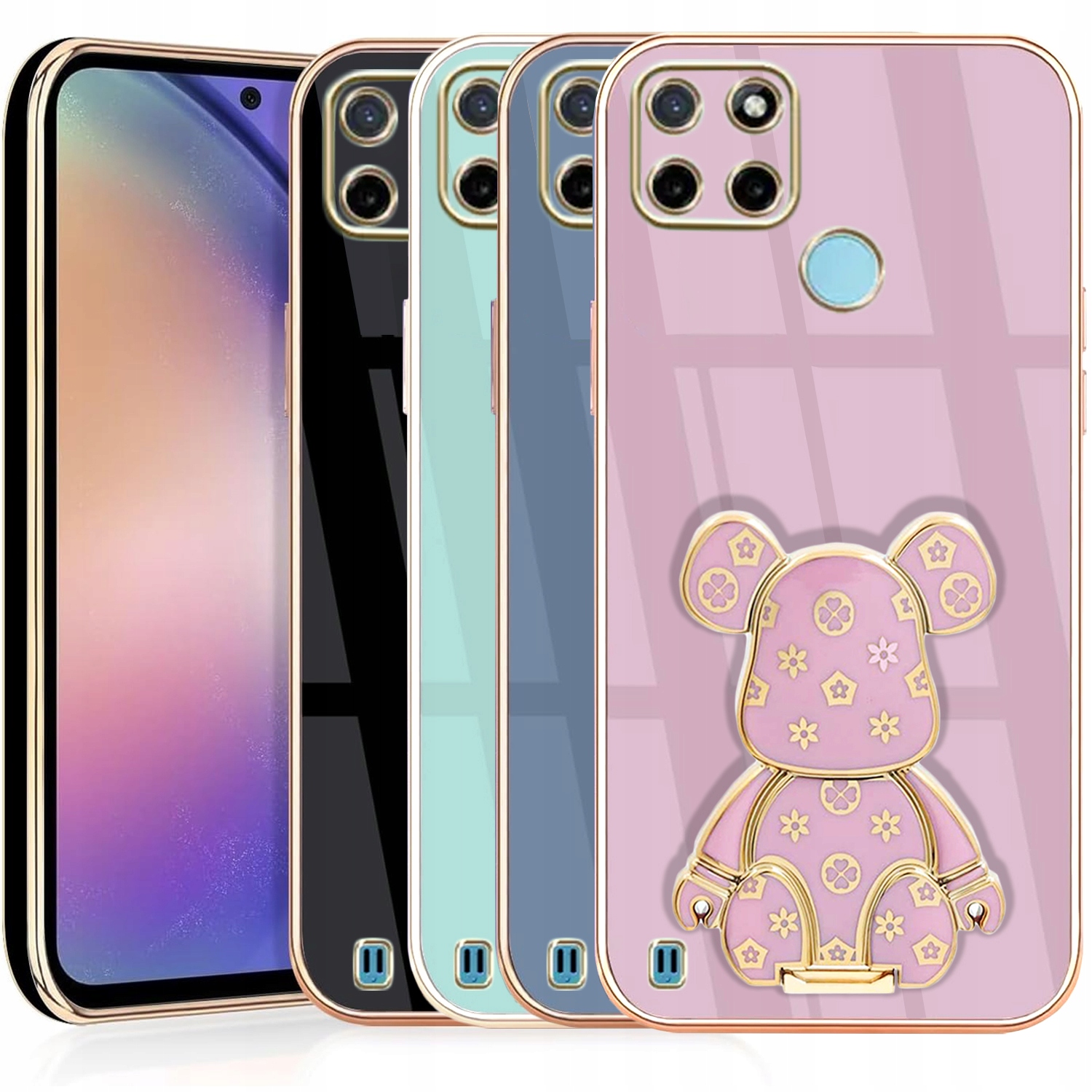 ETUI GLAMOUR DO REALME C21Y / C25Y MIŚ BEAR UCHWYT SILIKON CASE + SZKŁO