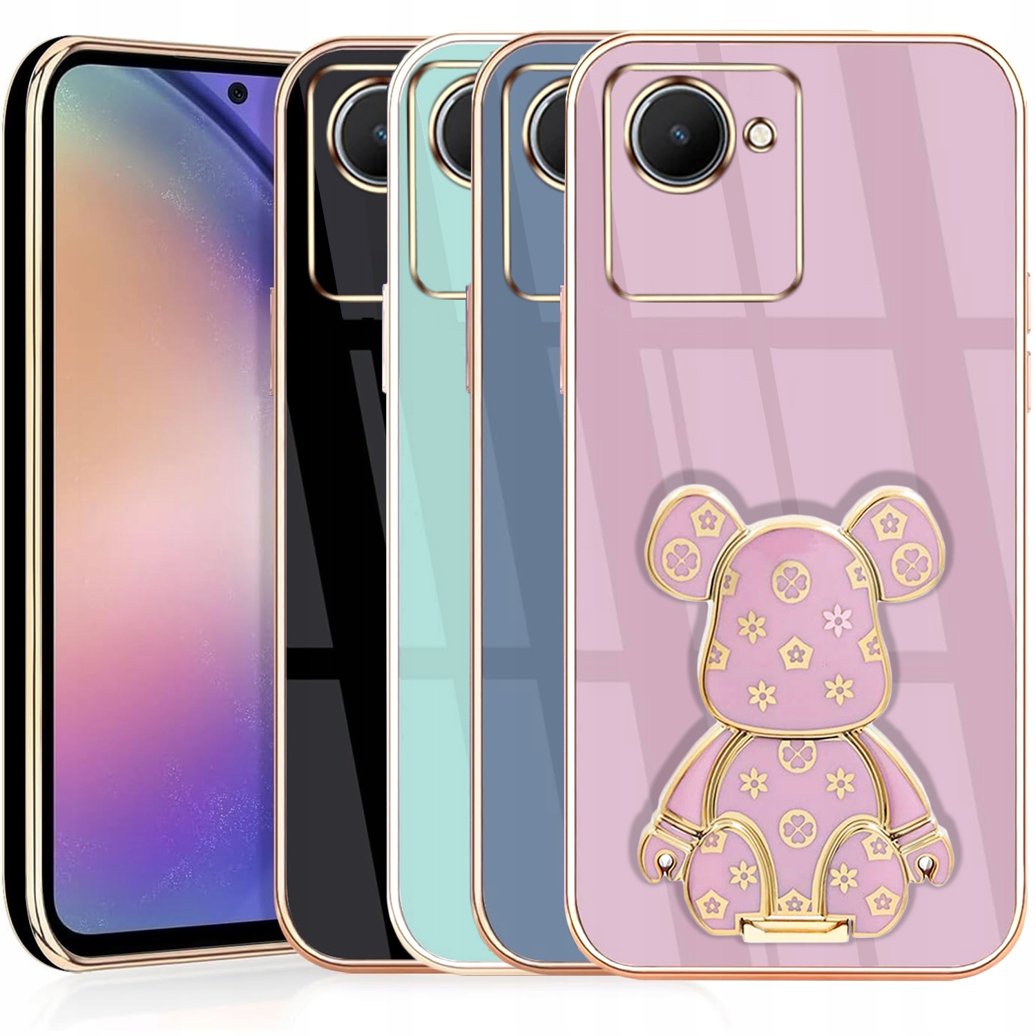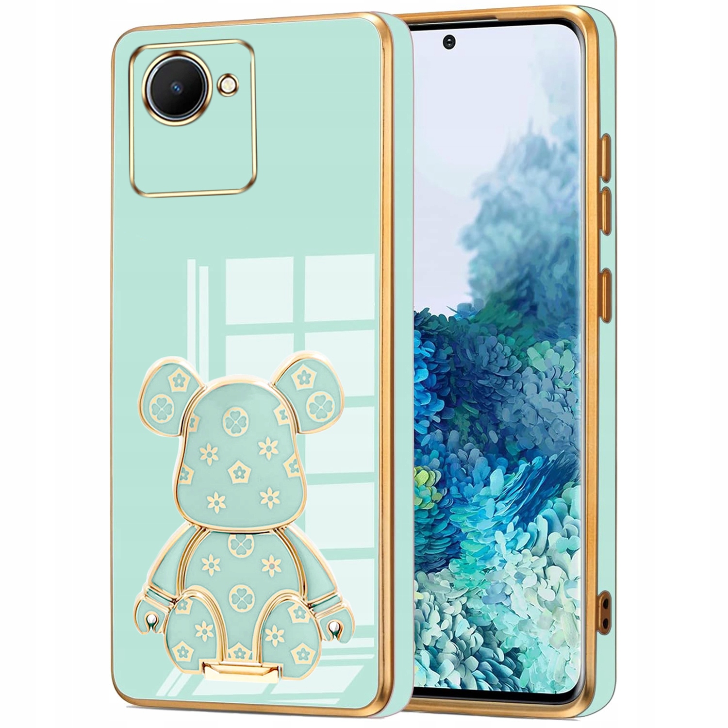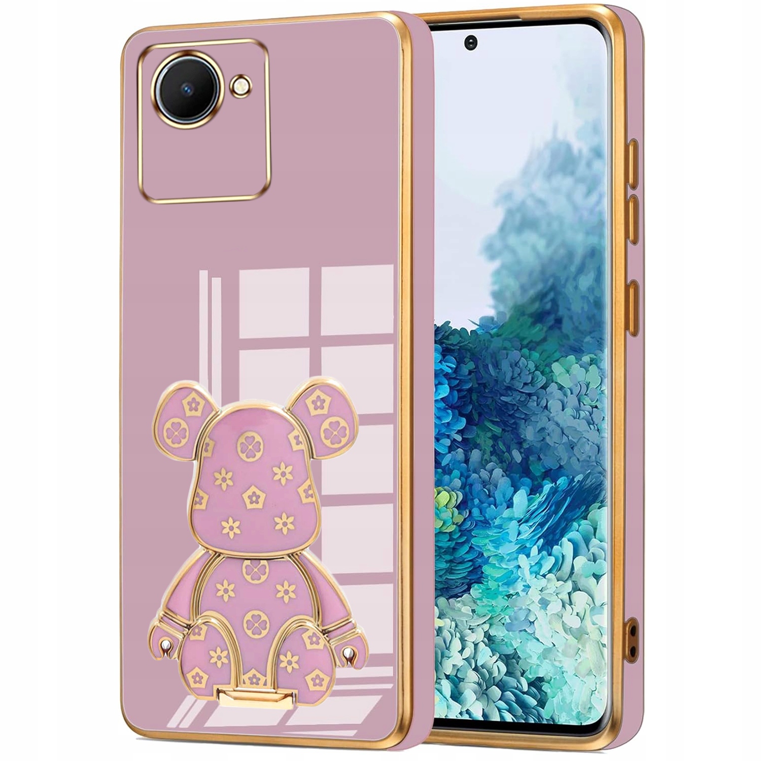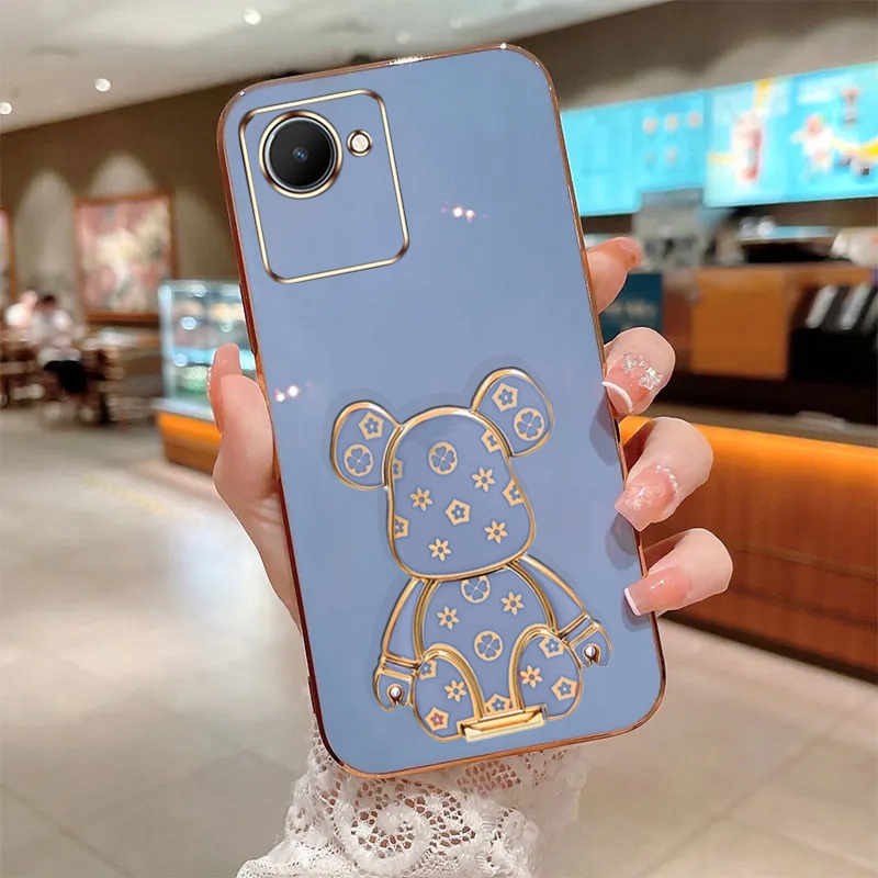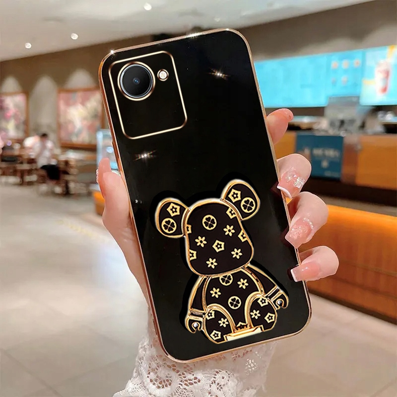 ETUI GLAMOUR DO REALME C30 MIŚ UCHWYT PODSTAWKA BEAR SILIKON CASE + SZKŁO