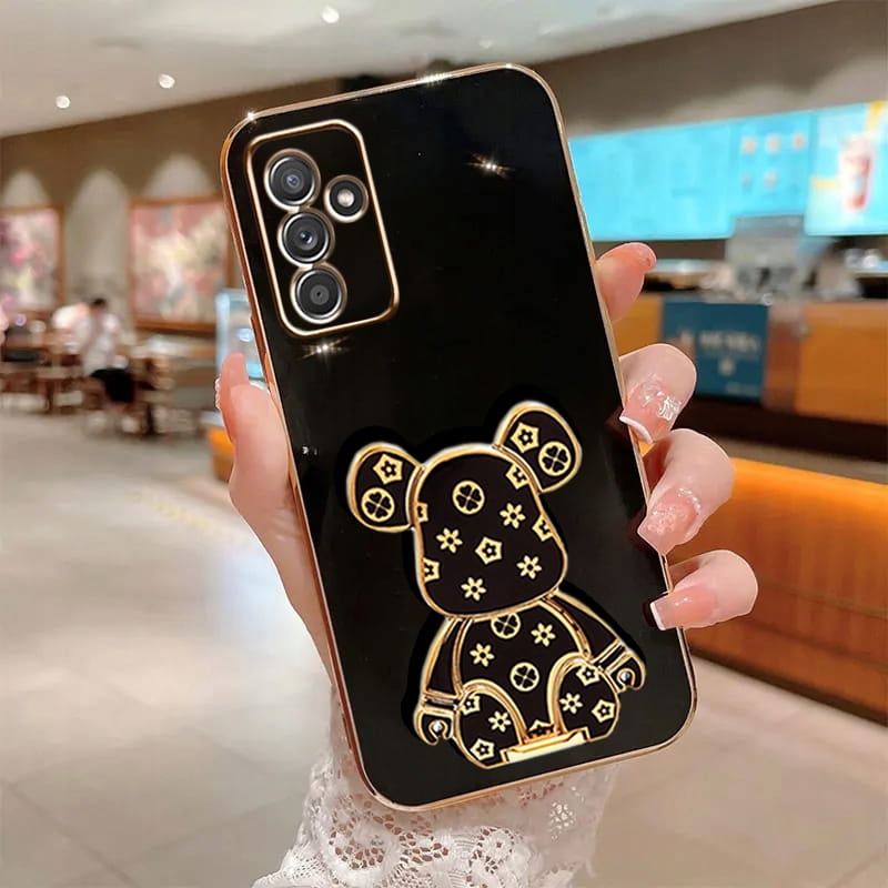 ETUI GLAMOUR DO SAMSUNG A05S MIŚ UCHWYT PODSTAWKA BEAR SILIKON + SZKŁO