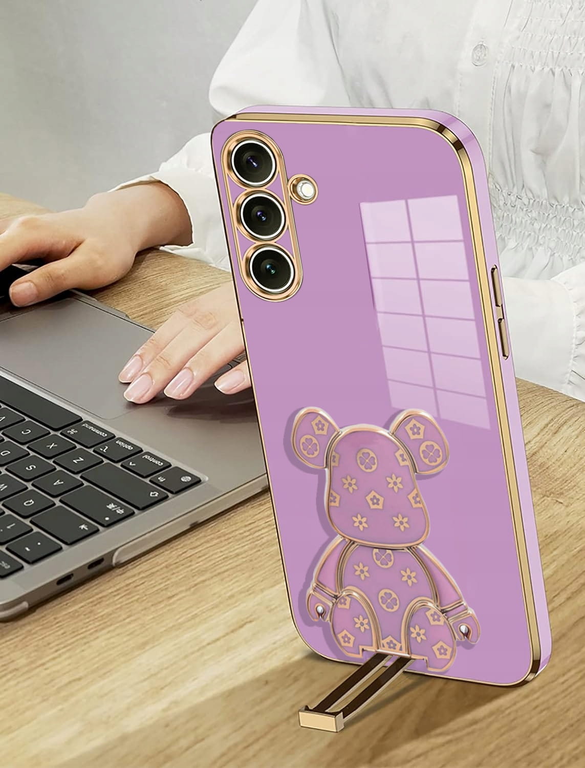 ETUI GLAMOUR DO SAMSUNG A14 / A14 5G MIŚ UCHWYT PODSTAWKA SILIKON + SZKŁO