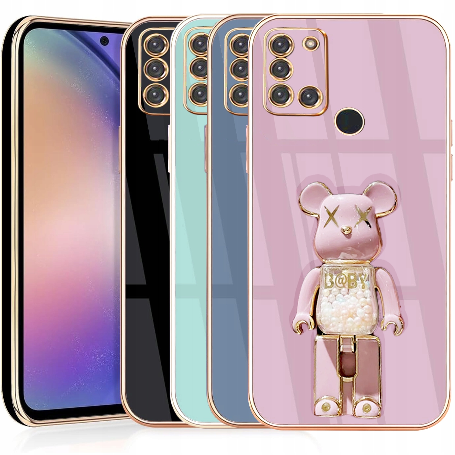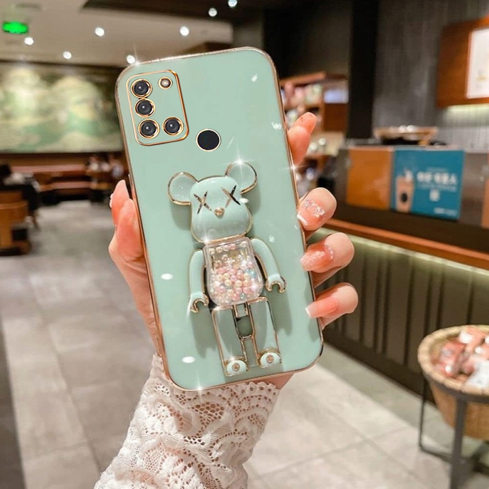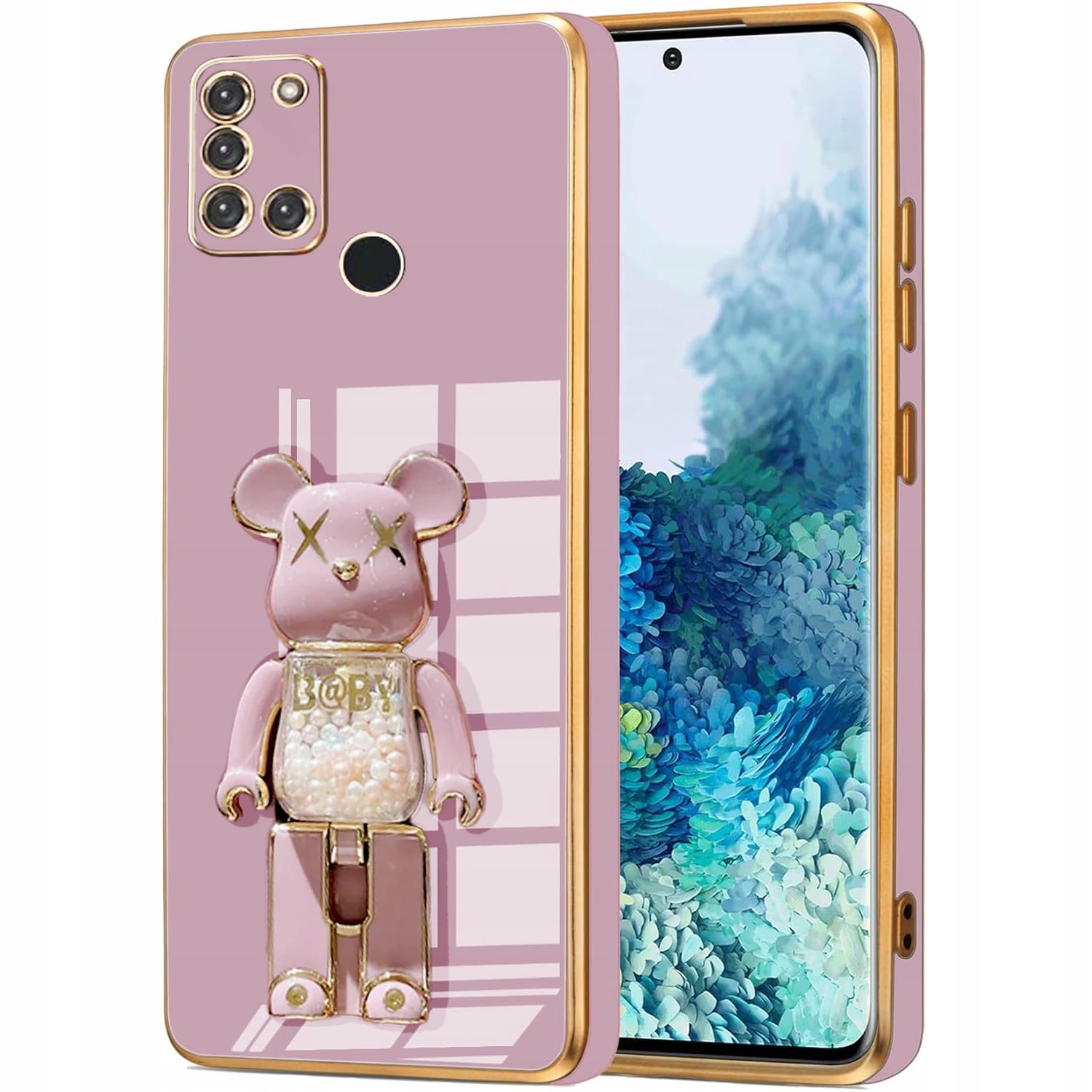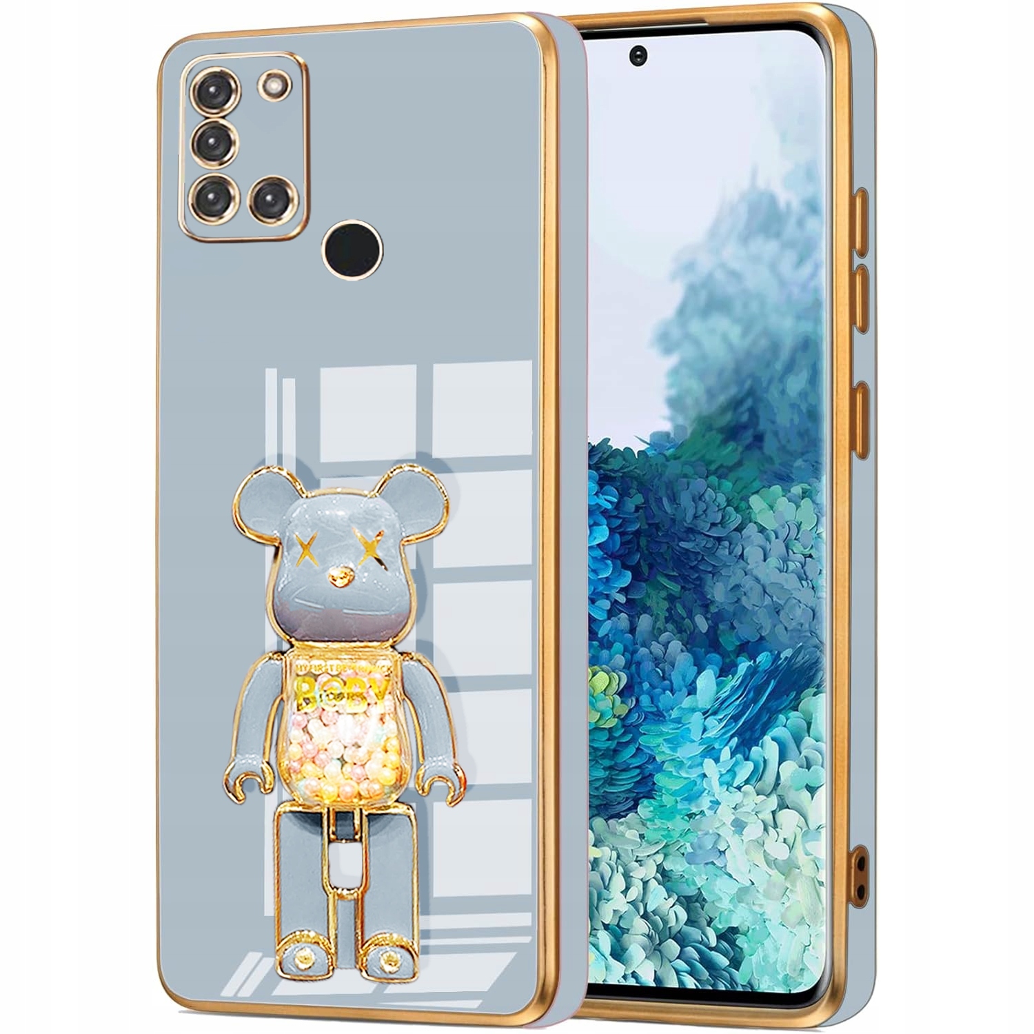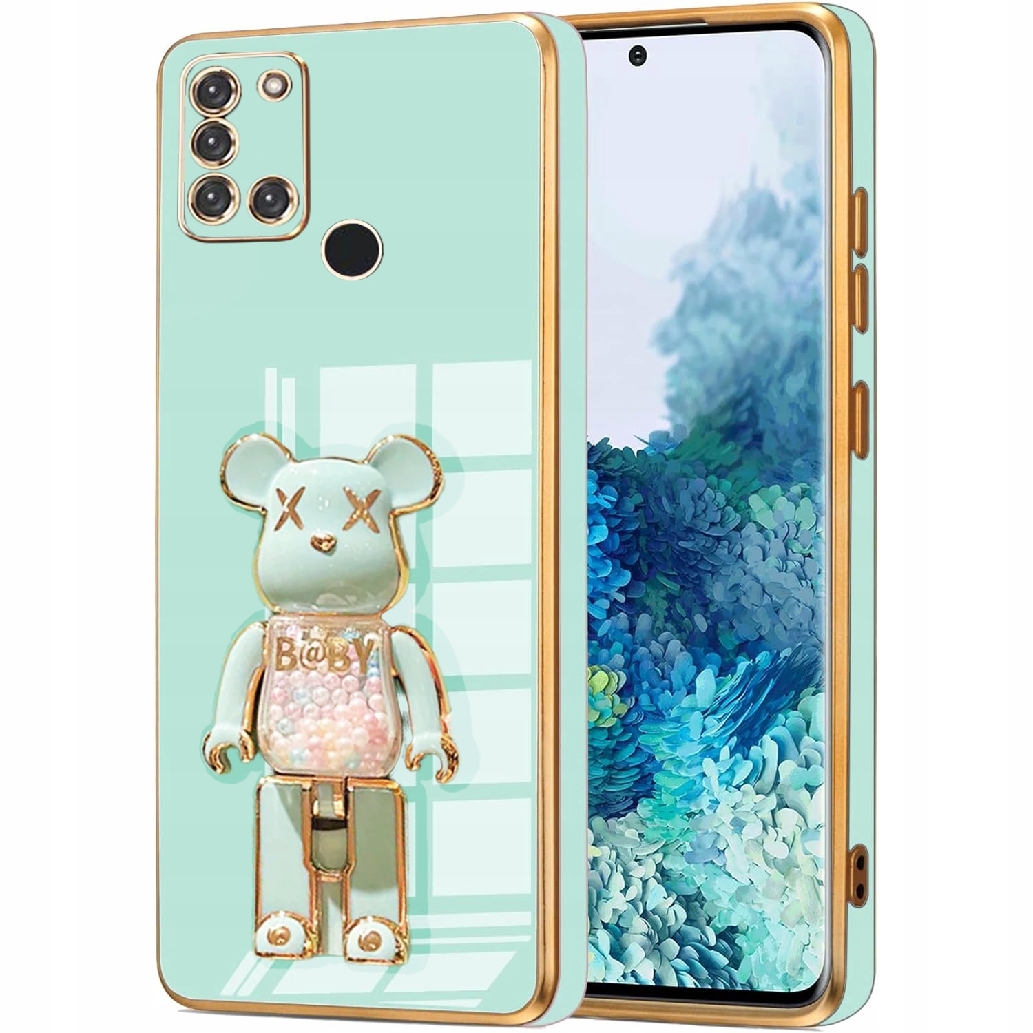 ETUI GLAMOUR DO SAMSUNG A21S BEAR UCHWYT PODSTAWKA MIŚ CASE SILIKON + SZKŁO