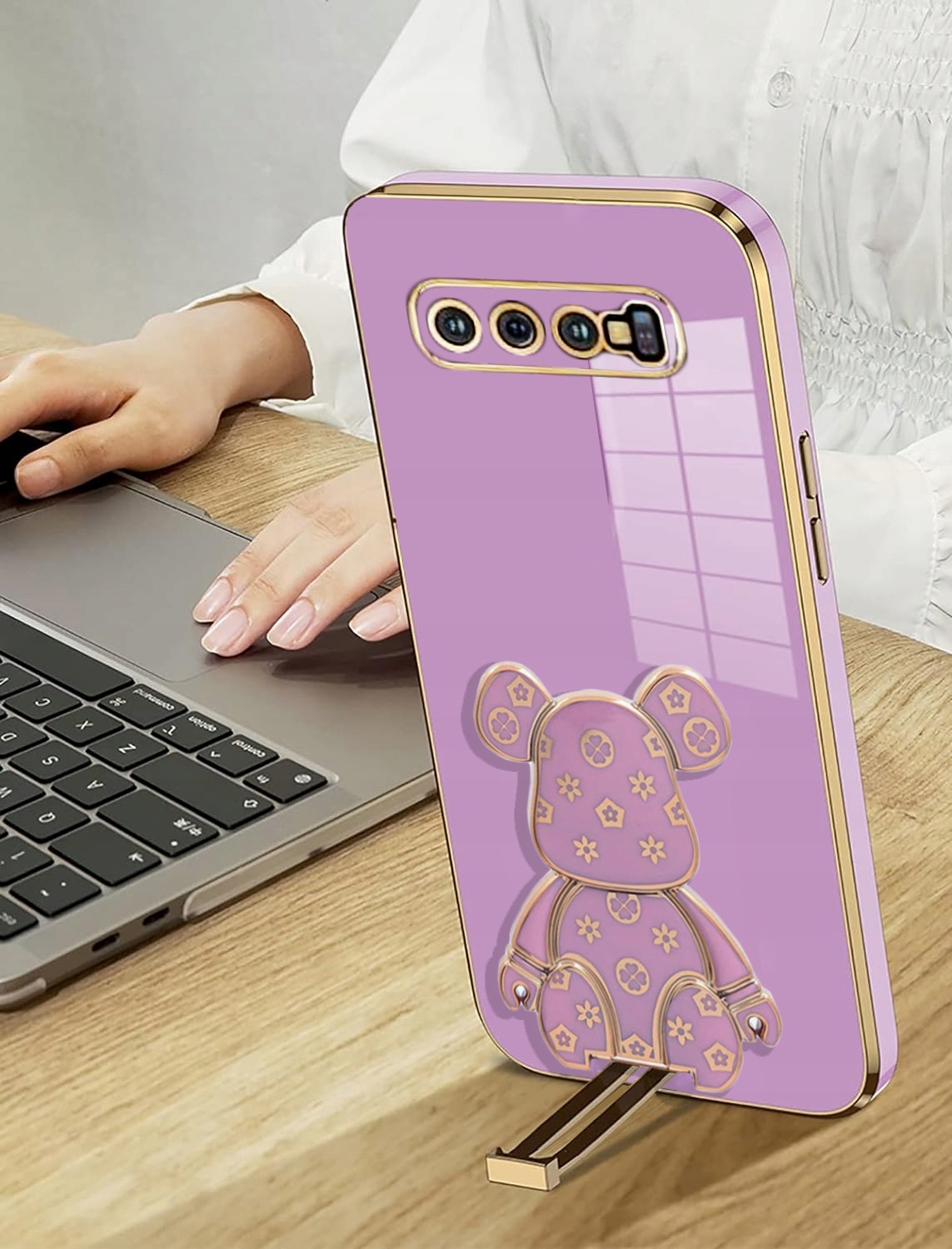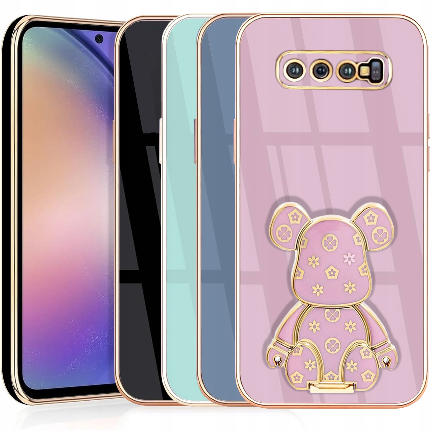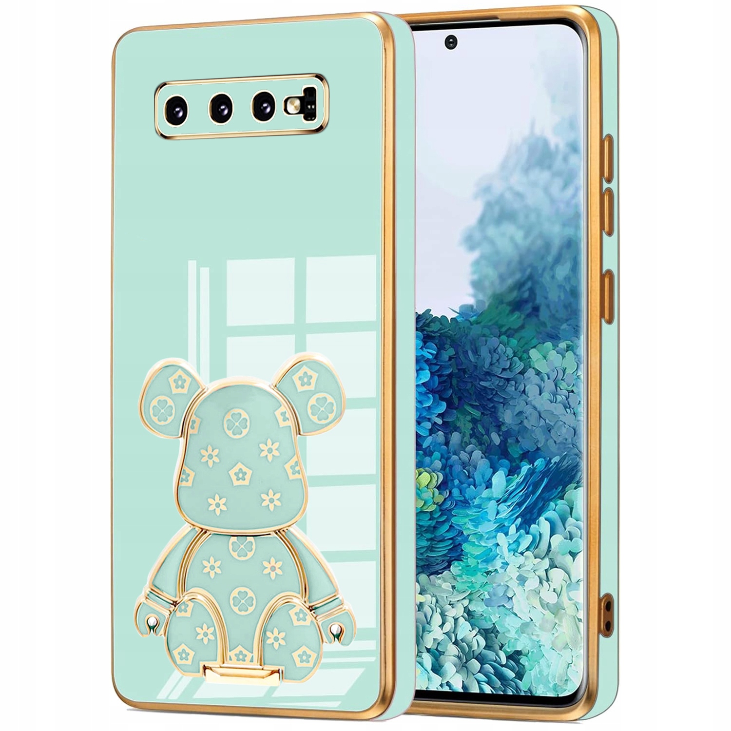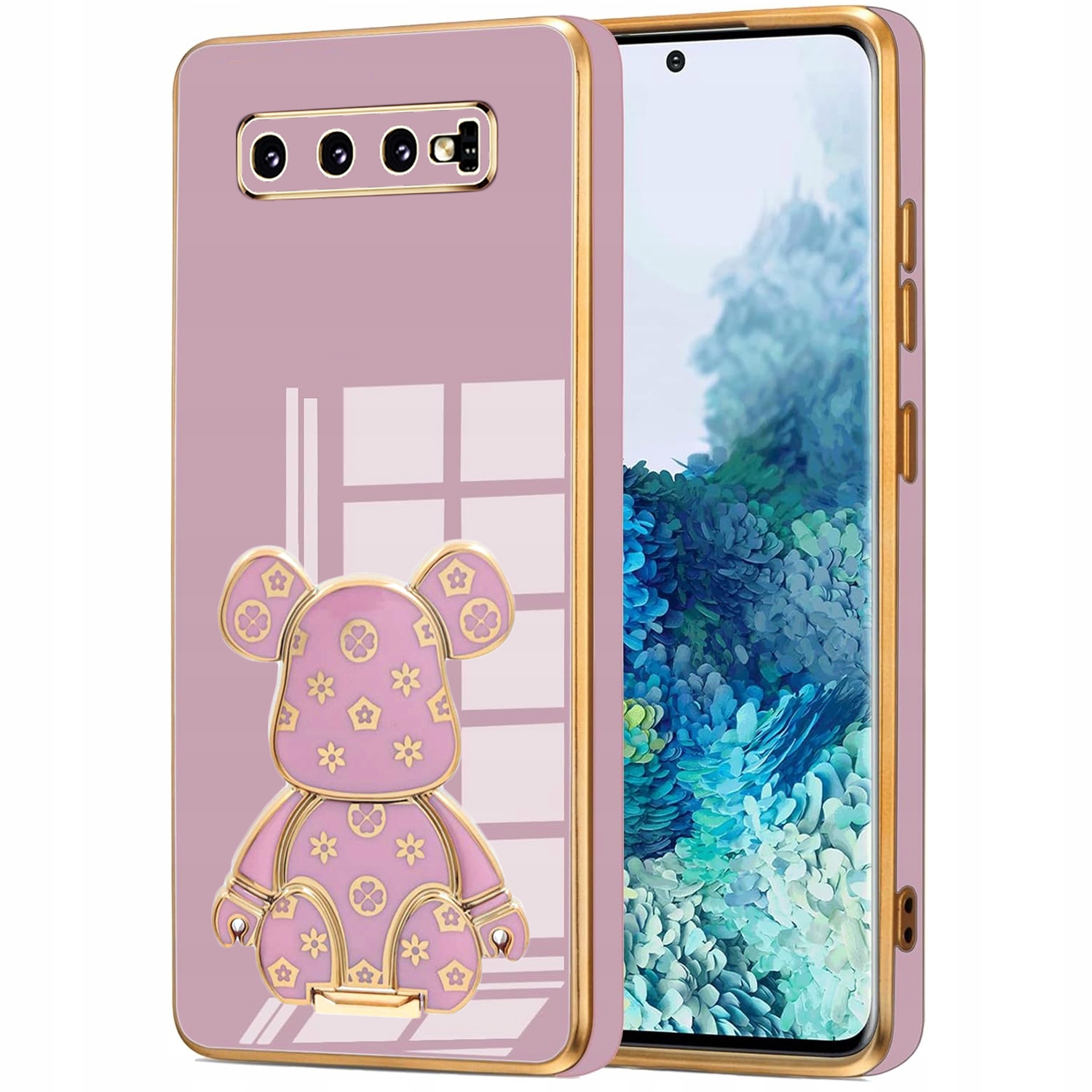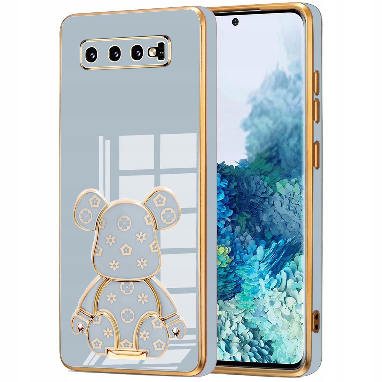 ETUI GLAMOUR DO SAMSUNG S10 MIŚ UCHWYT PODSTAWKA BEAR CASE SILIKON + FOLIA