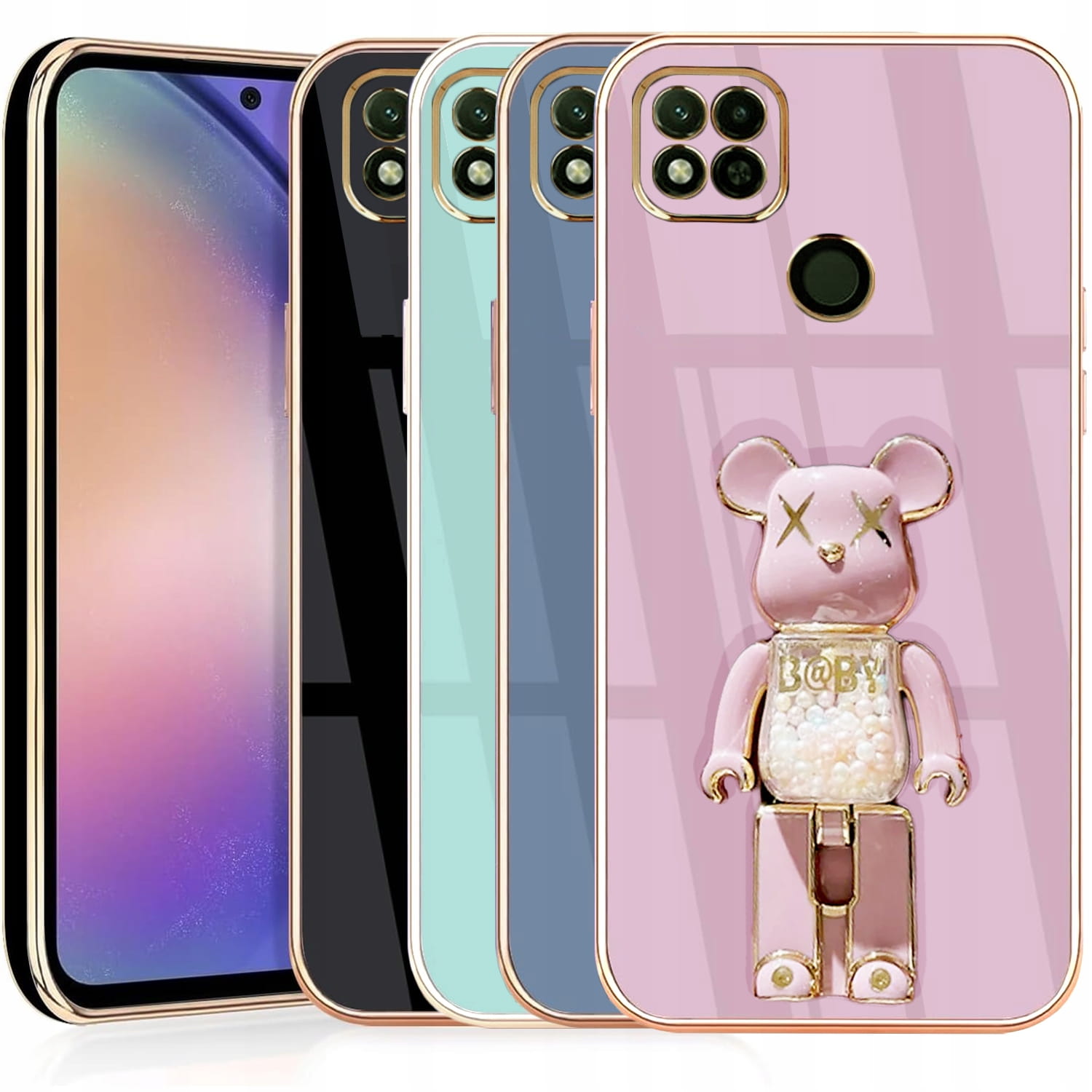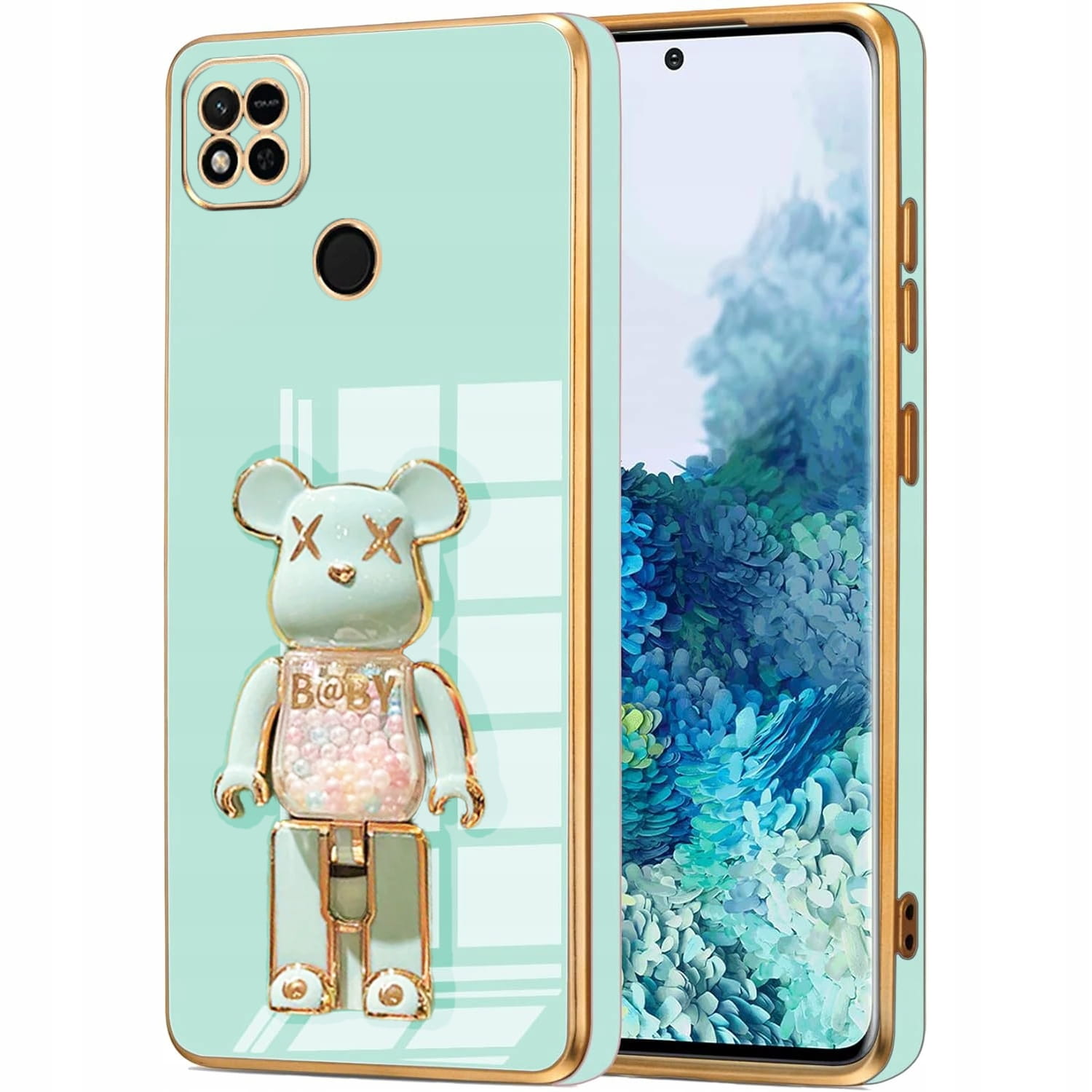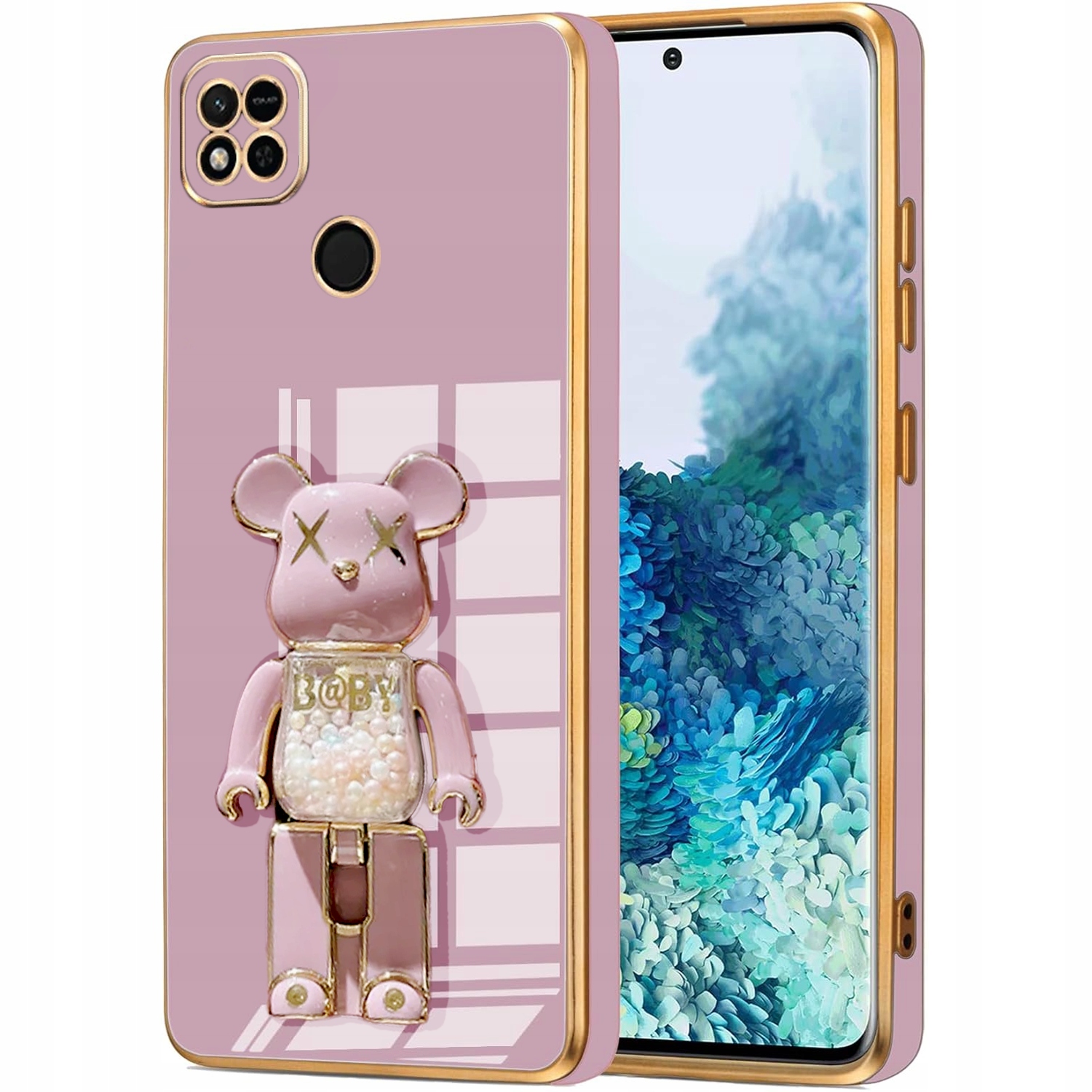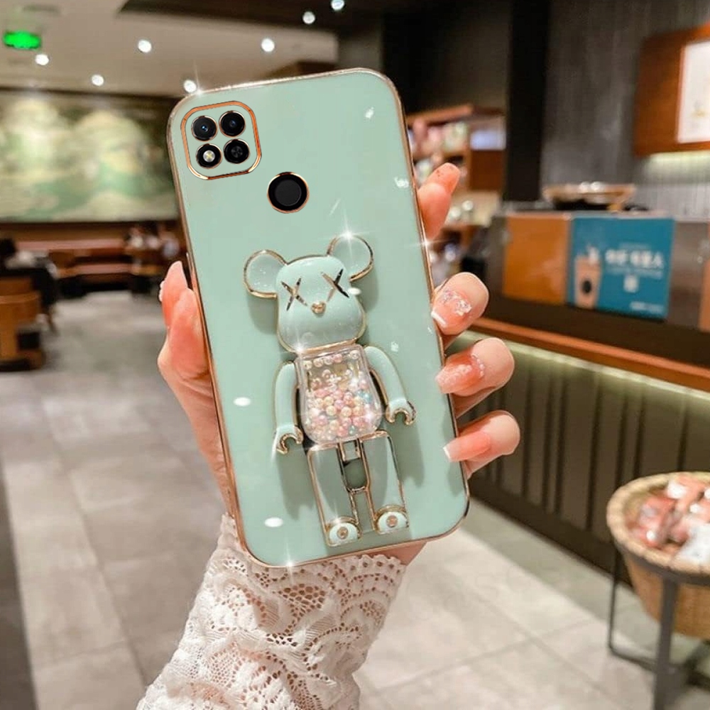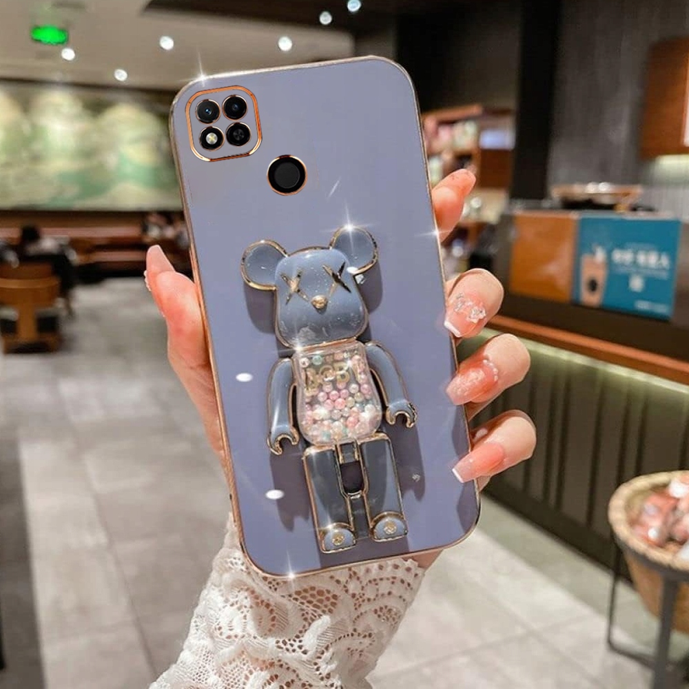 ETUI GLAMOUR DO XIAOMI REDMI 9C BEAR UCHWYT PODSTAWKA MIŚ SILIKON + SZKŁO