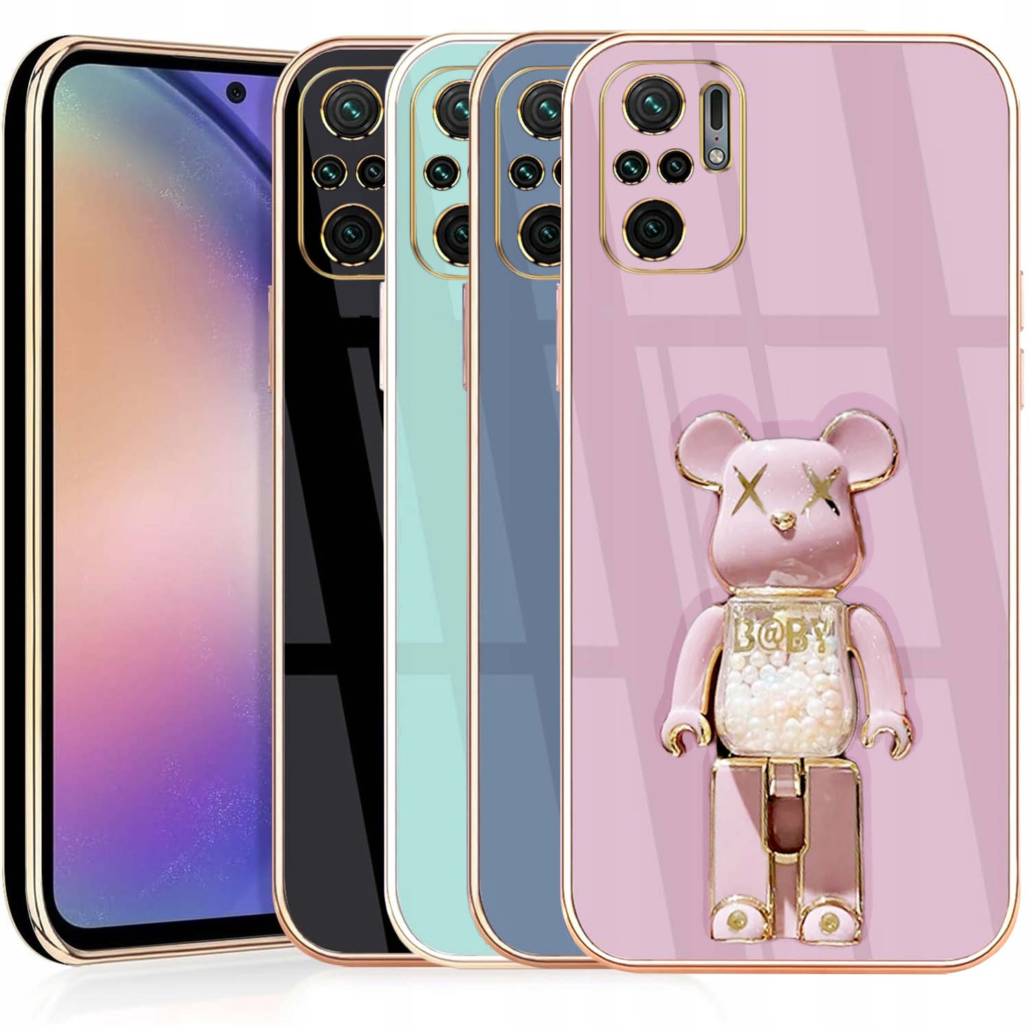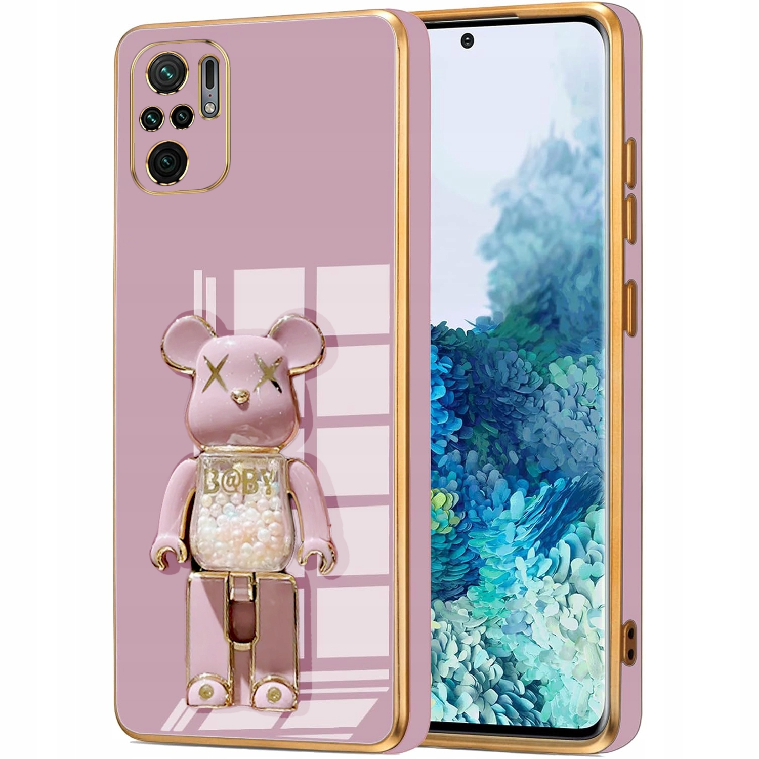 ETUI GLAMOUR DO XIAOMI REDMI NOTE 10 / 10S BEAR UCHWYT MIŚ SILIKON + SZKŁO