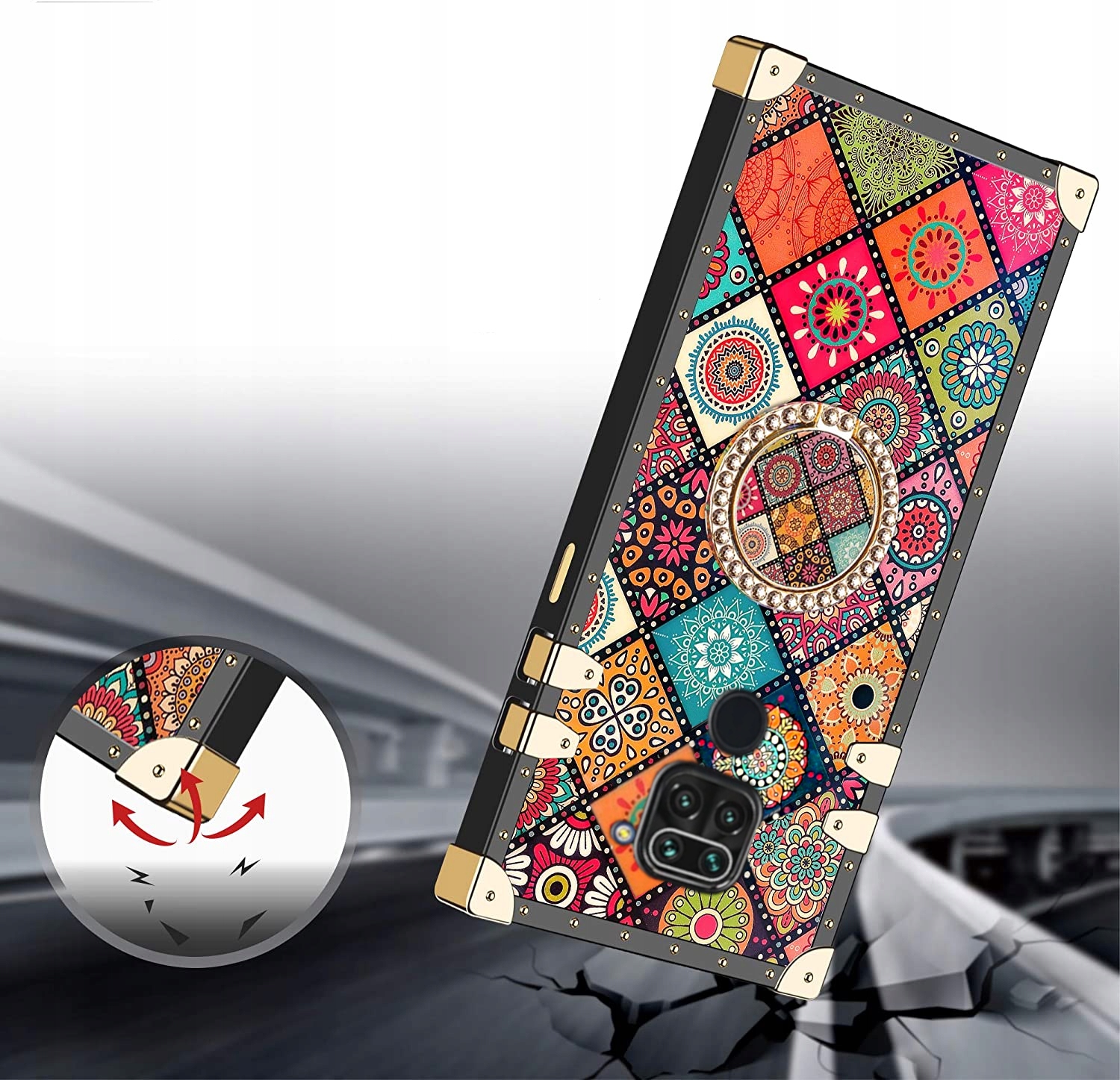 ETUI GLAMOUR DO XIAOMI REDMI NOTE 9 RING + SZKŁO