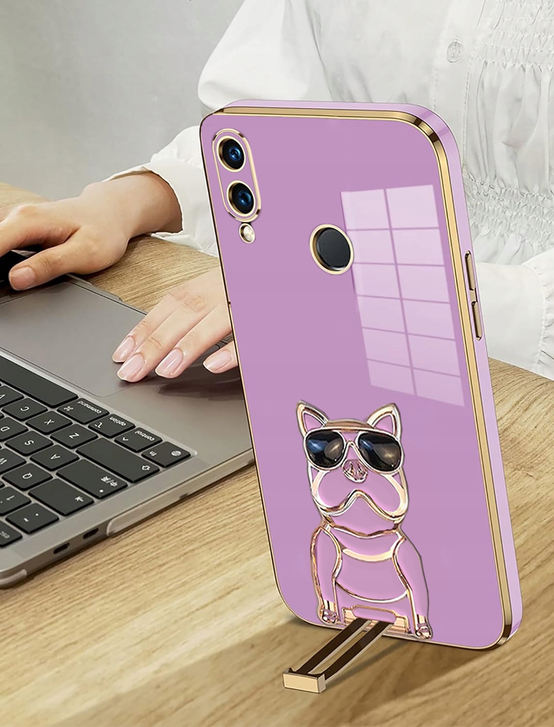 ETUI GLAMOUR DOG 6D DO HUAWEI P SMART 2019 UCHWYT PODSTAWKA OCHRONA + SZKŁO
