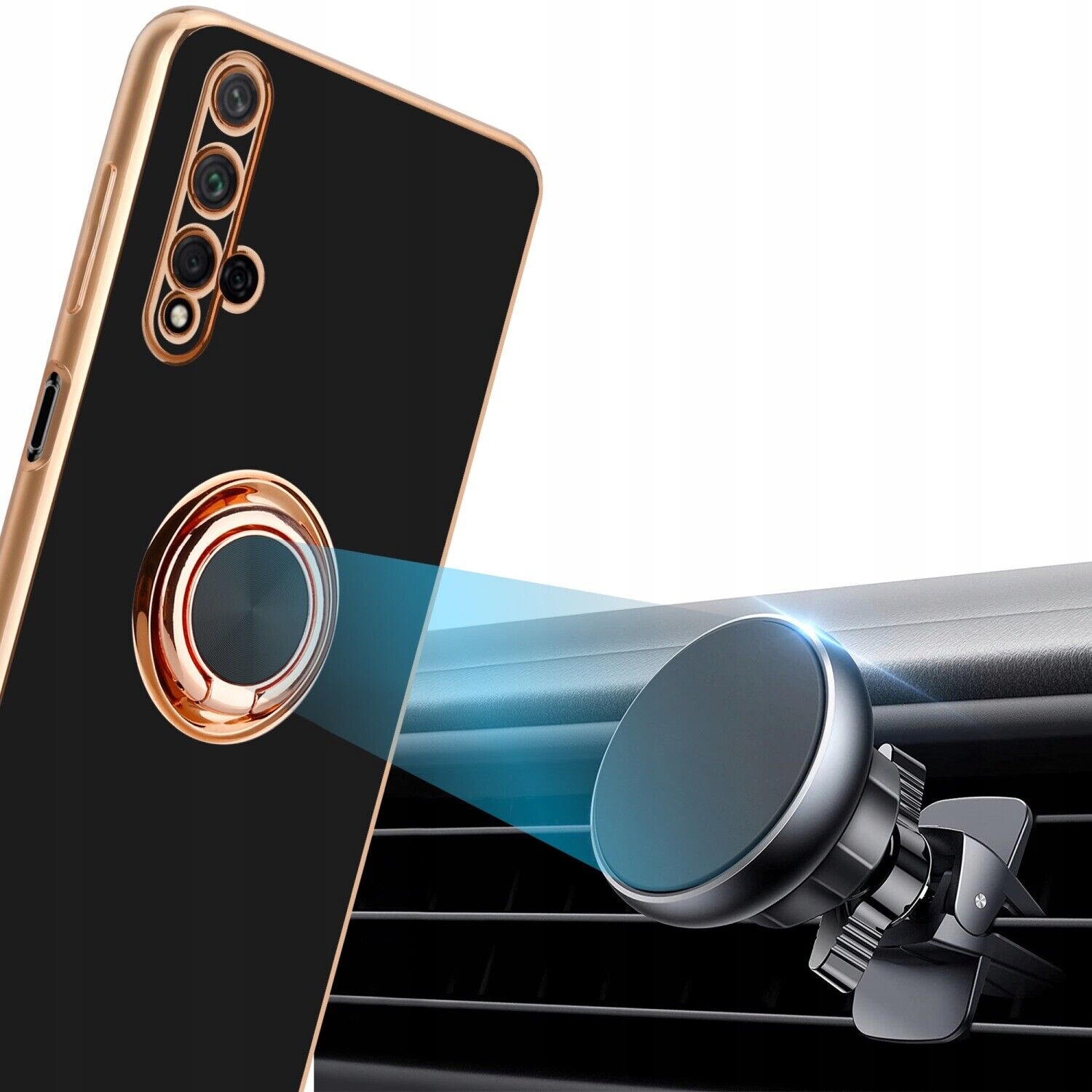 - Magnetyczny ring można bezpośrednio przymocować na magnetycznym uchwycie samochodowym, zapewniając bezproblemową jazdę.