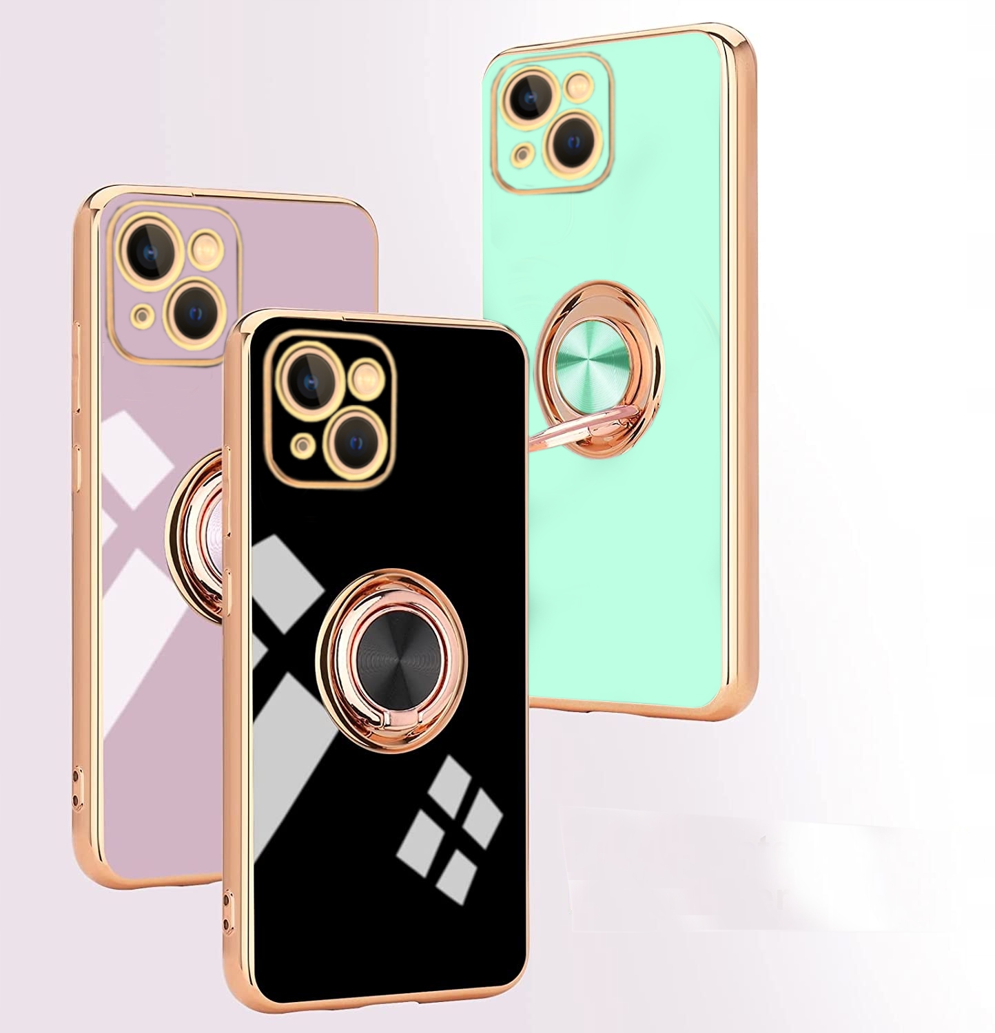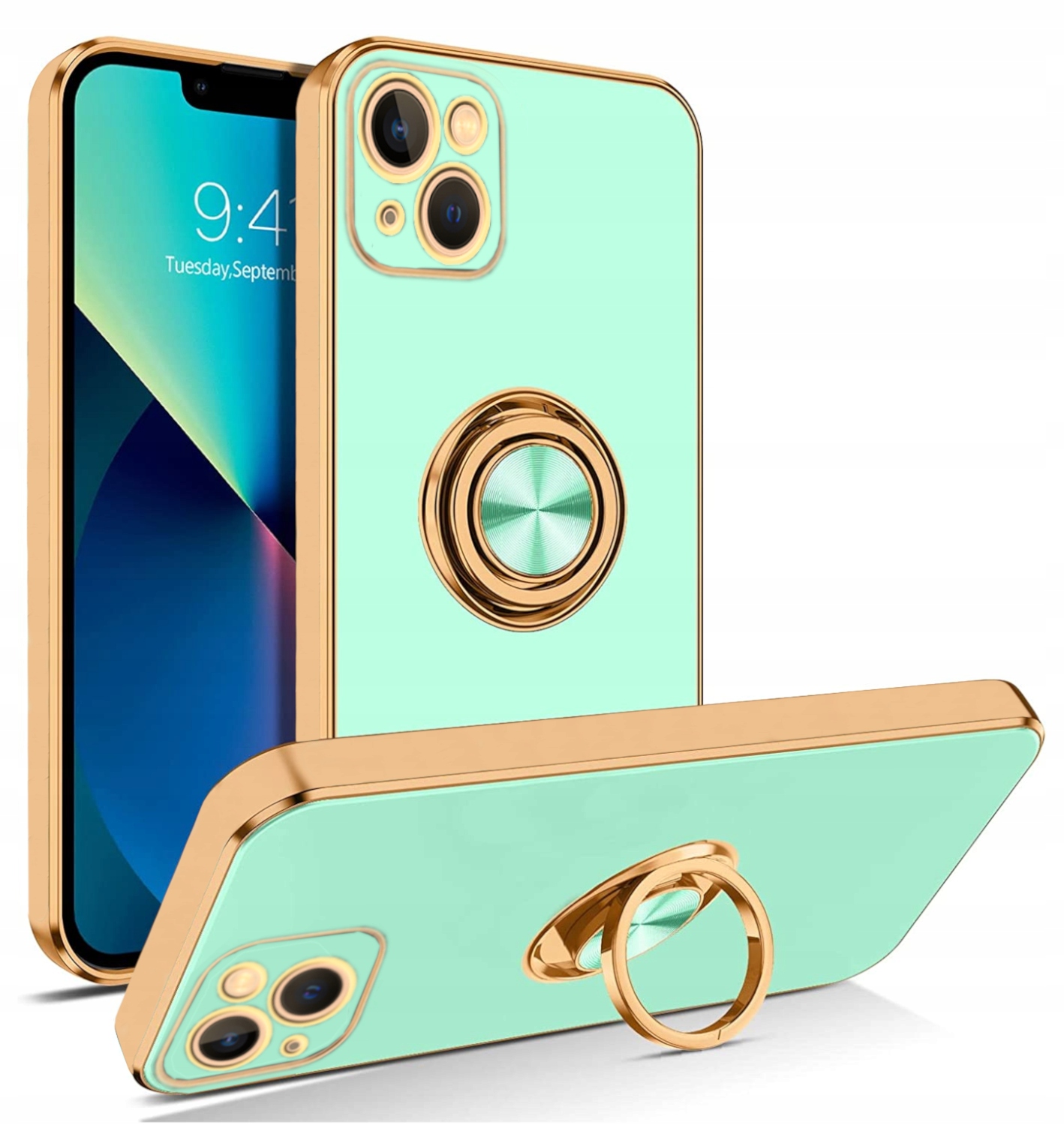 Silikonowa obudowa jest wykonana z cienkich materiałów przyjaznych dla środowiska. Etui jest gładkie w dotyku, błyszczący wzór powierzchni i złote krawędzie nadają telefonowi inny wygląd i zapewniają pełną ochronę telefonu. Wbudowany pierścień obrotowy 360° pełni funkcje podstawki, uchwytu i pomocy podczas robienia selfie. Odporne na wstrząsy, skutecznie amortyzuje uderzenia spadającego telefonu.
