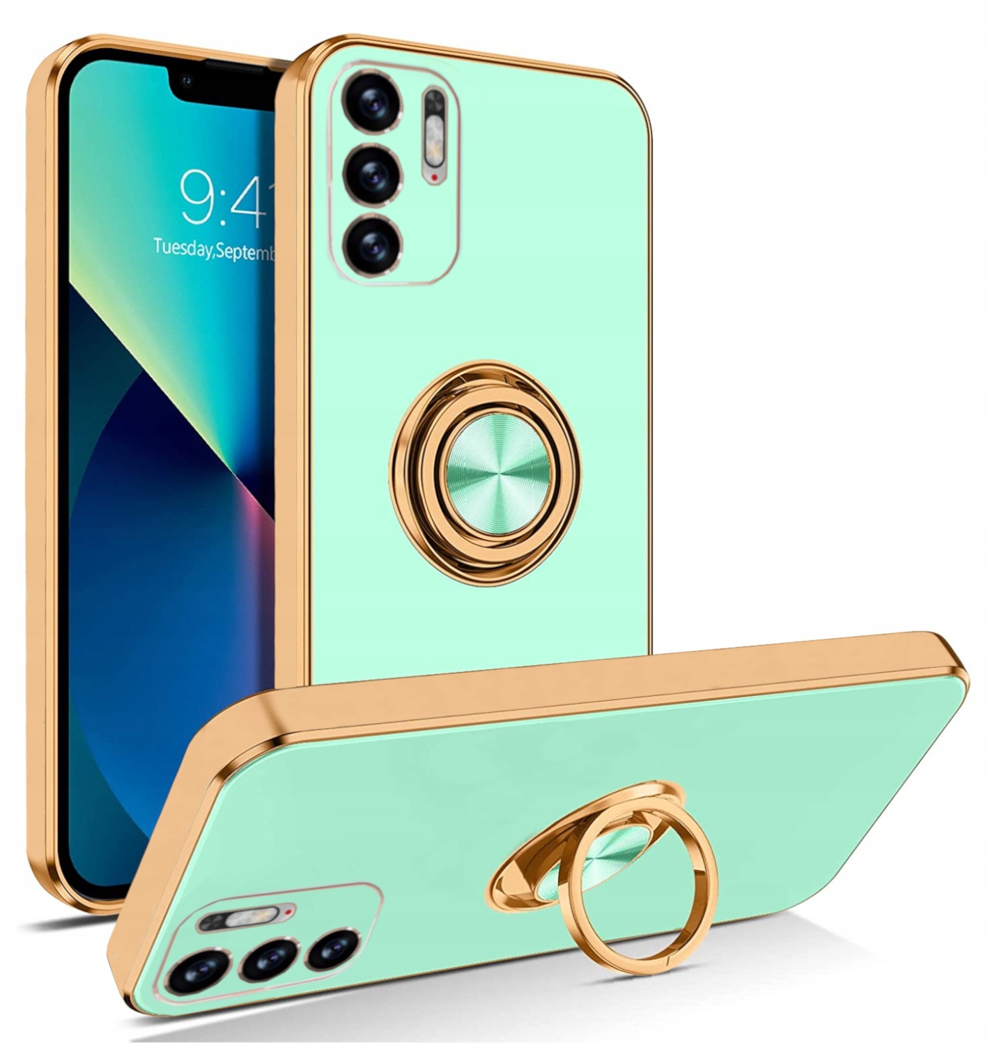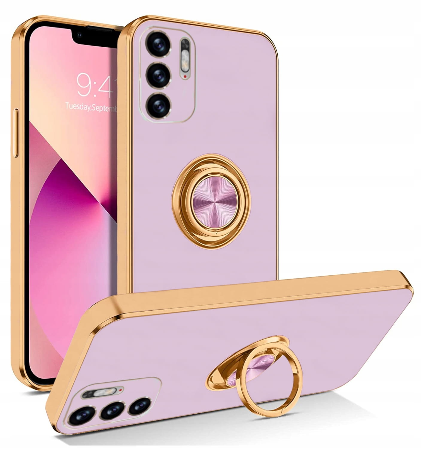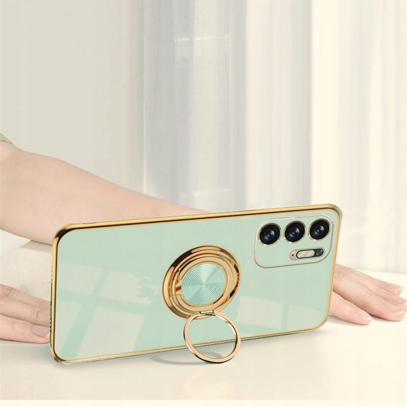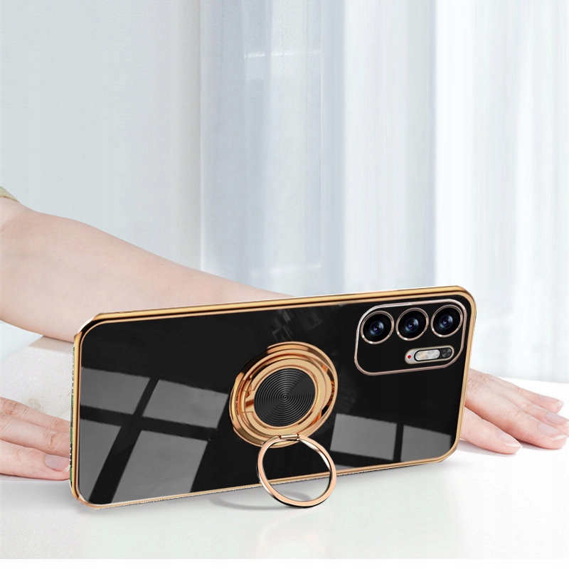 Silikonowa obudowa jest wykonana z cienkich materiałów przyjaznych dla środowiska. Etui jest gładkie w dotyku, błyszczący wzór powierzchni i złote krawędzie nadają telefonowi inny wygląd i zapewniają pełną ochronę telefonu. Wbudowany pierścień obrotowy 360° pełni funkcje podstawki, uchwytu i pomocy podczas robienia selfie. Odporne na wstrząsy, skutecznie amortyzuje uderzenia spadającego telefonu.