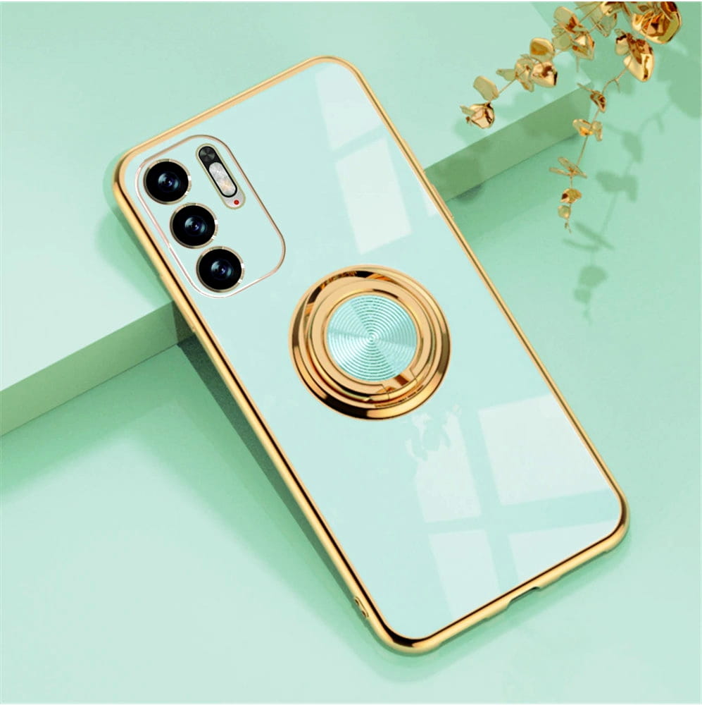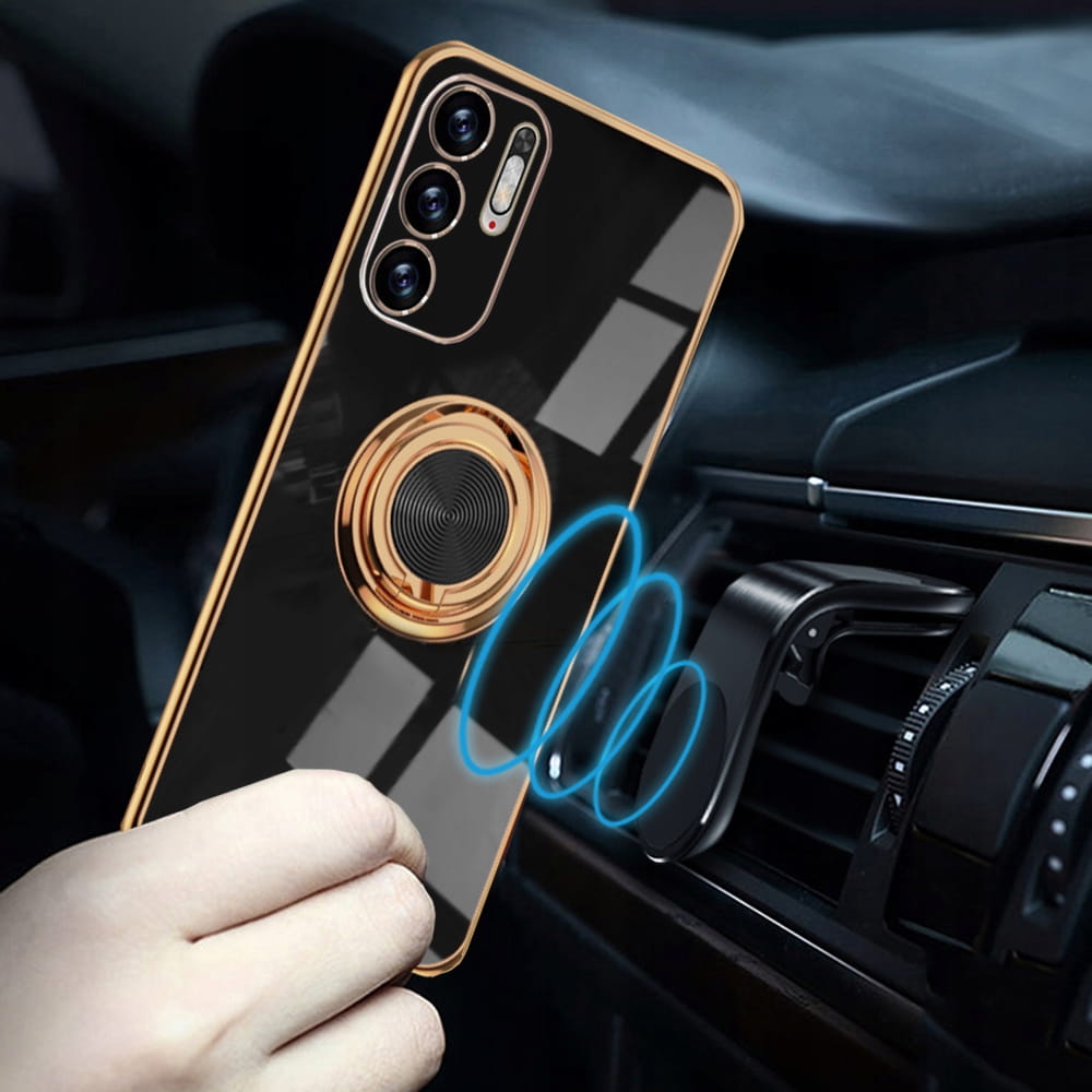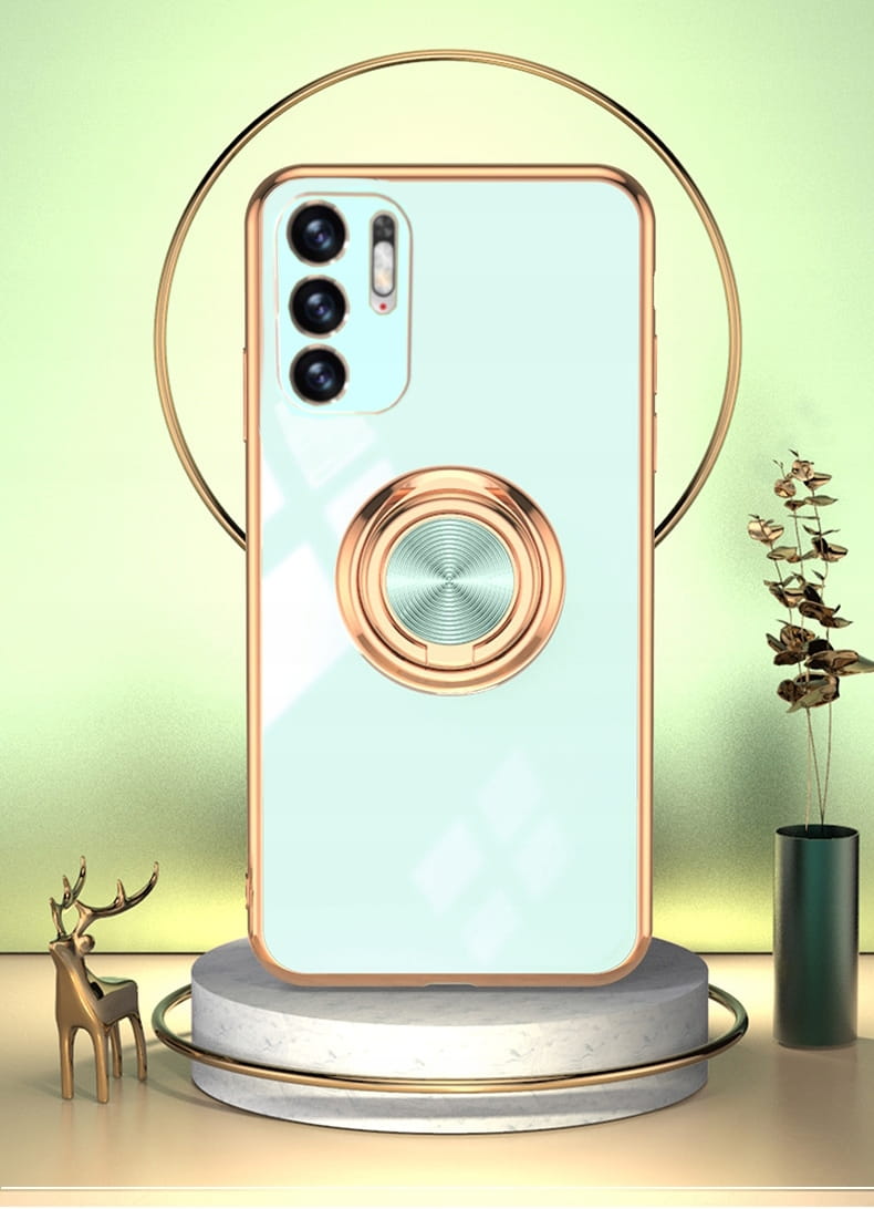 Silikonowa obudowa jest wykonana z cienkich materiałów przyjaznych dla środowiska. Etui jest gładkie w dotyku, błyszczący wzór powierzchni i złote krawędzie nadają telefonowi inny wygląd i zapewniają pełną ochronę telefonu. Wbudowany pierścień obrotowy 360° pełni funkcje podstawki, uchwytu i pomocy podczas robienia selfie. Odporne na wstrząsy, skutecznie amortyzuje uderzenia spadającego telefonu.