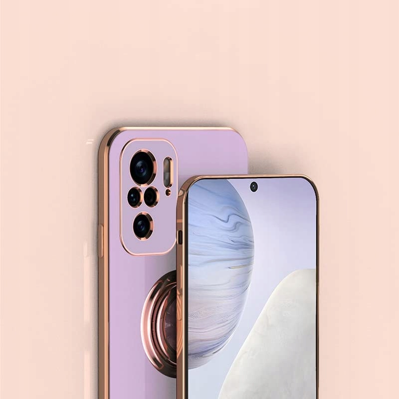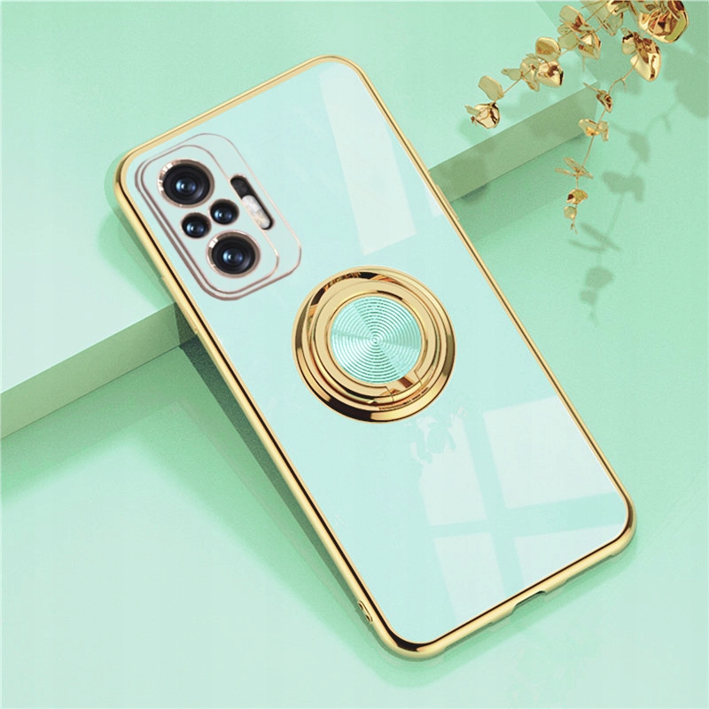 Silikonowa obudowa jest wykonana z cienkich materiałów przyjaznych dla środowiska. Etui jest gładkie w dotyku, błyszczący wzór powierzchni i złote krawędzie nadają telefonowi inny wygląd i zapewniają pełną ochronę telefonu. Wbudowany pierścień obrotowy 360° pełni funkcje podstawki, uchwytu i pomocy podczas robienia selfie. Odporne na wstrząsy, skutecznie amortyzuje uderzenia spadającego telefonu.
