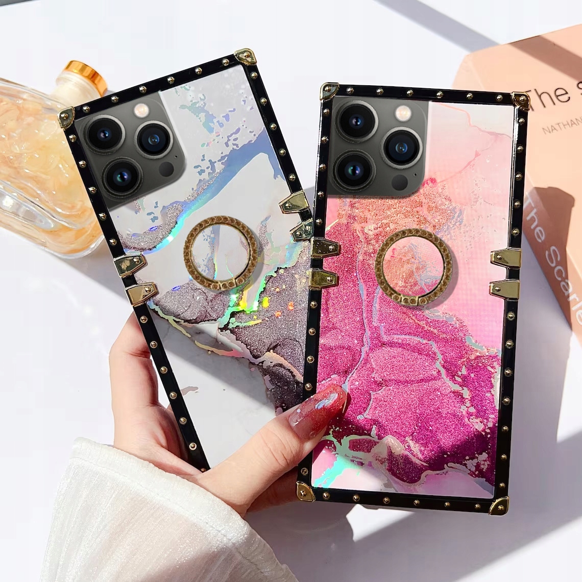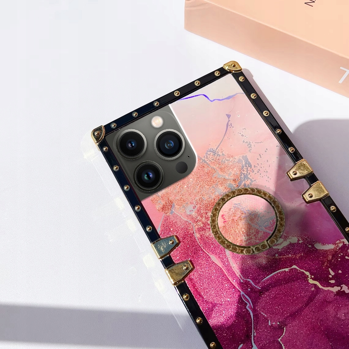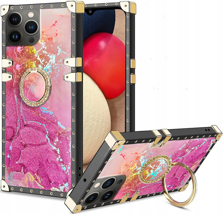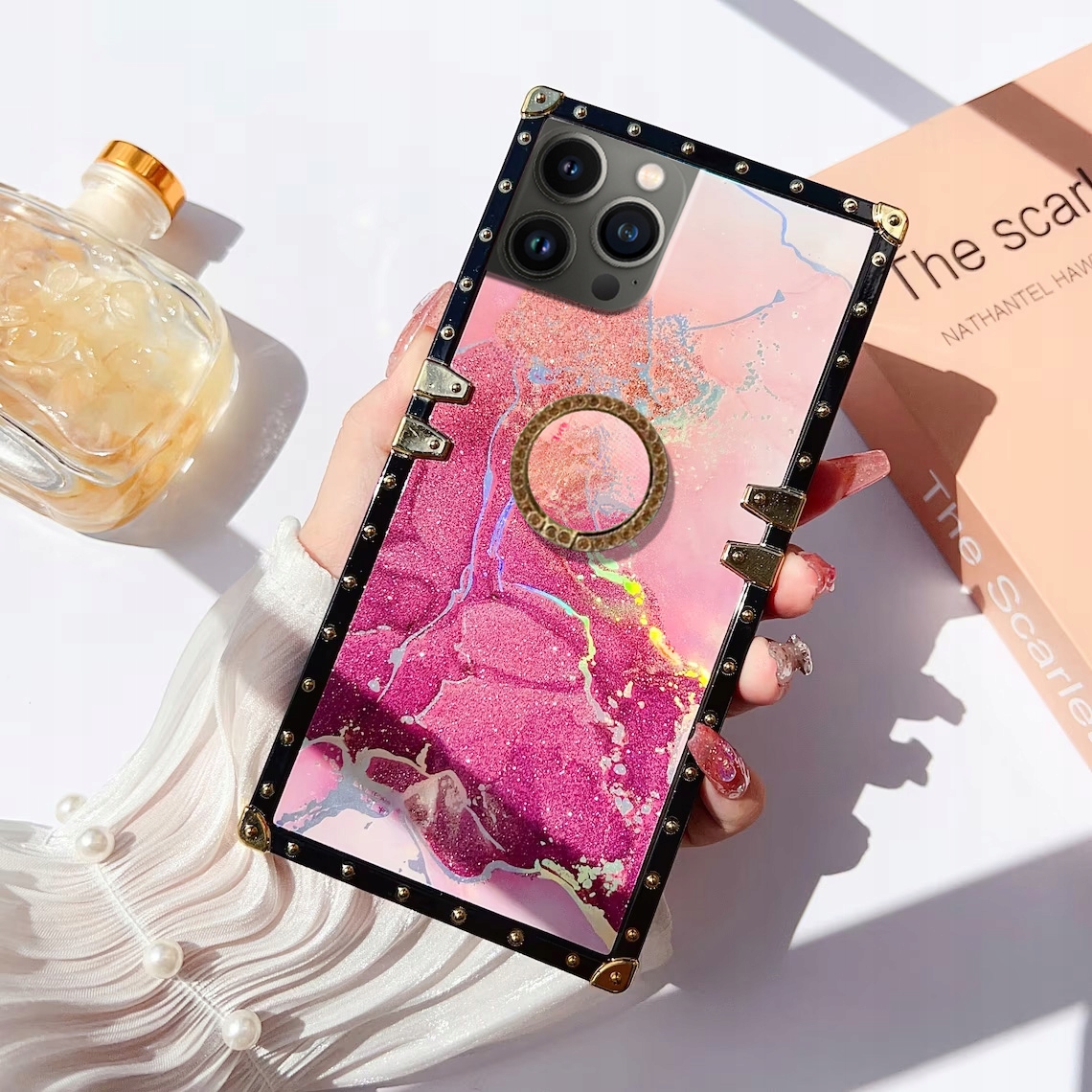 ETUI LUKSUSOWE DO IPHONE 13 PRO GLAMOUR MARMUR BROKAT RING CASE + SZKŁO