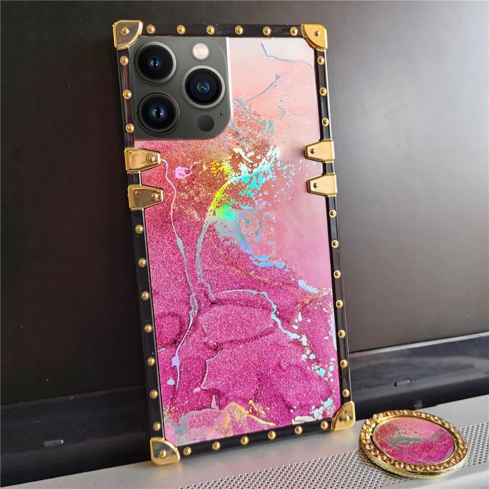 Kwadratowe krawędzie z metalowymi narożnikami sprawiają, że Twój telefon jest wyjątkowy, lśniący i przyciągający wzrok.