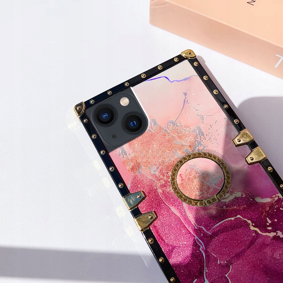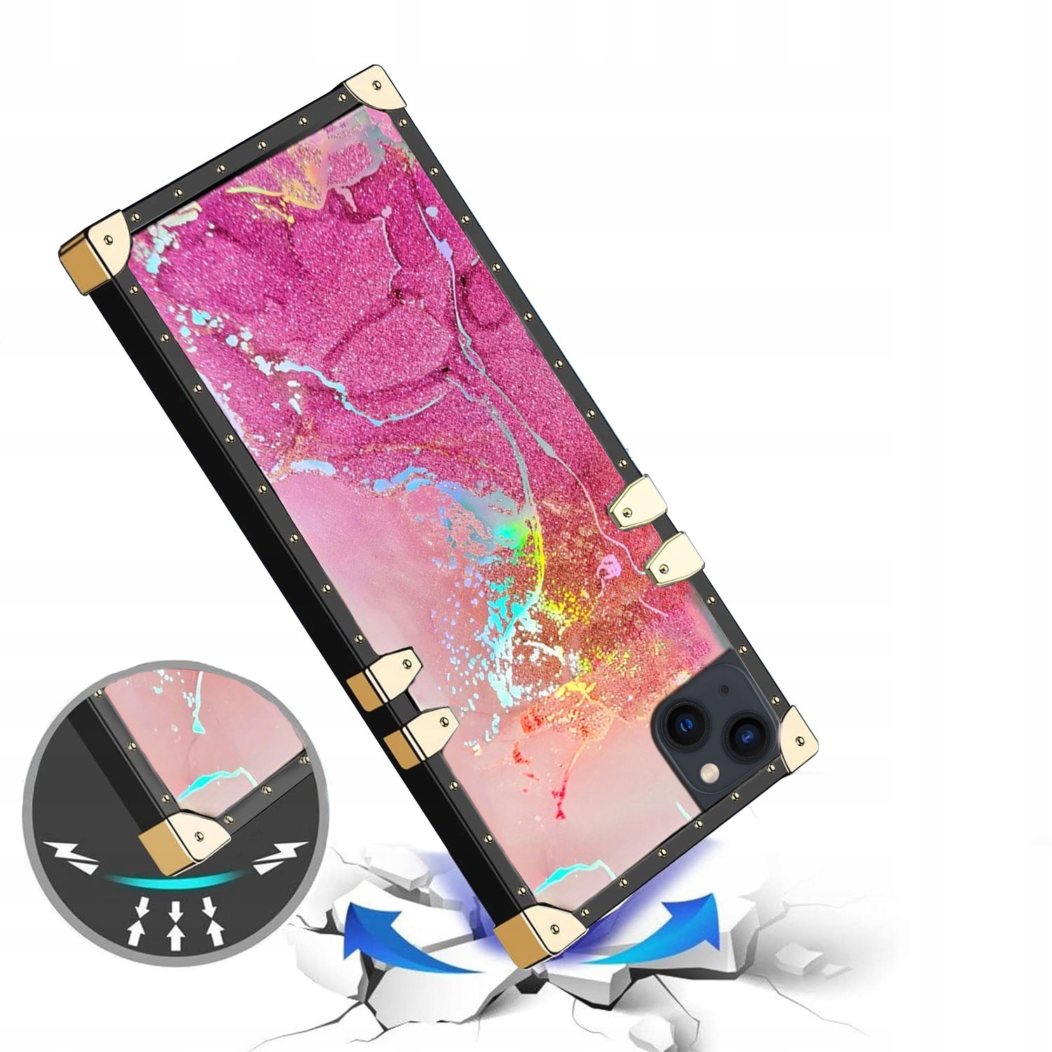 Kwadratowe krawędzie z metalowymi narożnikami sprawiają, że Twój telefon jest wyjątkowy, lśniący i przyciągający wzrok.