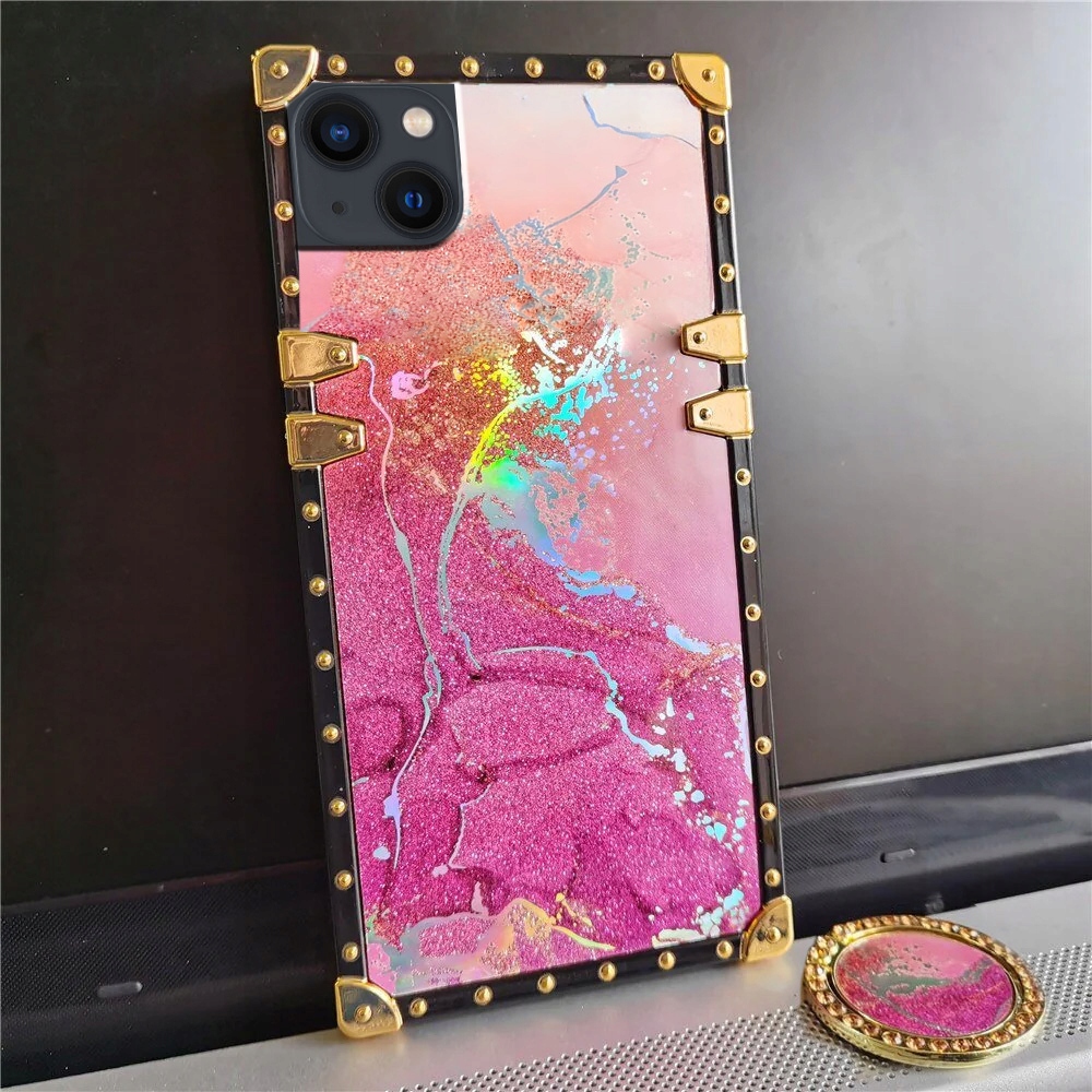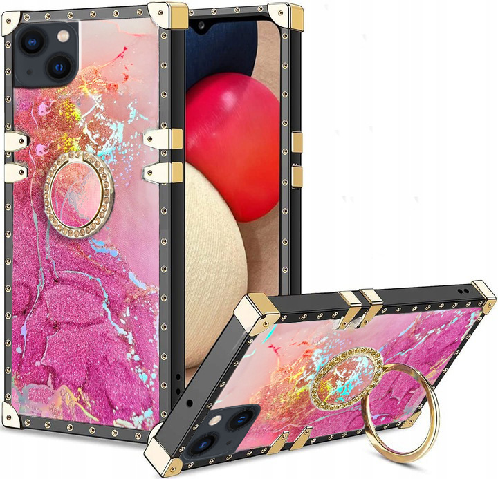 ETUI LUKSUSOWE DO IPHONE 14 GLAMOUR MARMUR BROKAT RING CASE + SZKŁO