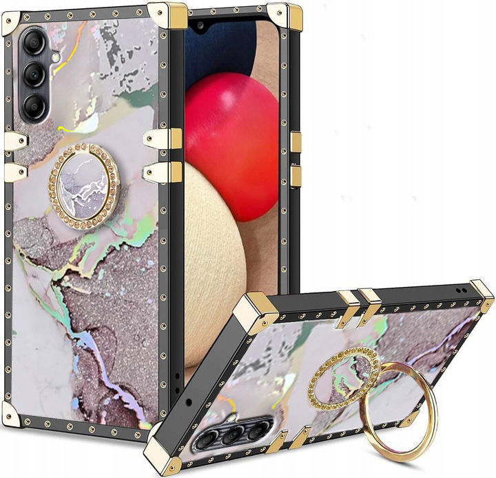 ETUI LUKSUSOWE DO SAMSUNG A14 / A14 5G GLAMOUR MARMUR BROKAT RING + SZKŁO