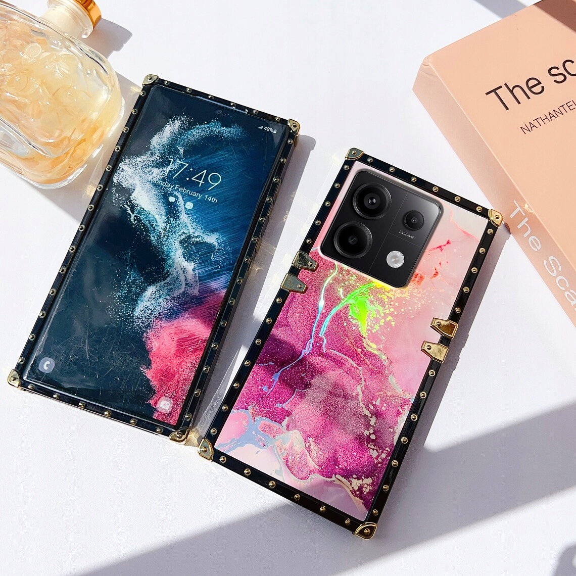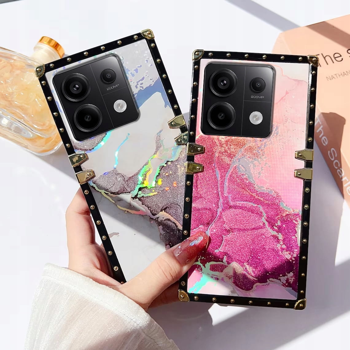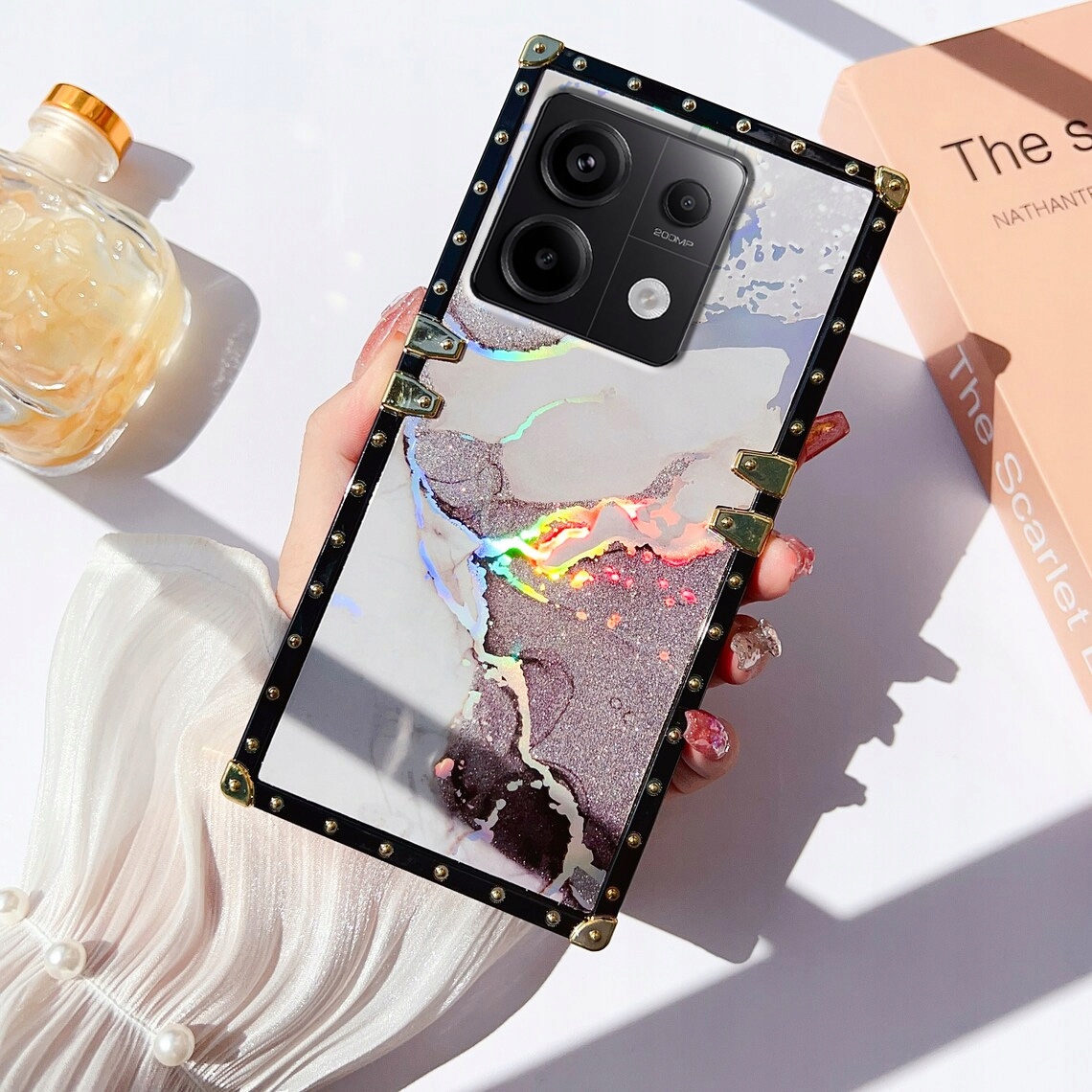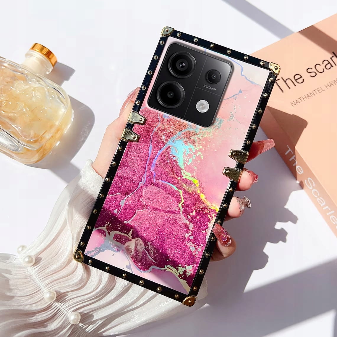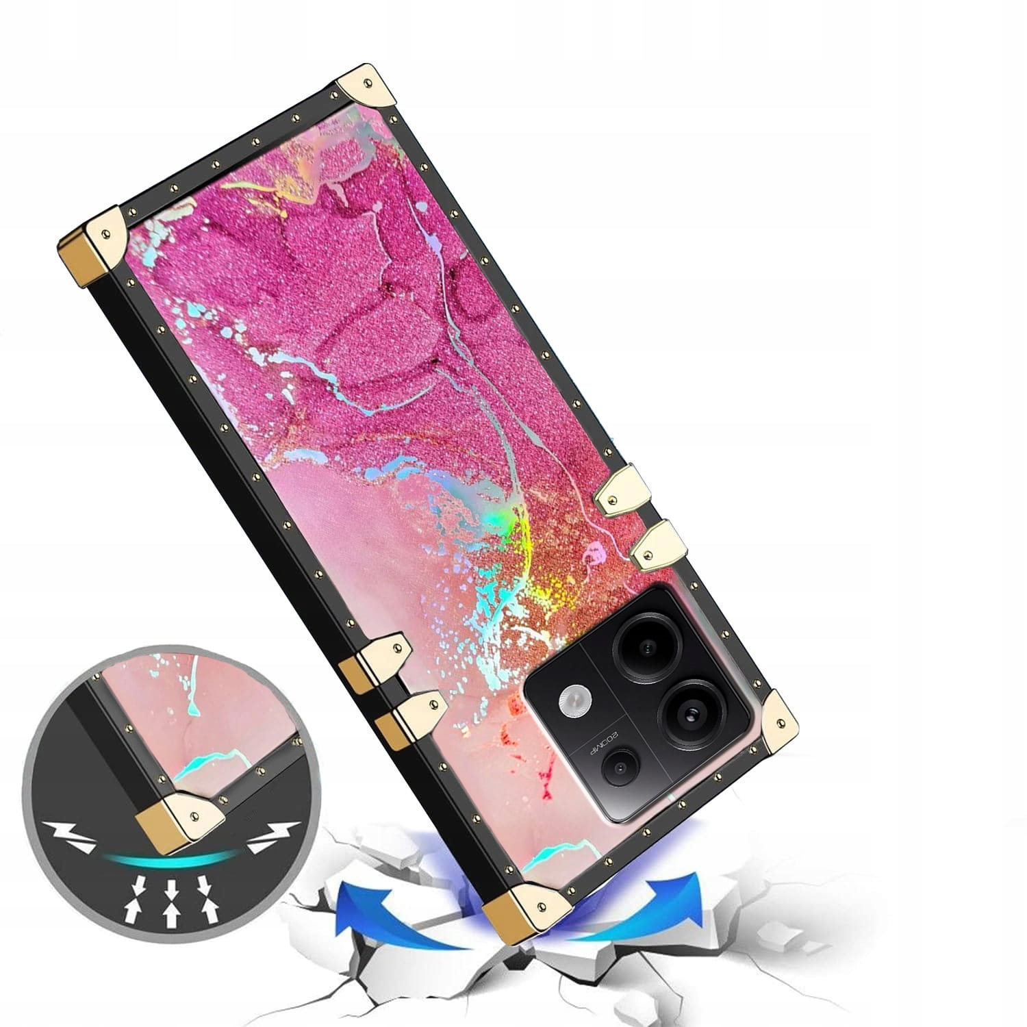 Kwadratowe krawędzie z metalowymi narożnikami sprawiają, że Twój telefon jest wyjątkowy, lśniący i przyciągający wzrok.
