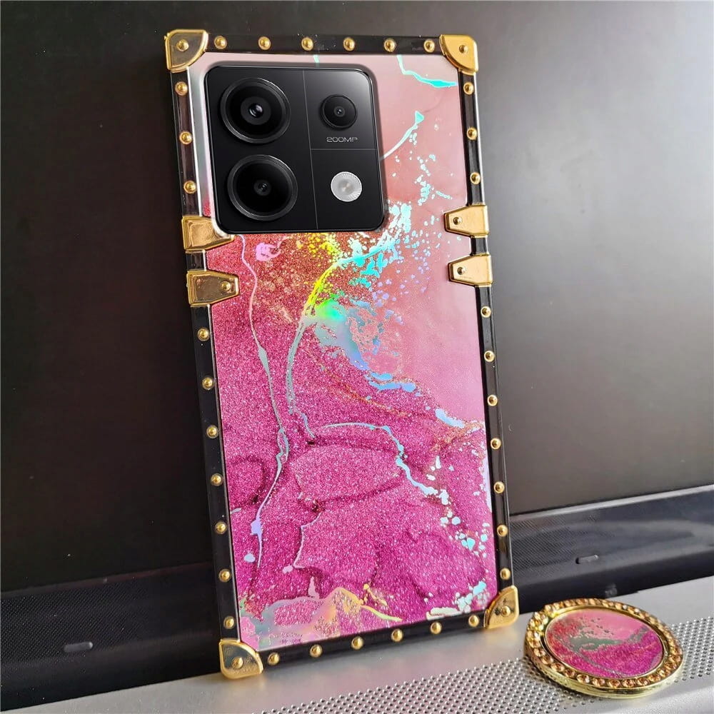 - Błyszcząca marmurowa obudowa z modnymi złotymi liniami i pięknym marmurowym wzorem