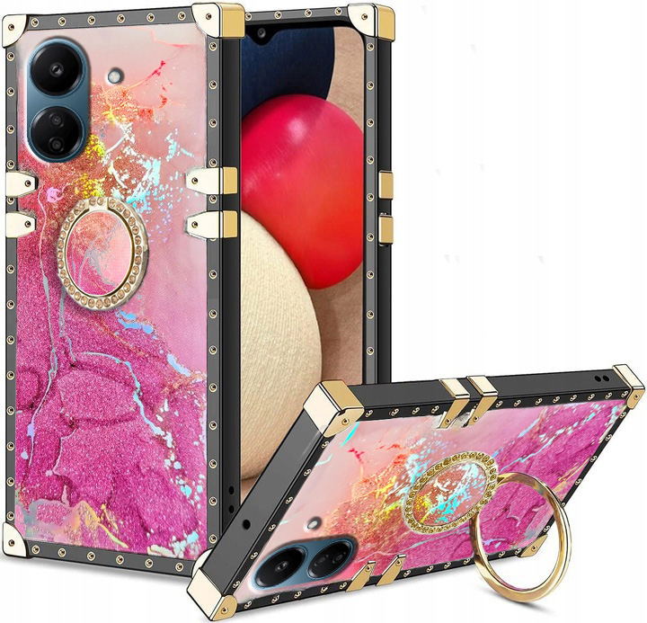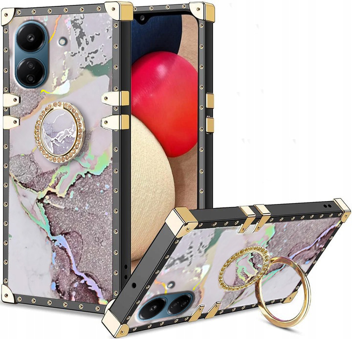 ETUI LUKSUSOWE DO XIAOMI REDMI 13C / POCO C65 GLAMOUR MARMUR RING + SZKŁO