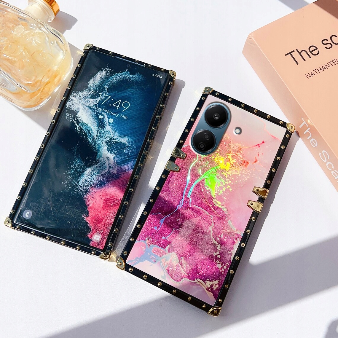 - Błyszcząca marmurowa obudowa z modnymi złotymi liniami i pięknym marmurowym wzorem