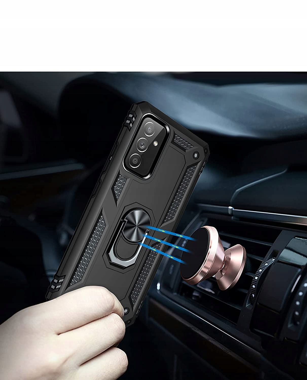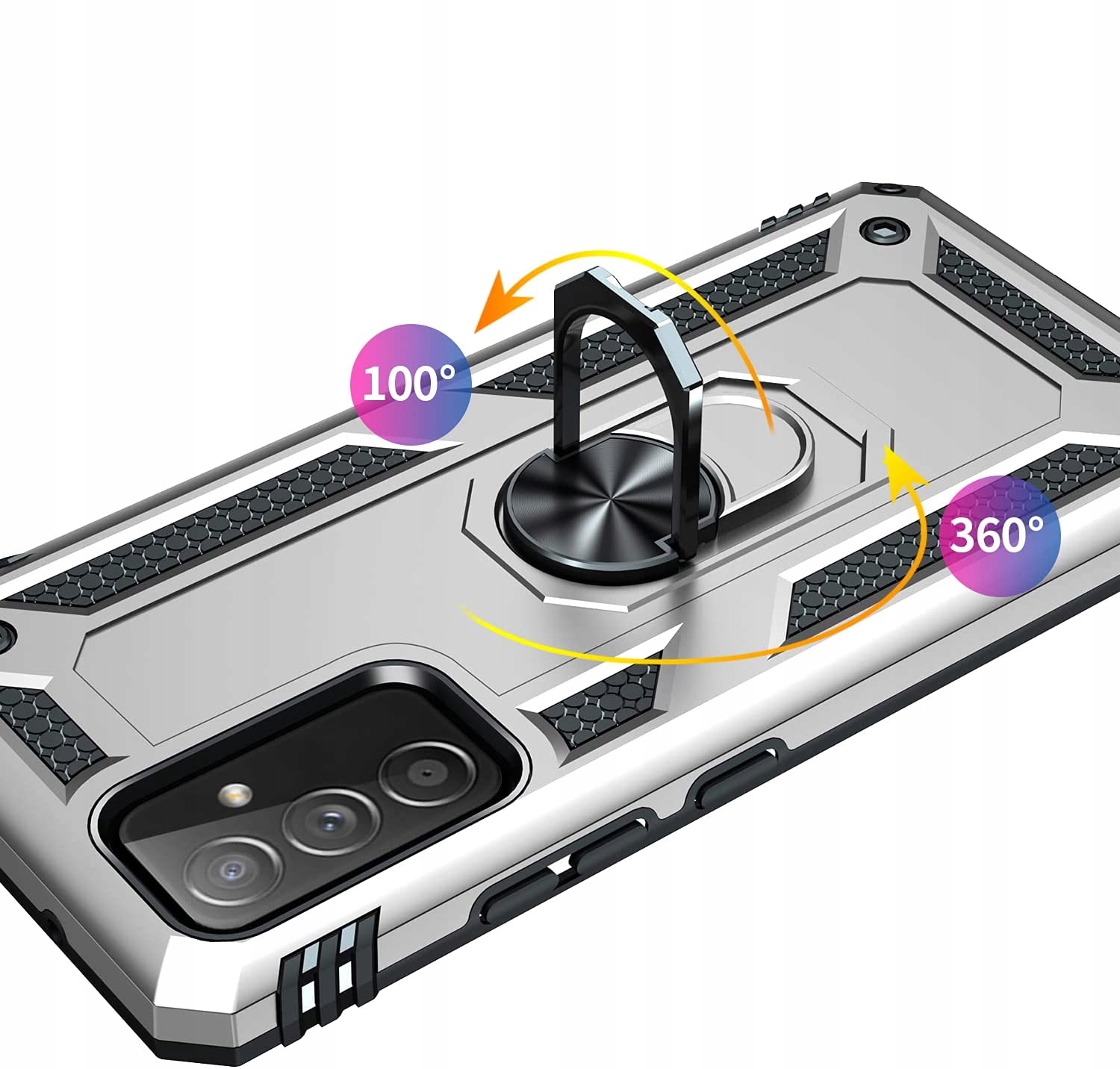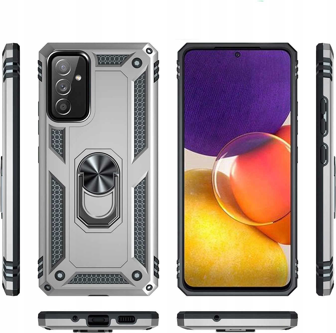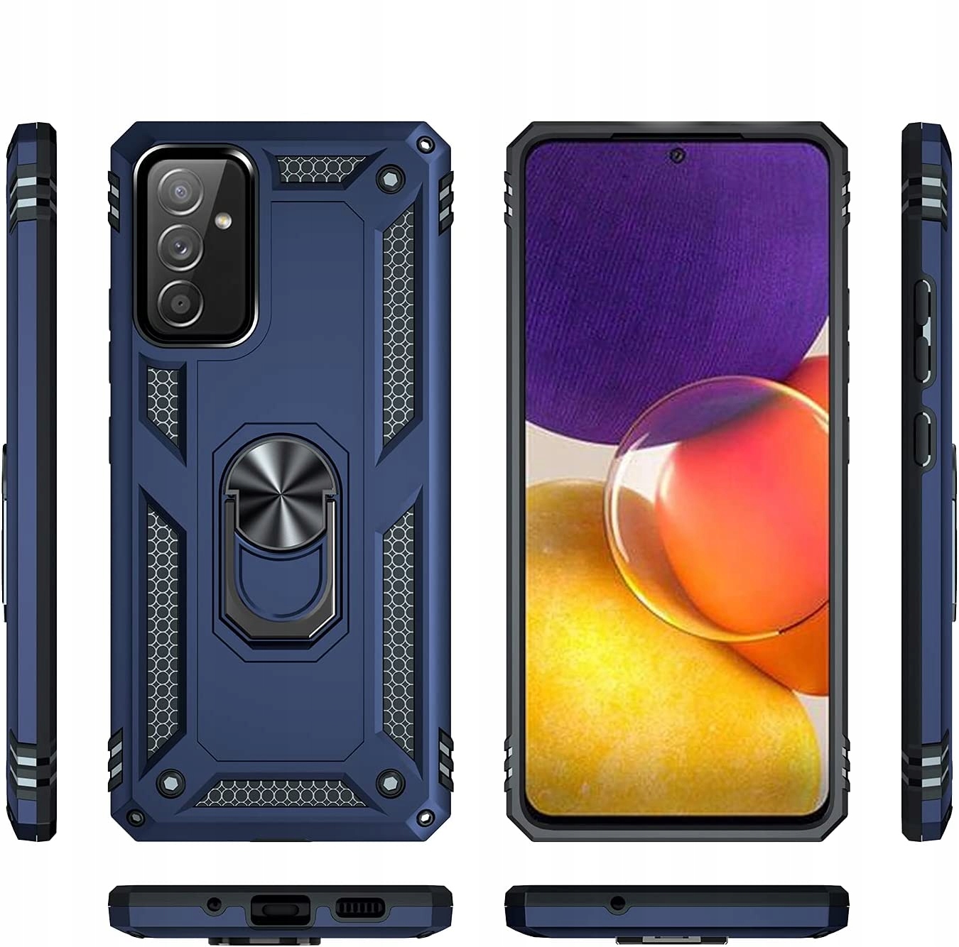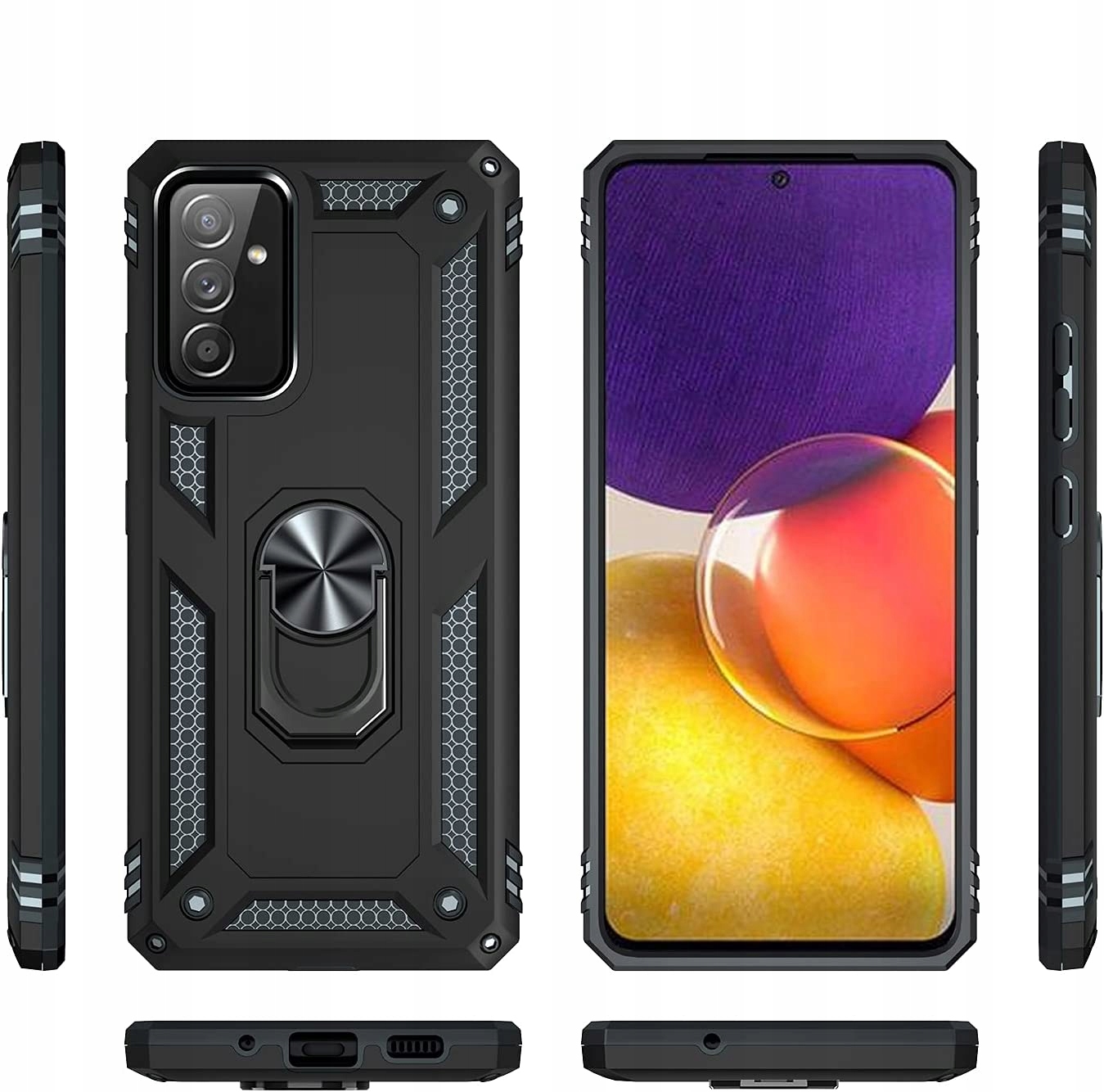 Pancerne etui o innowacyjnym designie. Posiada pierścień do trzymania telefonu oraz blaszkę, dzięki czemu etui jest idealne do używania z magnetycznym uchwytem samochodowym