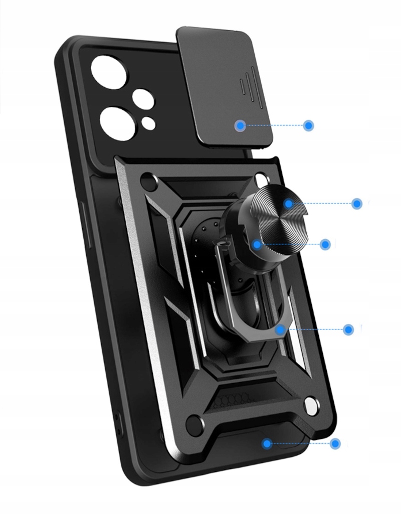Pancerne etui o innowacyjnym designie. Posiada pierścień do trzymania telefonu oraz blaszkę, dzięki czemu etui jest idealne do używania z magnetycznym uchwytem samochodowym.